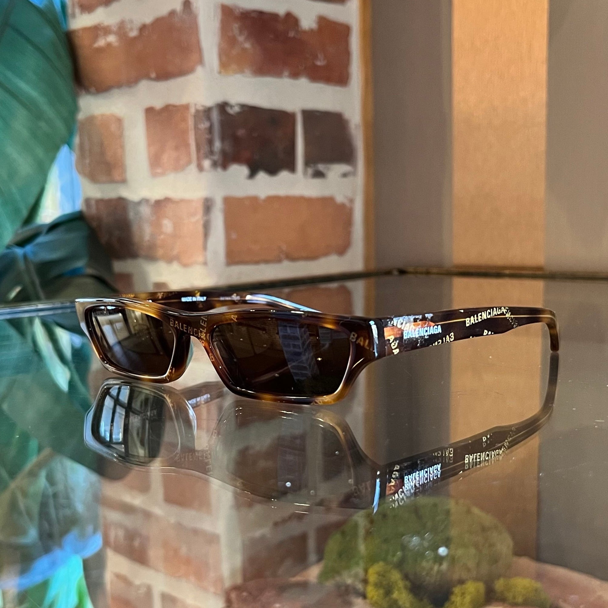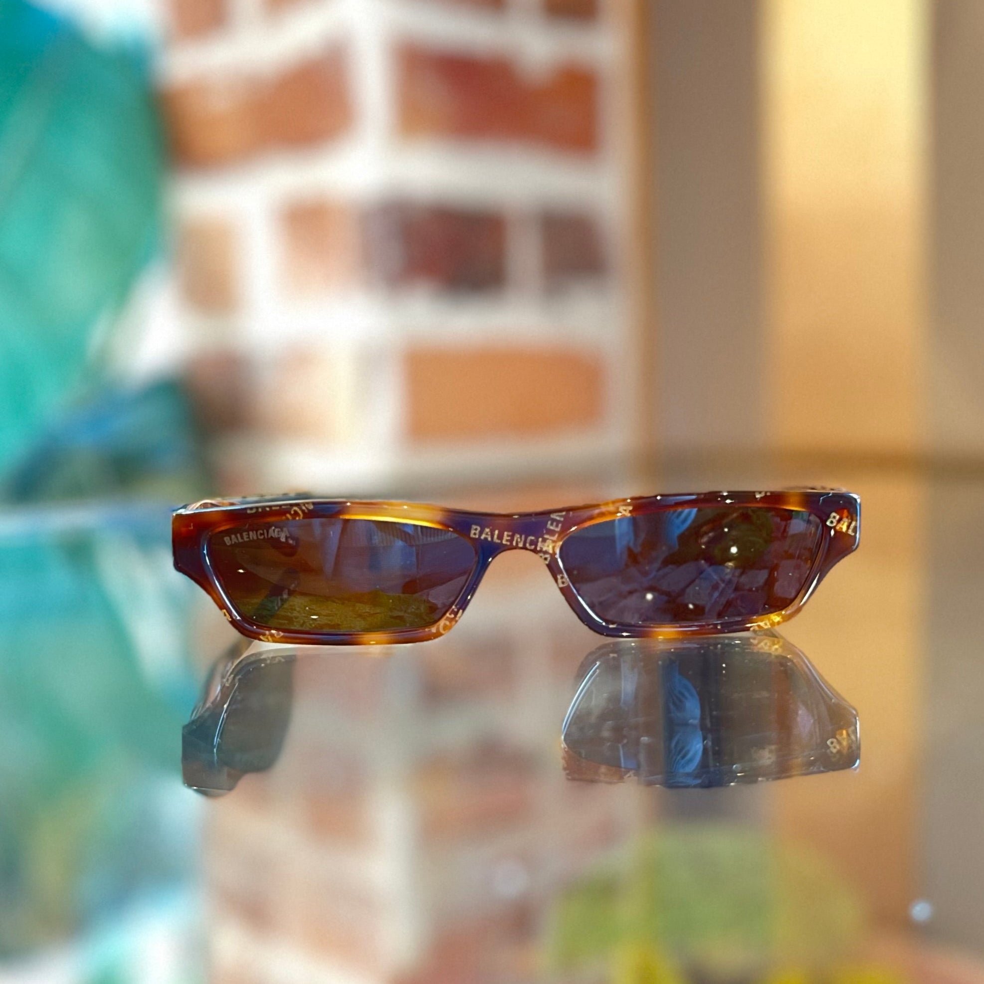 BALENCIAGA BB0075S Tortoise Brown Acetate Rectangle Sunglasses