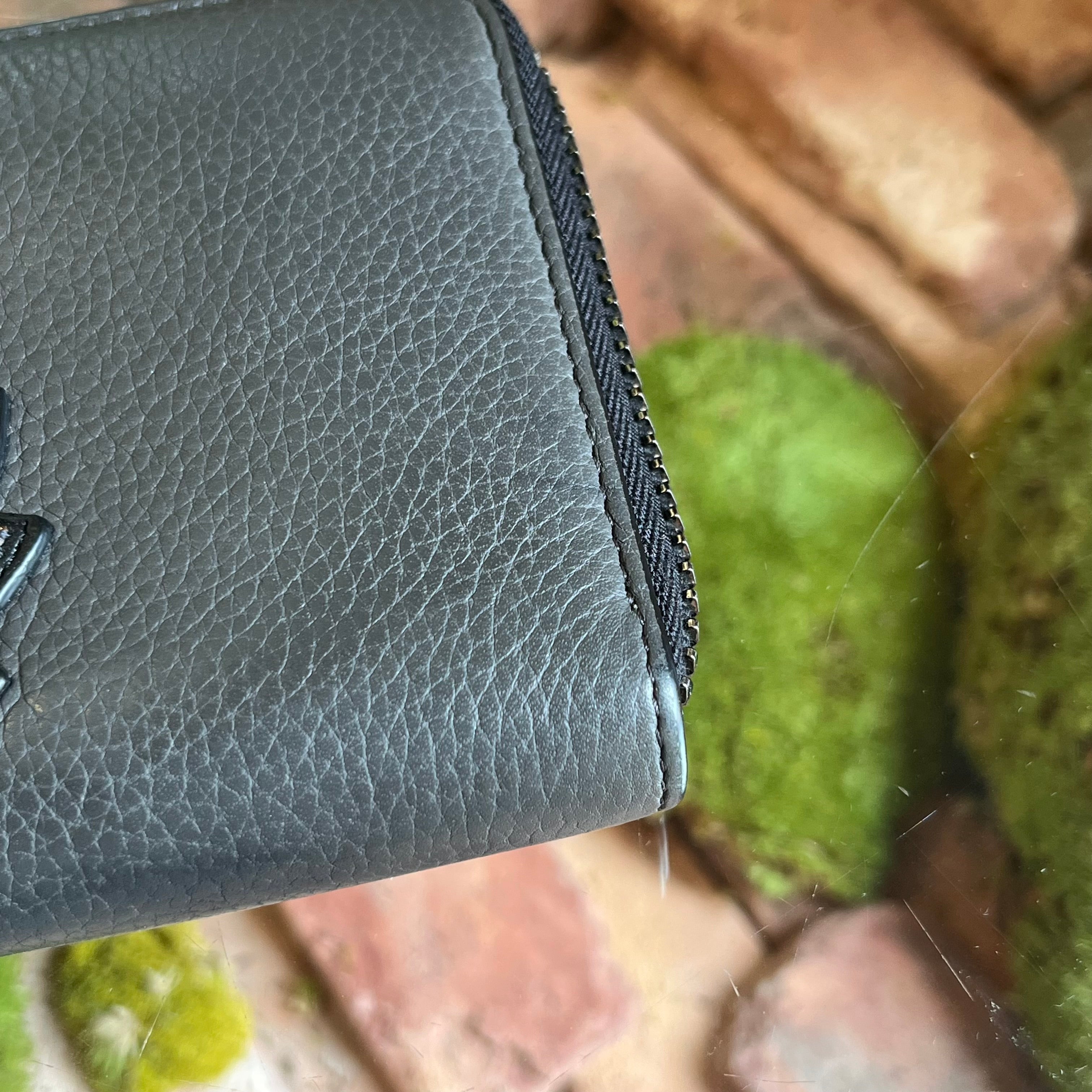 CHRISTIAN LOUBOUTIN Zip Around Gray Leather Studded Long Wallet