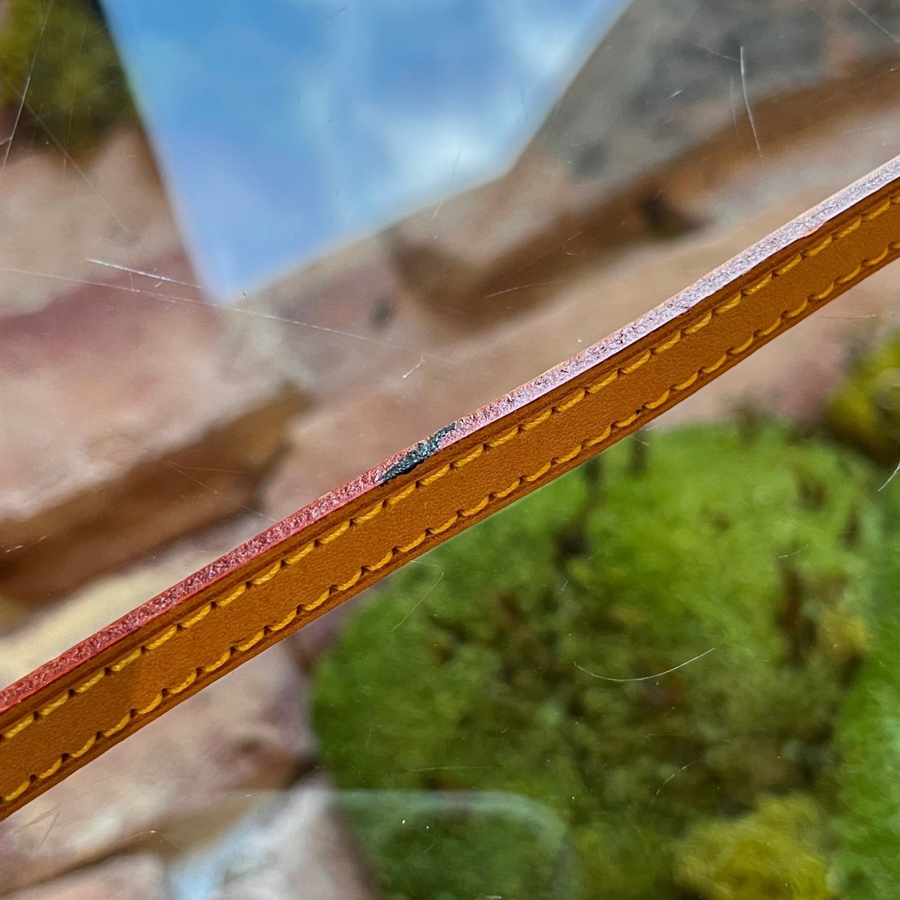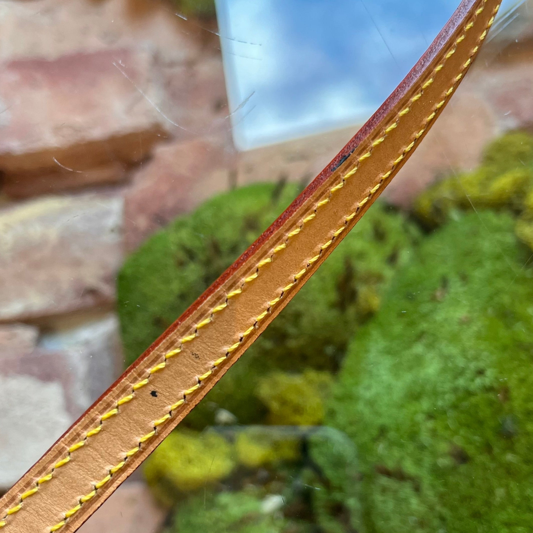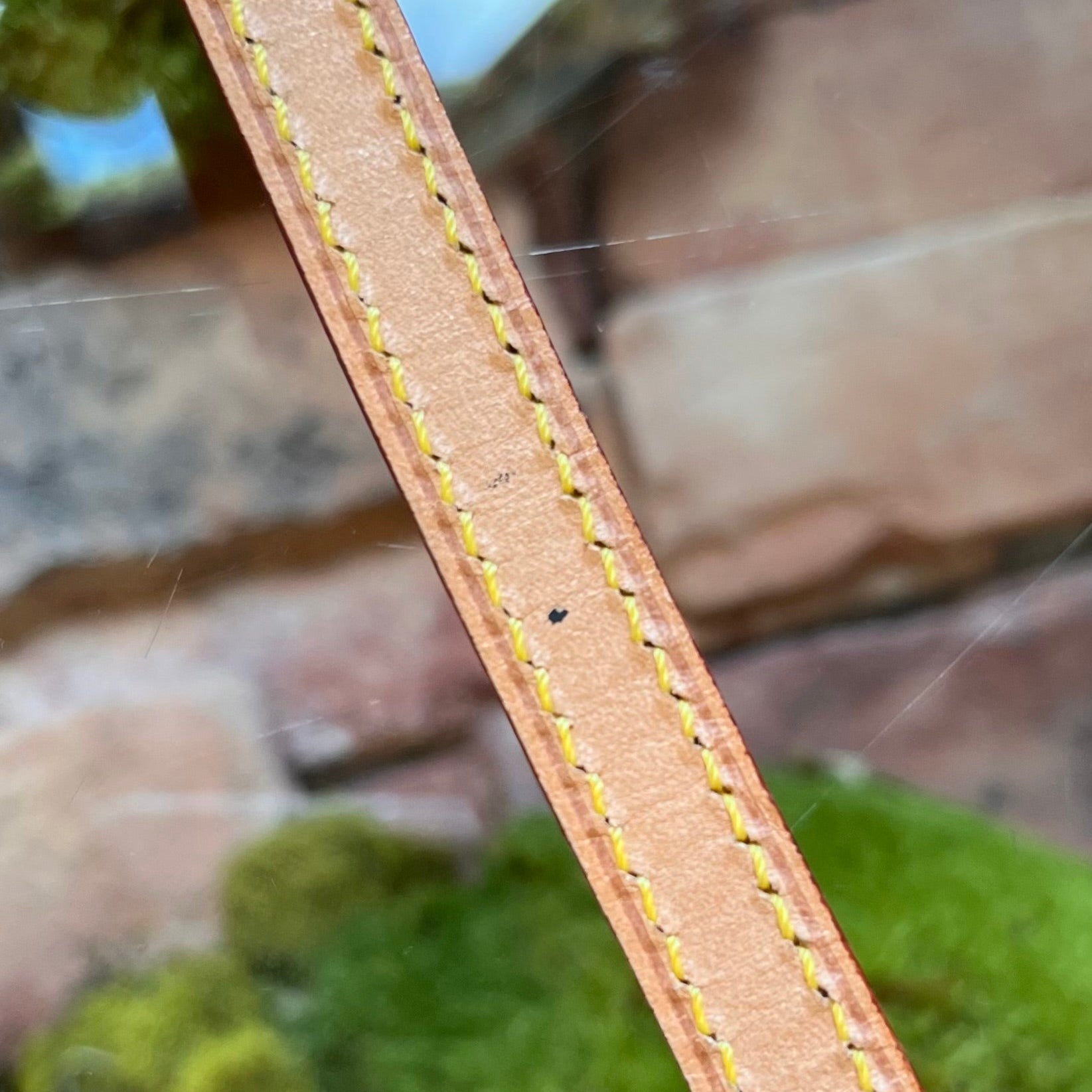 - Exterior: Light patina on vachetta leather. Black marks on strap. Color is still clear and vibrant. Overall very good condition.
