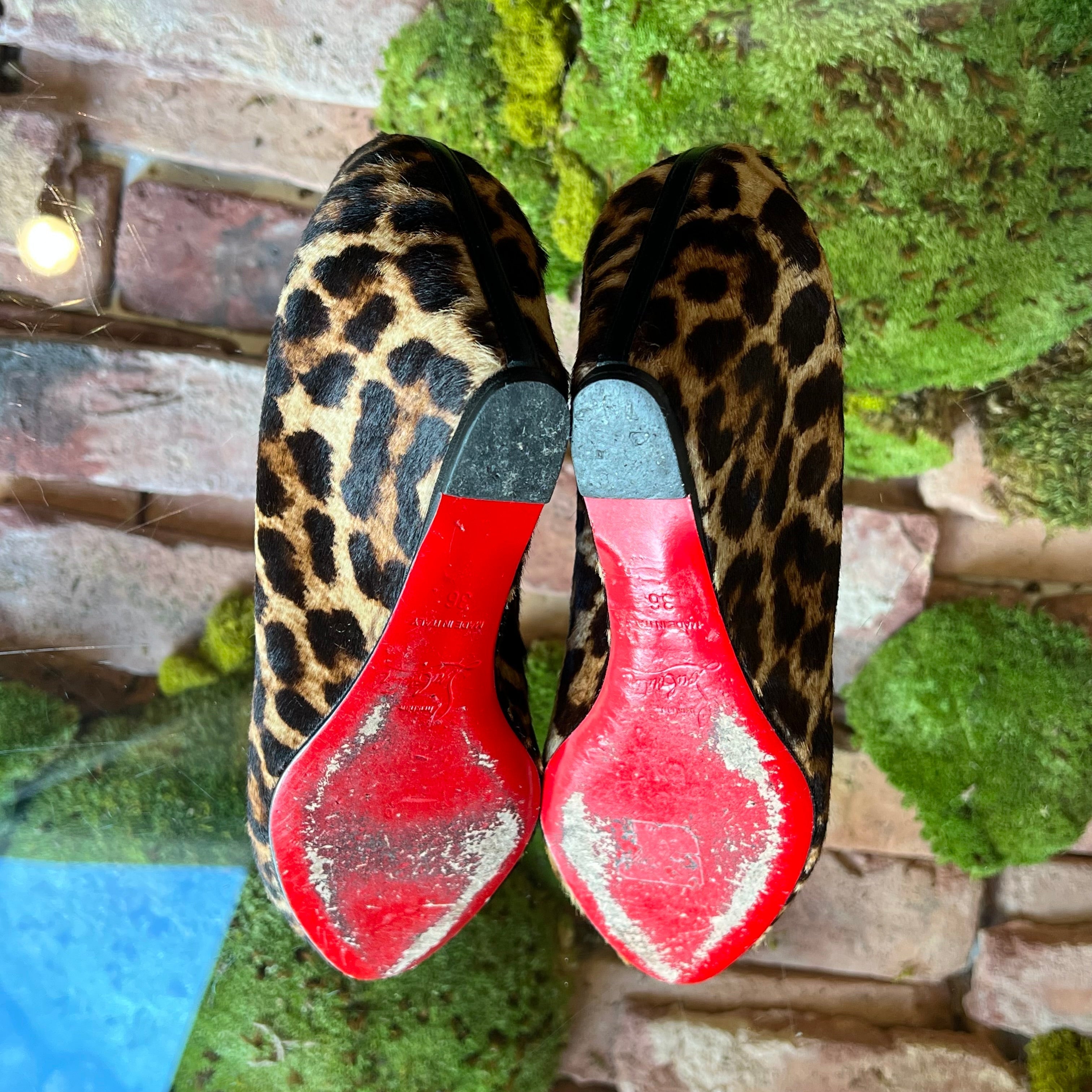 CHRISTIAN LOUBOUTIN Melissa Pony Hair Leopard Print Wedges SZ36.5(6.5US)