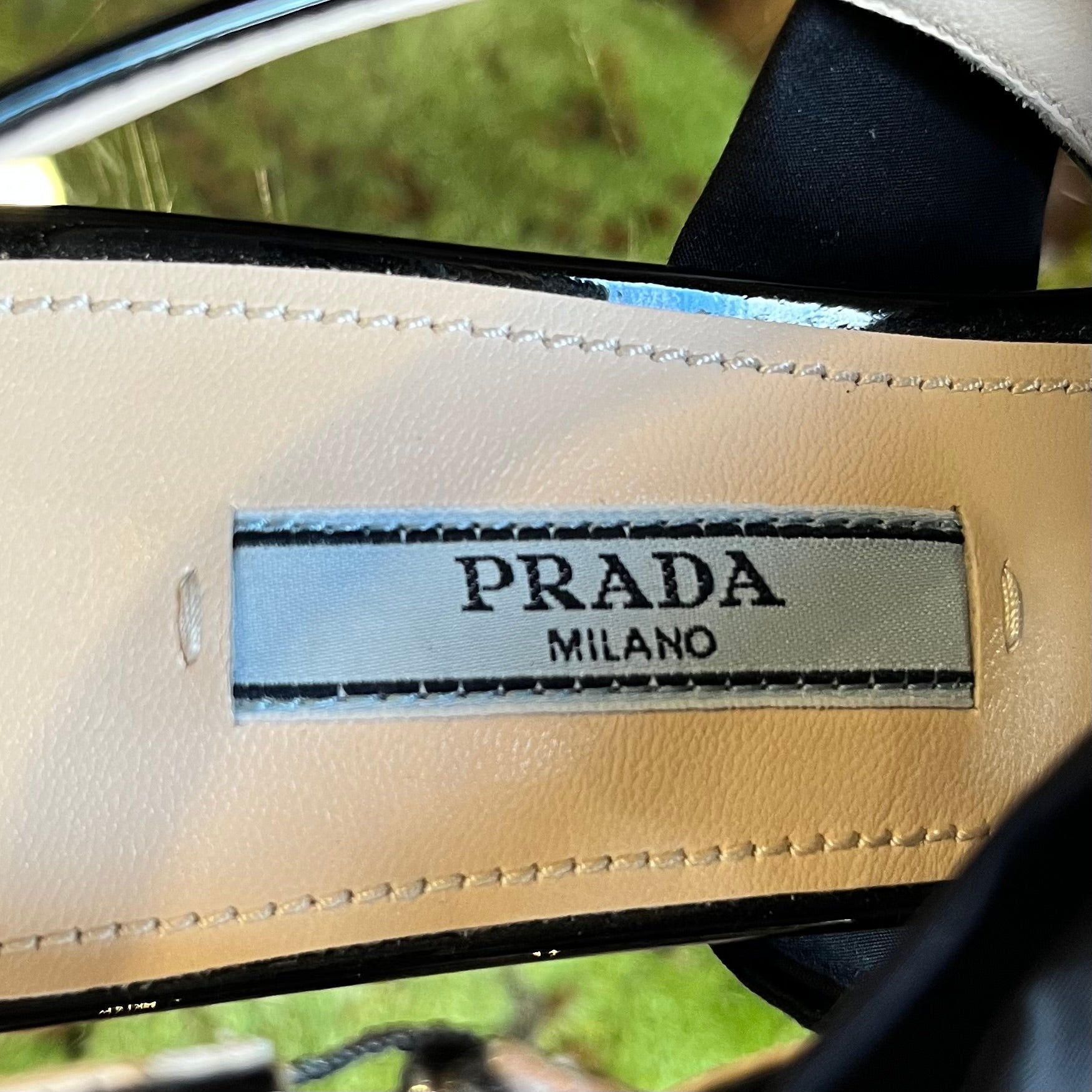 PRADA Black Patent Leather Pointed Toe Sling Backs w/bow SZ 36.5 (6.5 US)