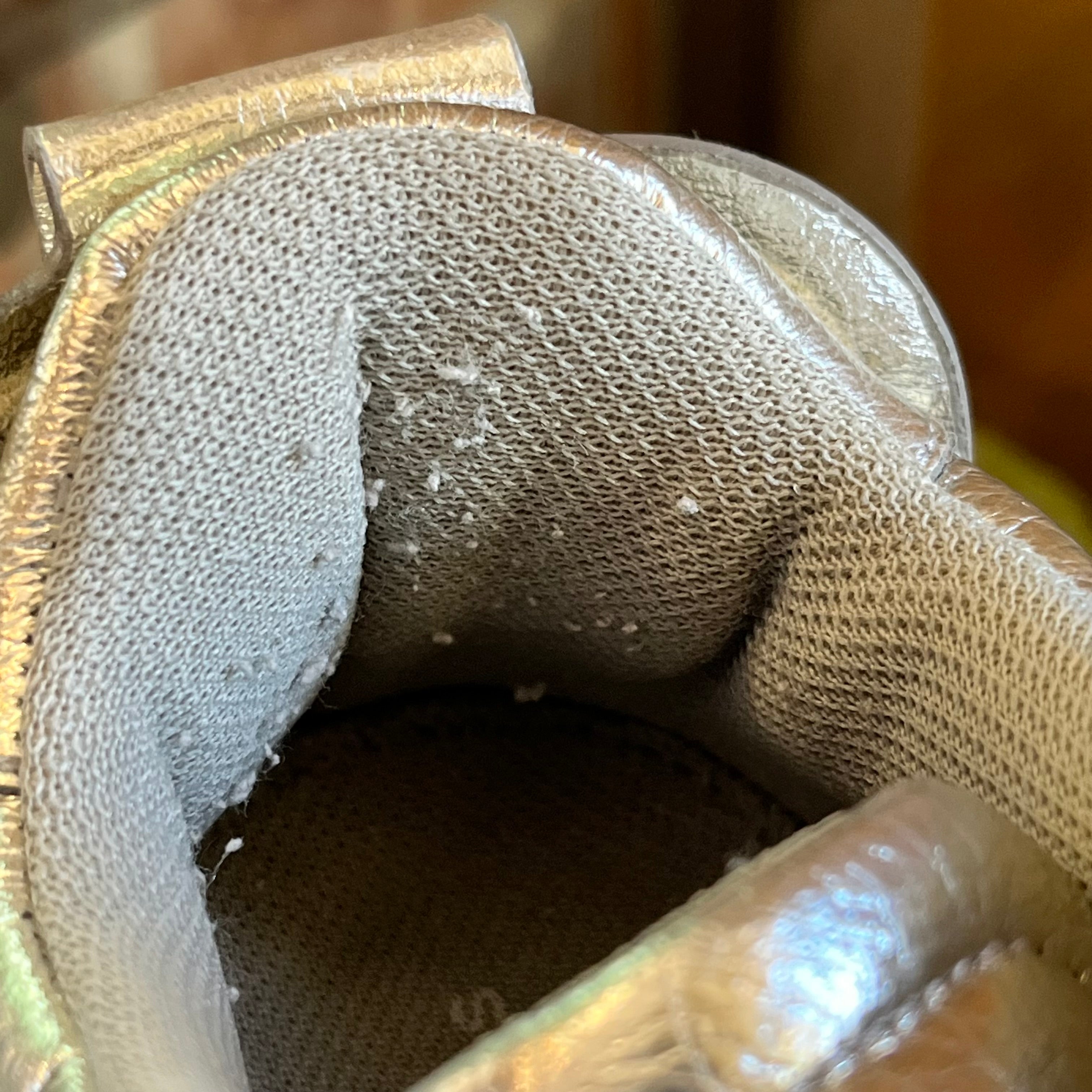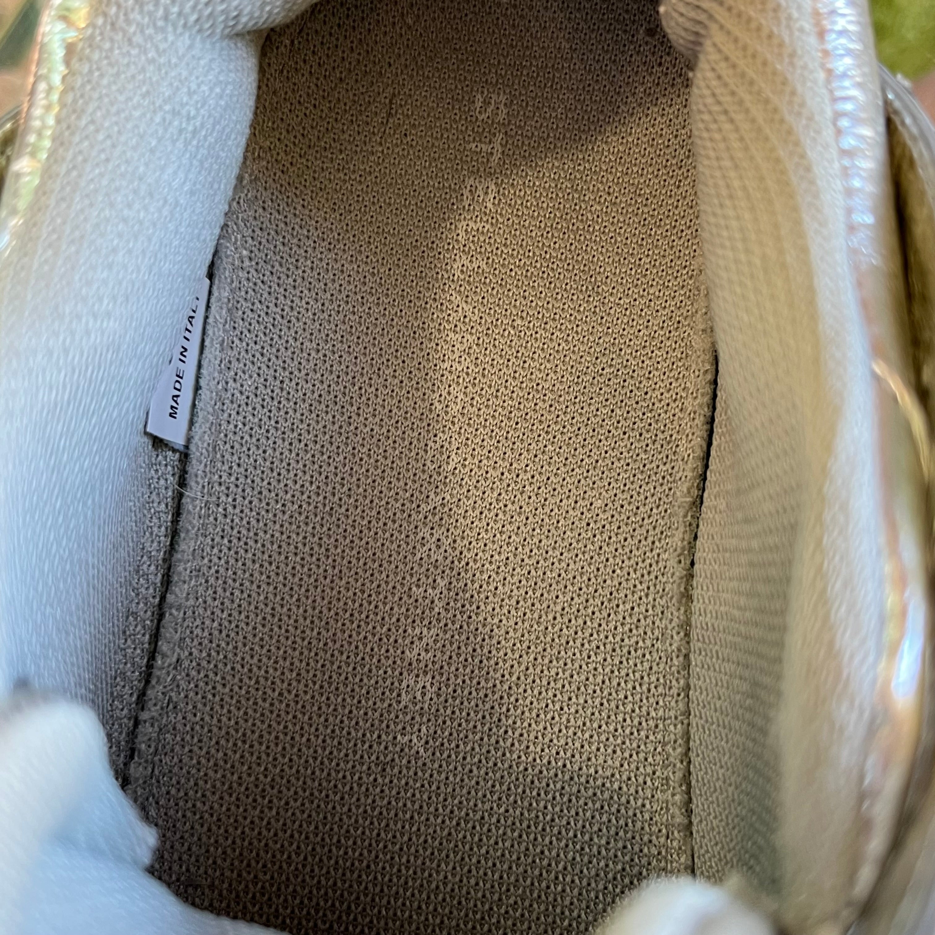 • Exterior: The soles are worn consistently with previous moderate use. Gentle creasing although the uppers remain vibrant and beautiful. Scuffing and gentle soiling to the midsoles. Overall they're in very good condition.