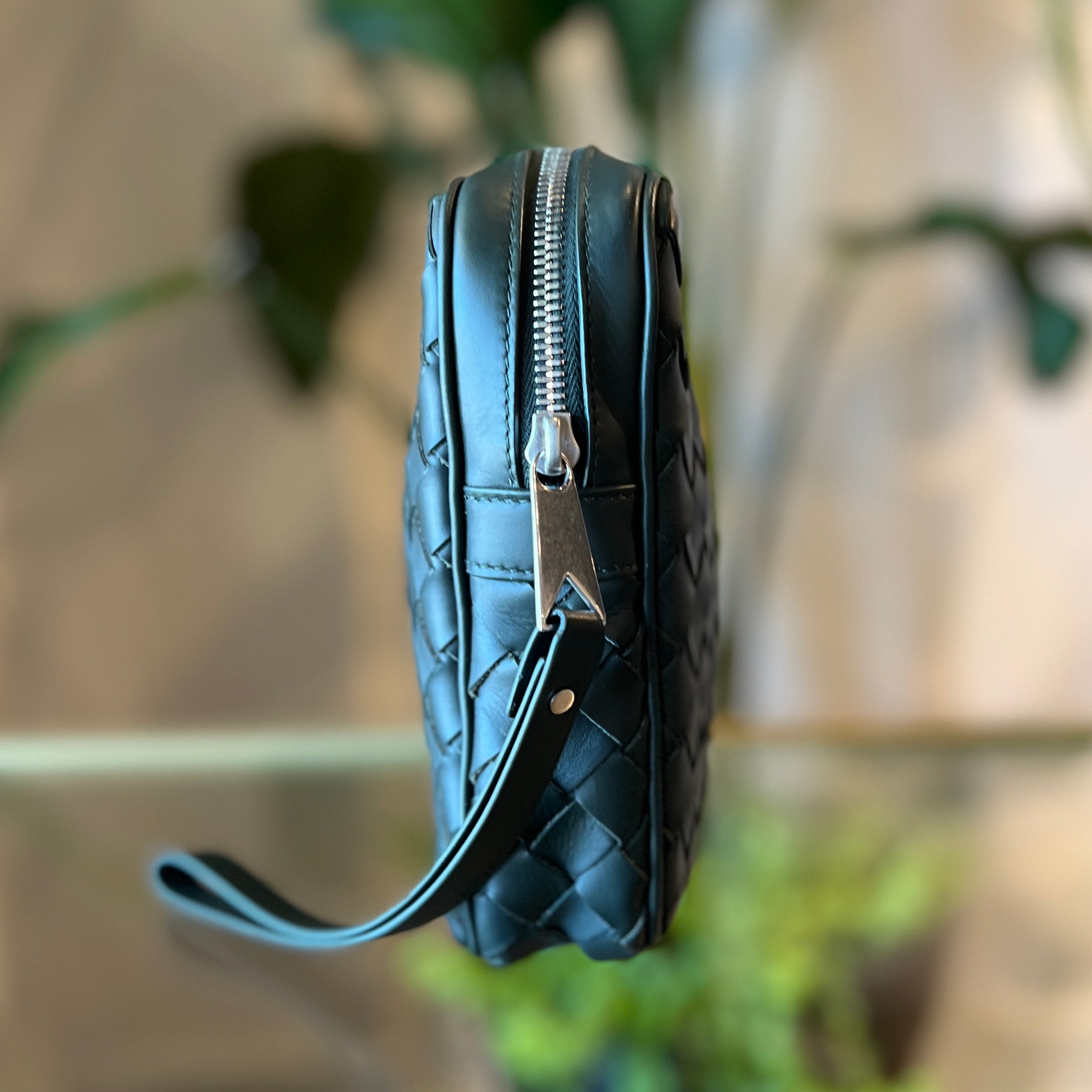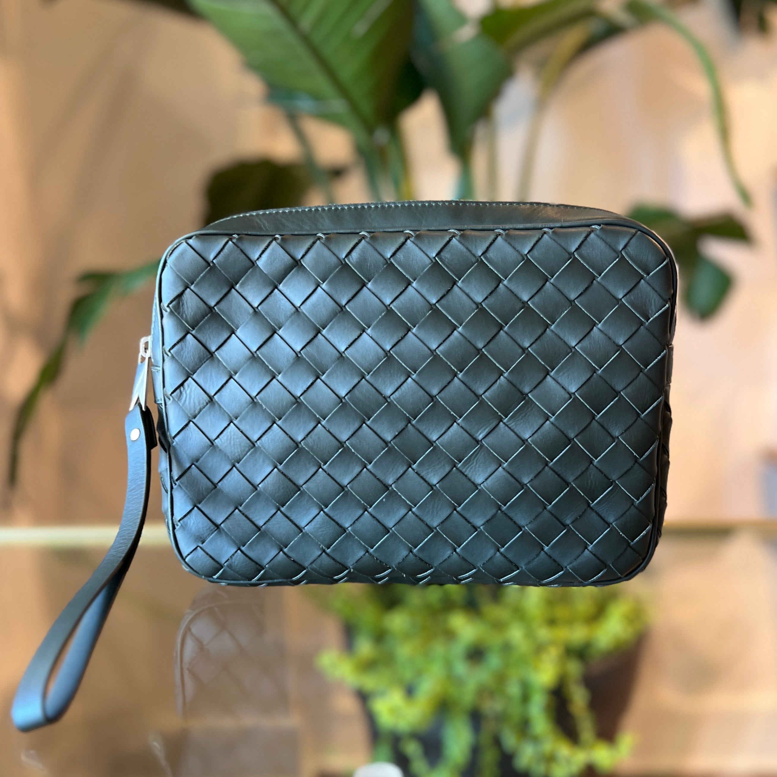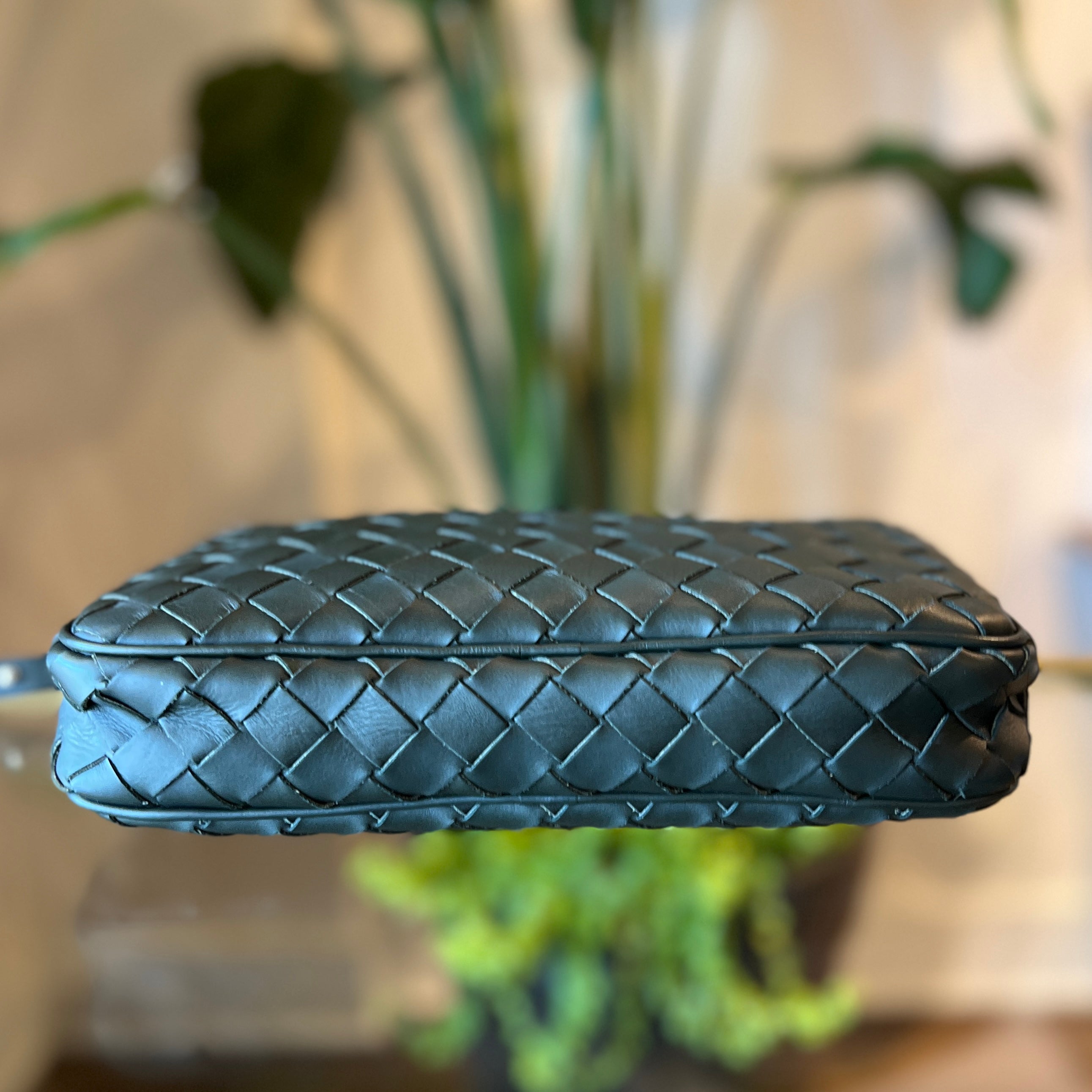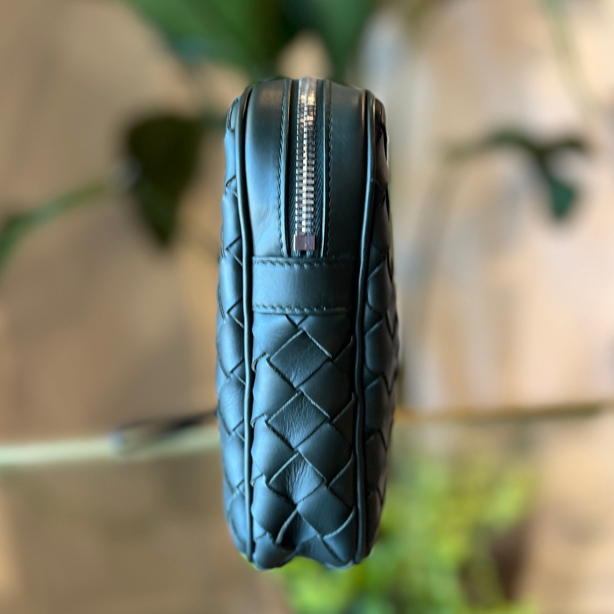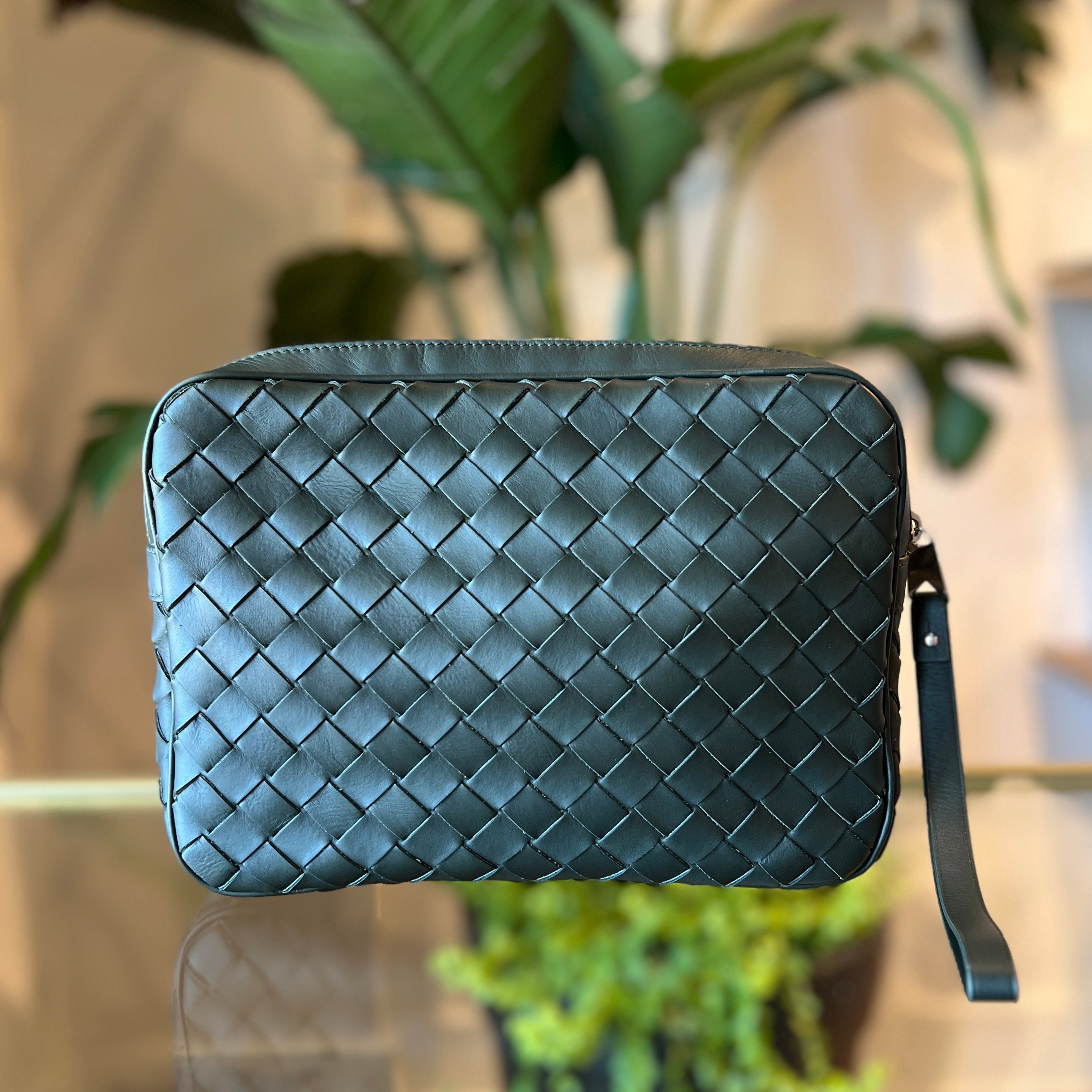 - Design: A rectangular, minimalist crossbody or camera bag crafted from hand-woven leather.