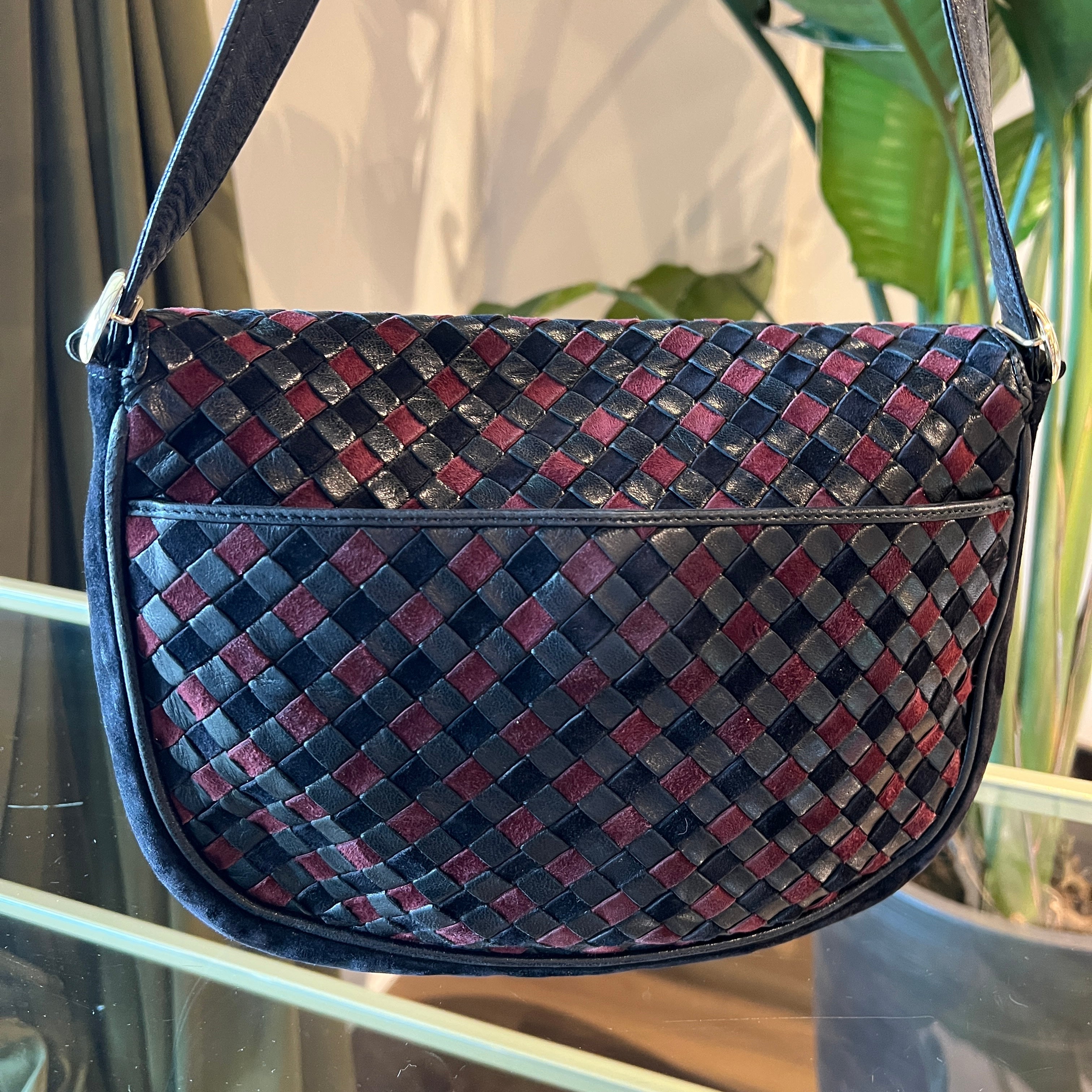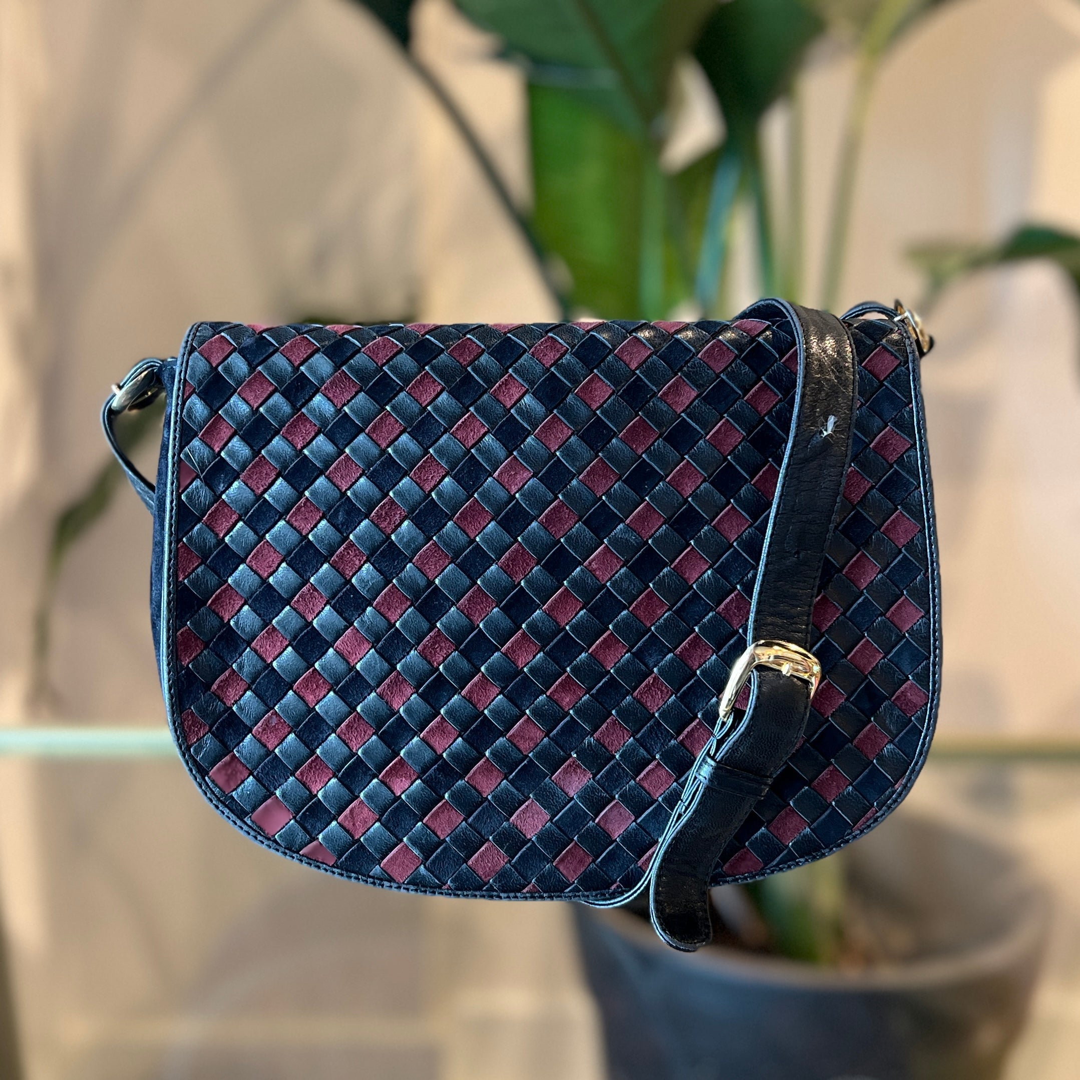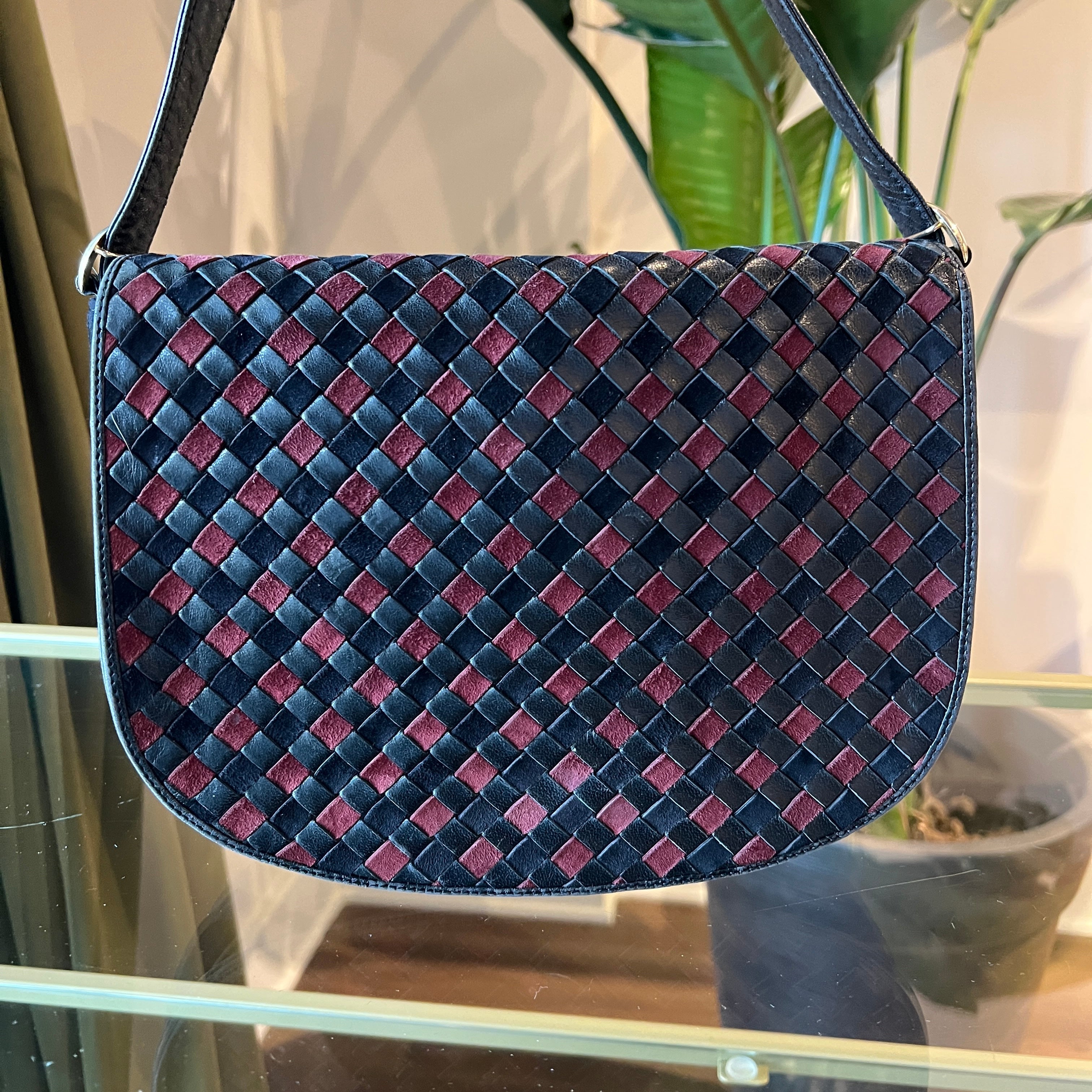 BOTTEGA VENETA Flap Red Black Intrecciato Vintage Shoulder Bag