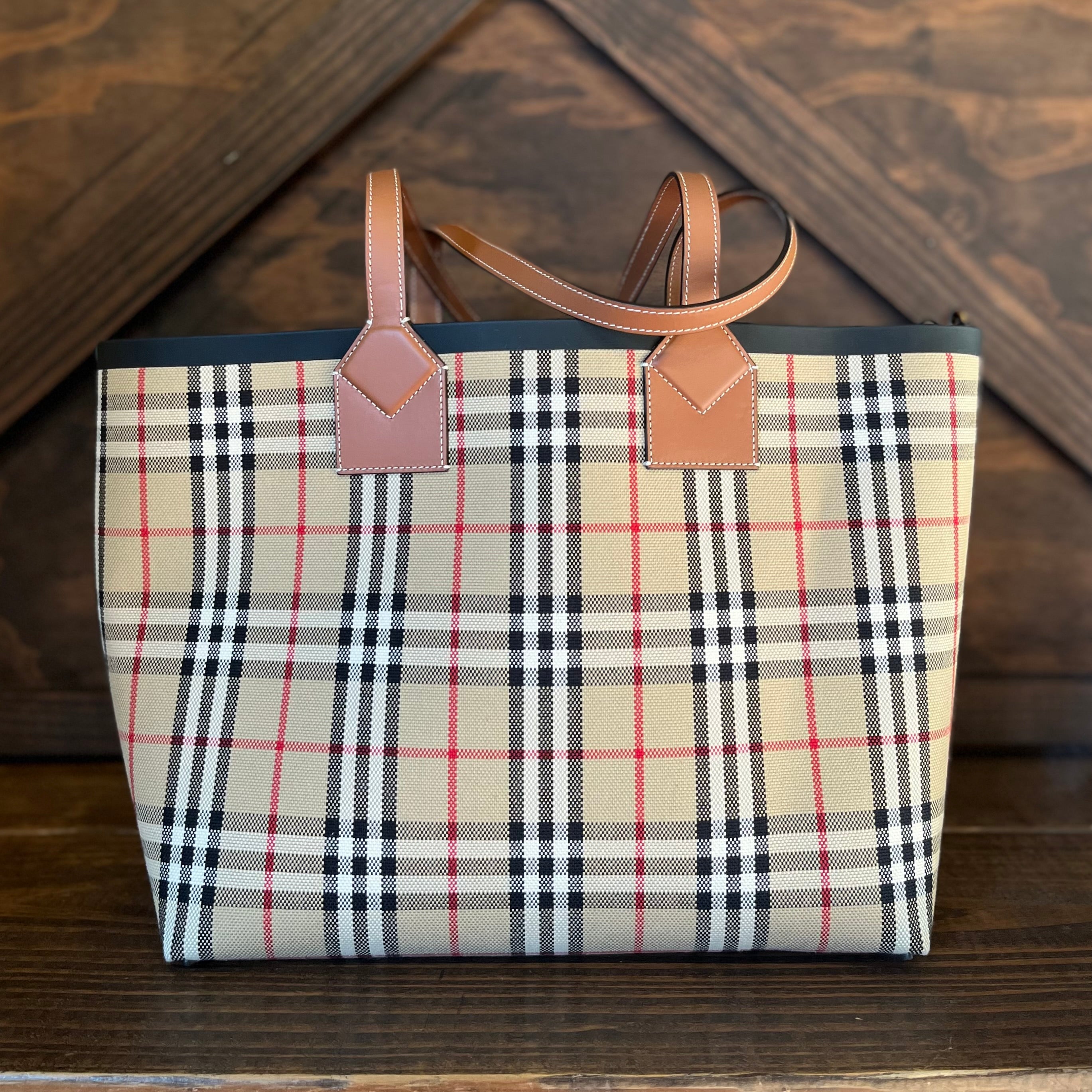 BURBERRY London Medium Briar Cotton Vintage Check Tote Bag