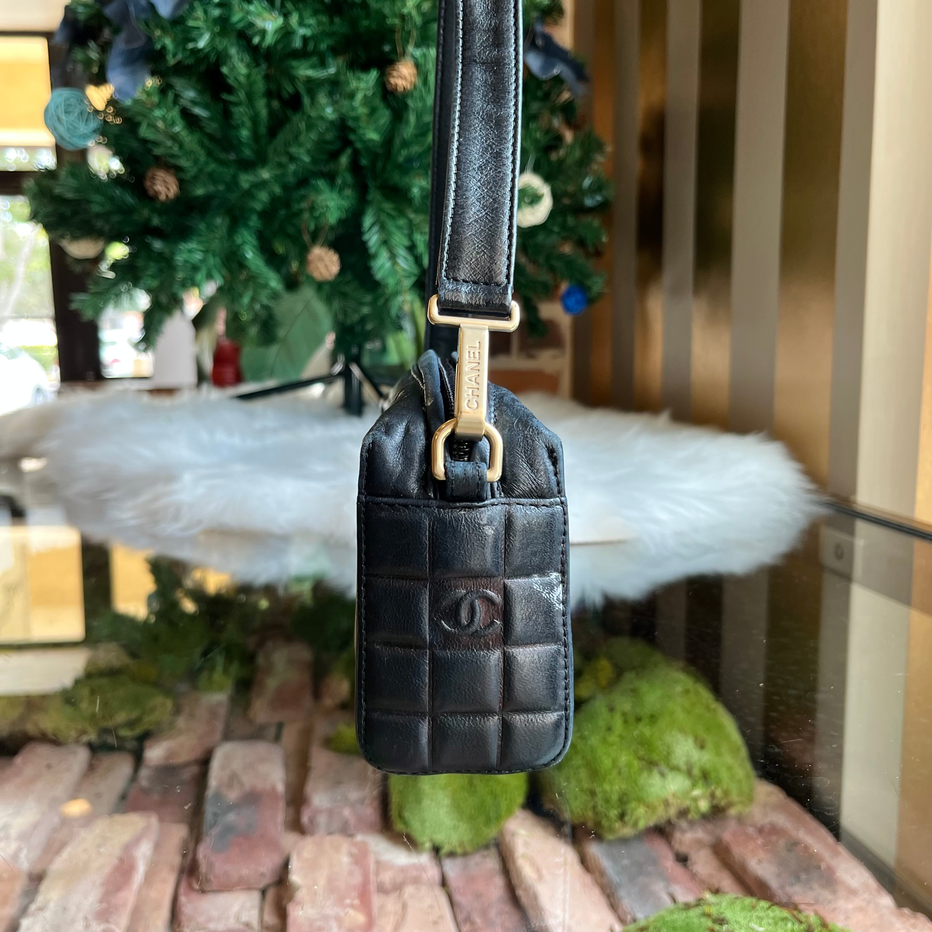 CHANEL Chocolate Bar Pochette Black Lambskin Shoulder Bag