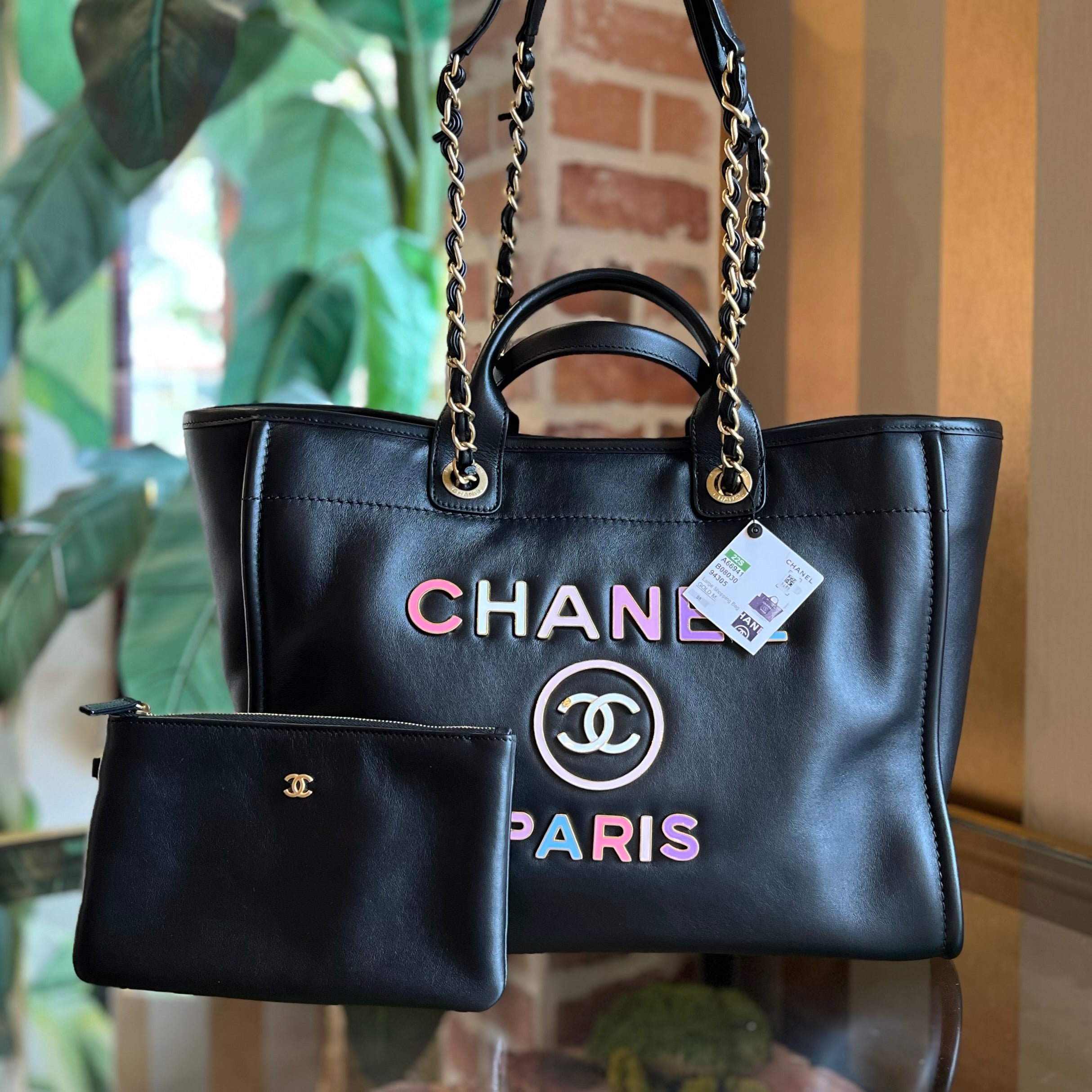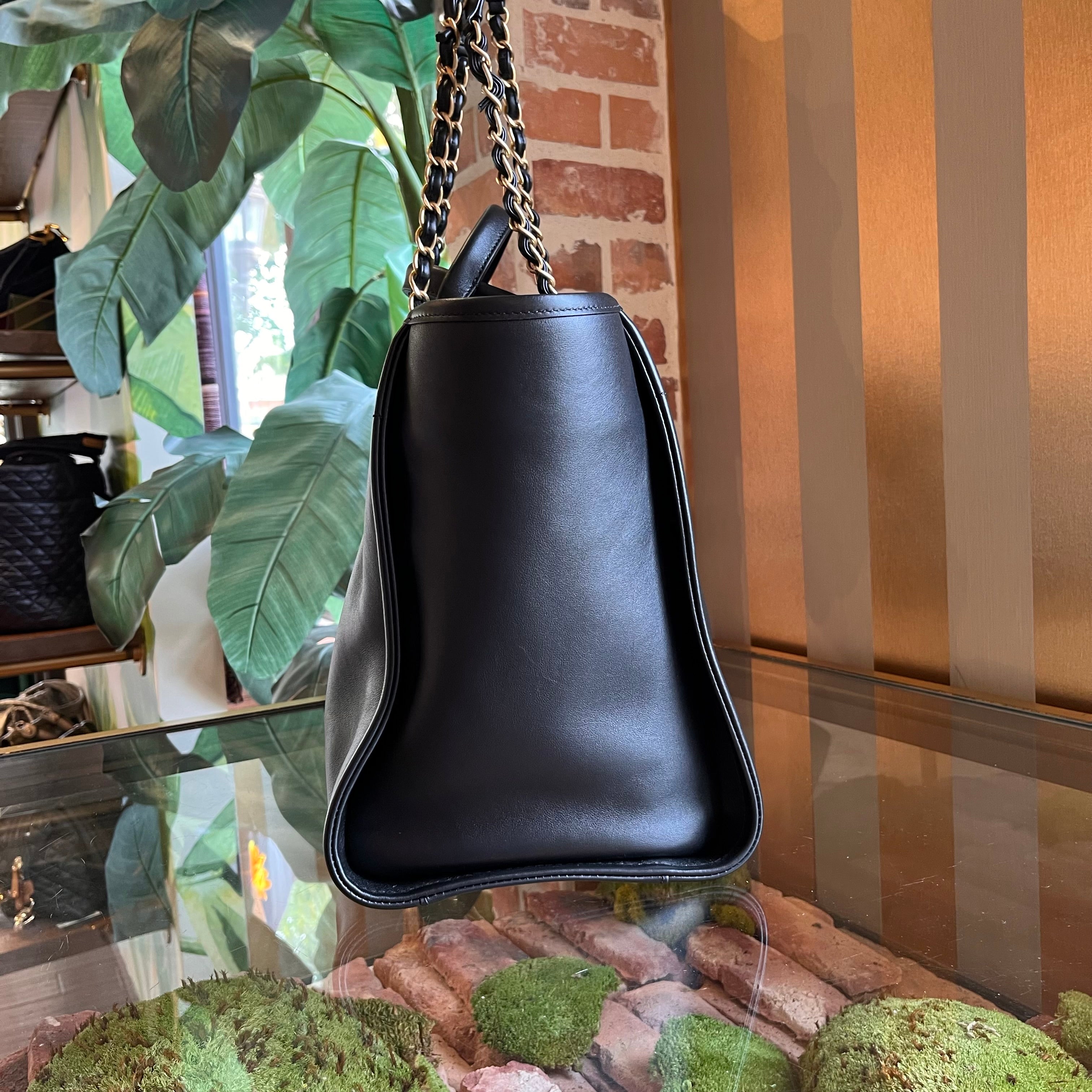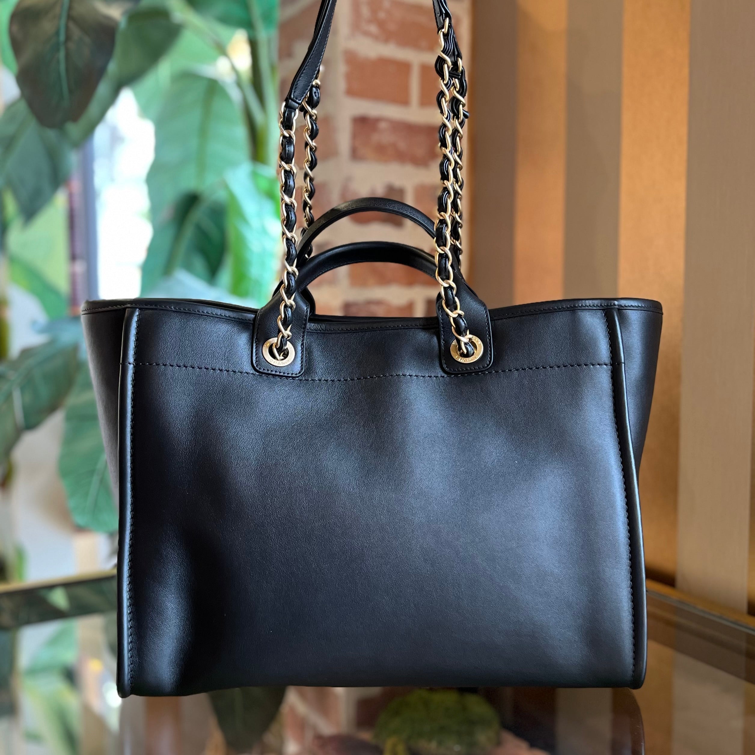 CHANEL Large Deauville Black Calfskin Enamel Tote