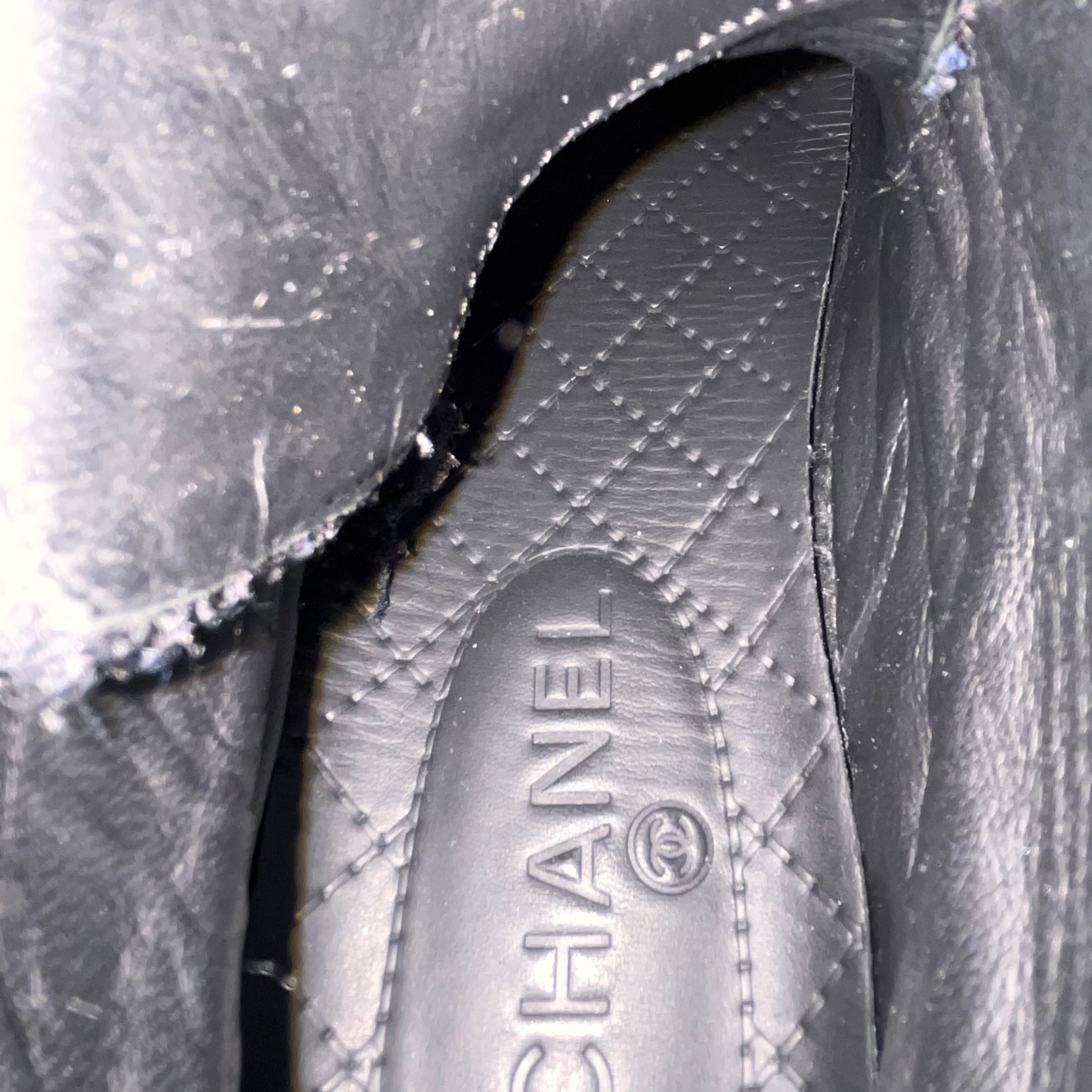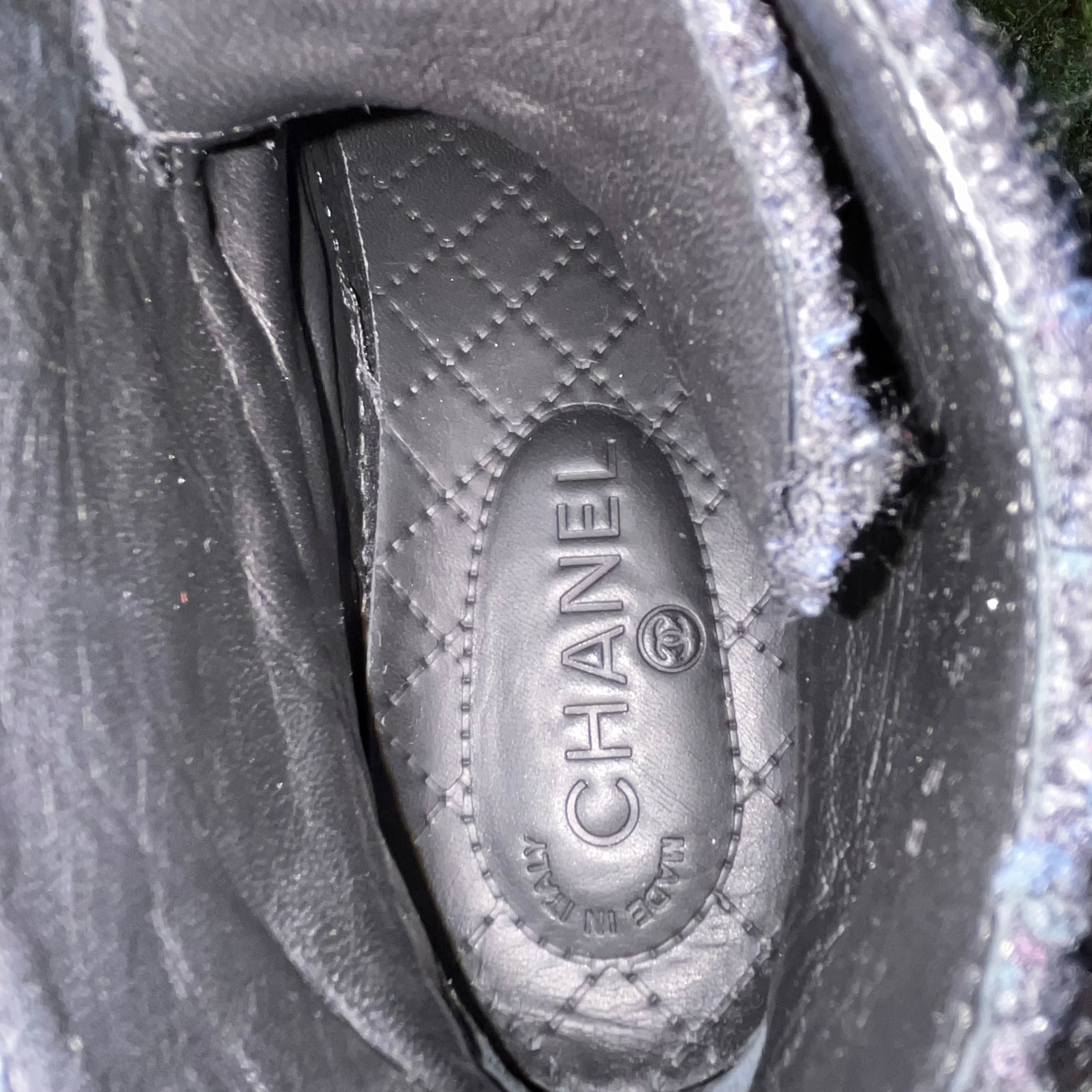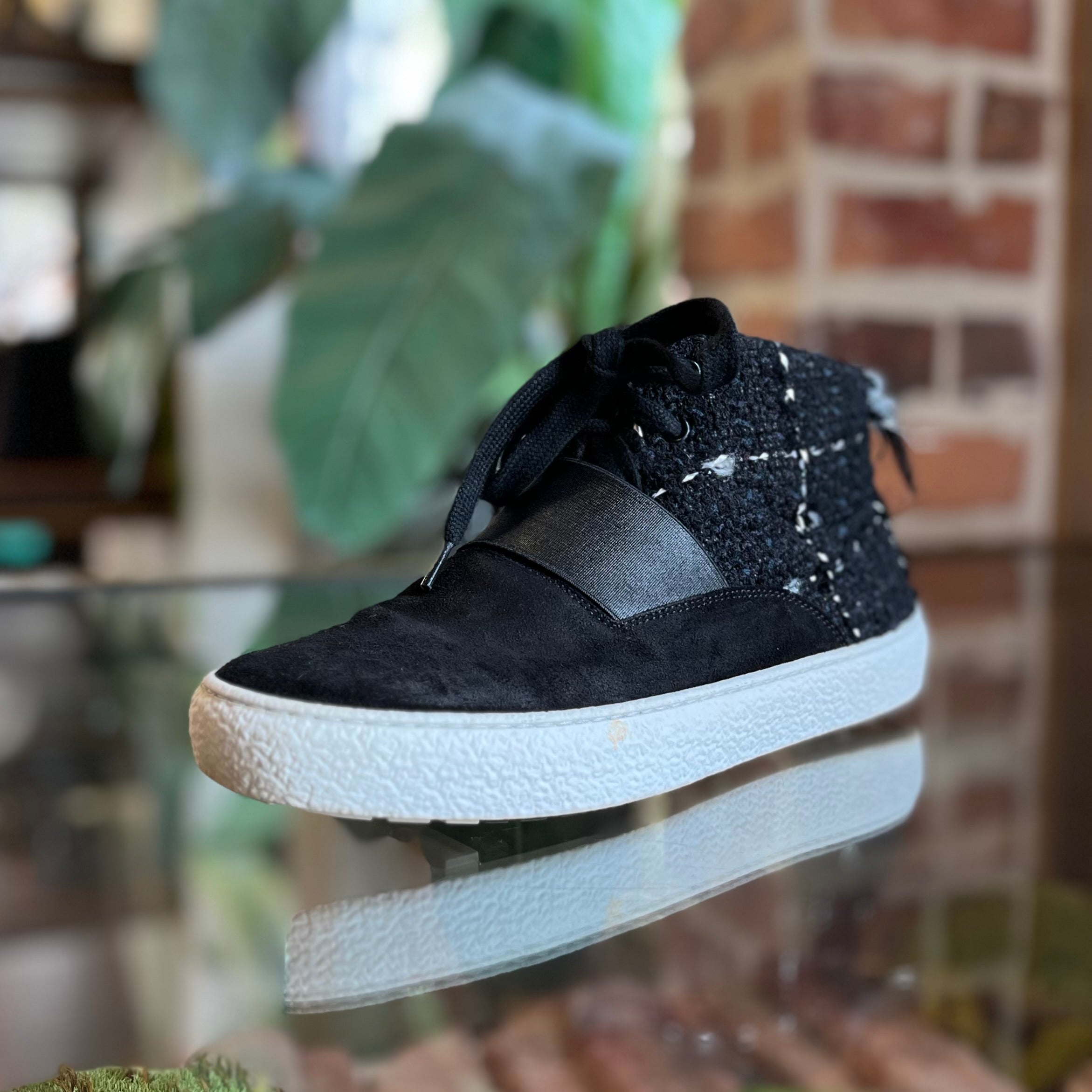 CHANEL CC High Top Black Suede Tweed Sneakers SZ38(8US)