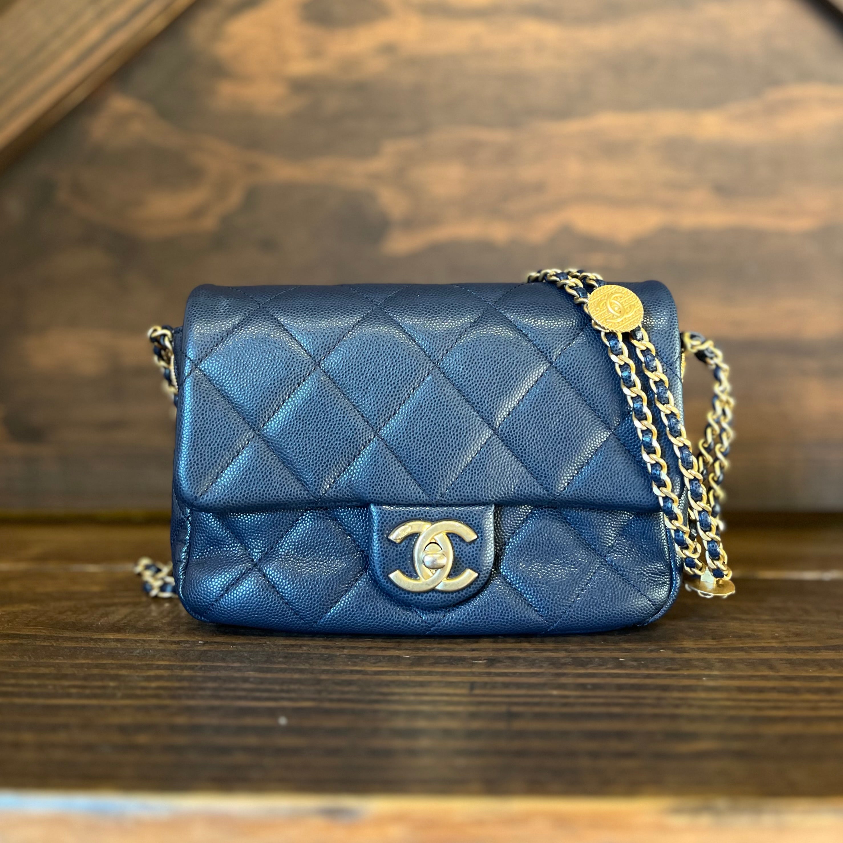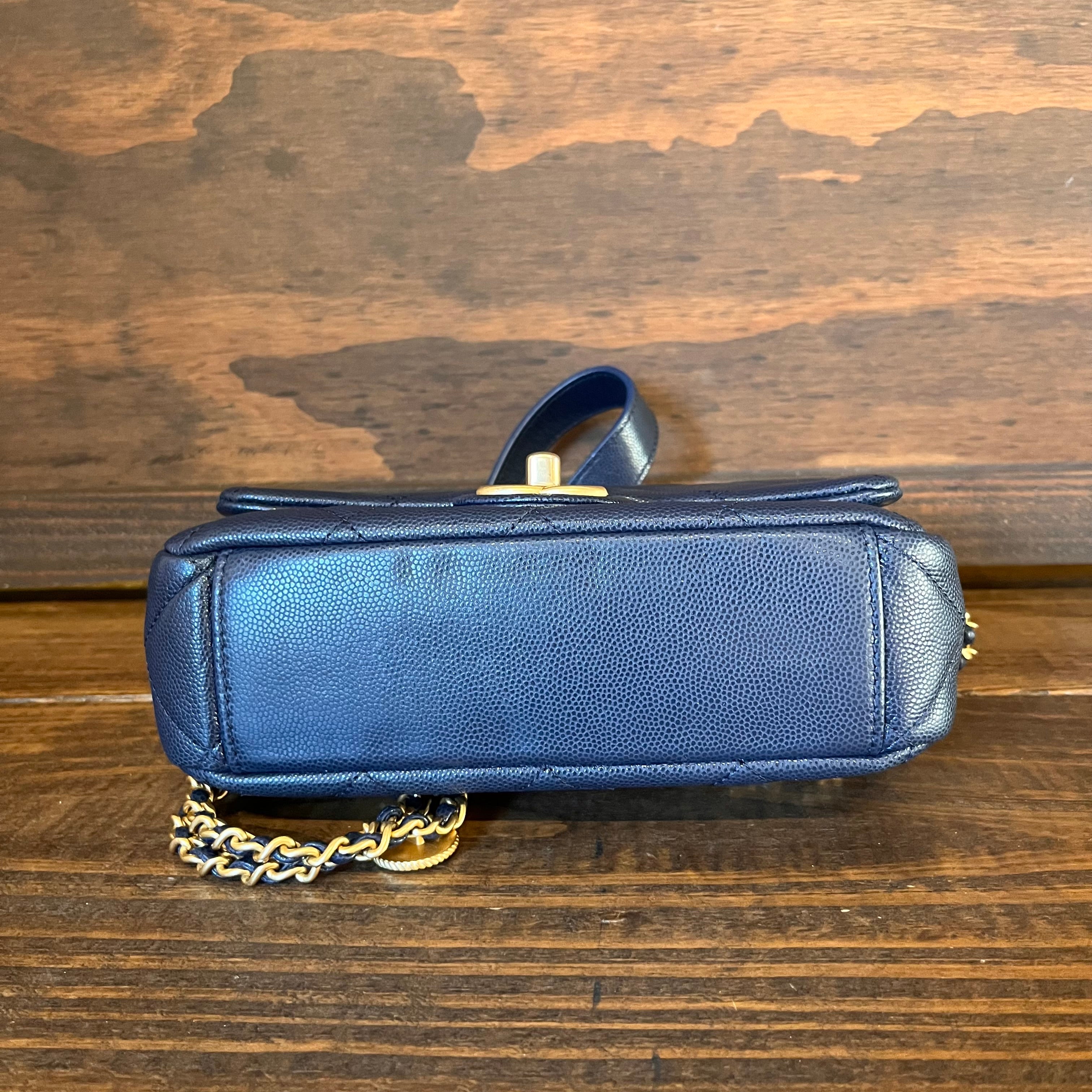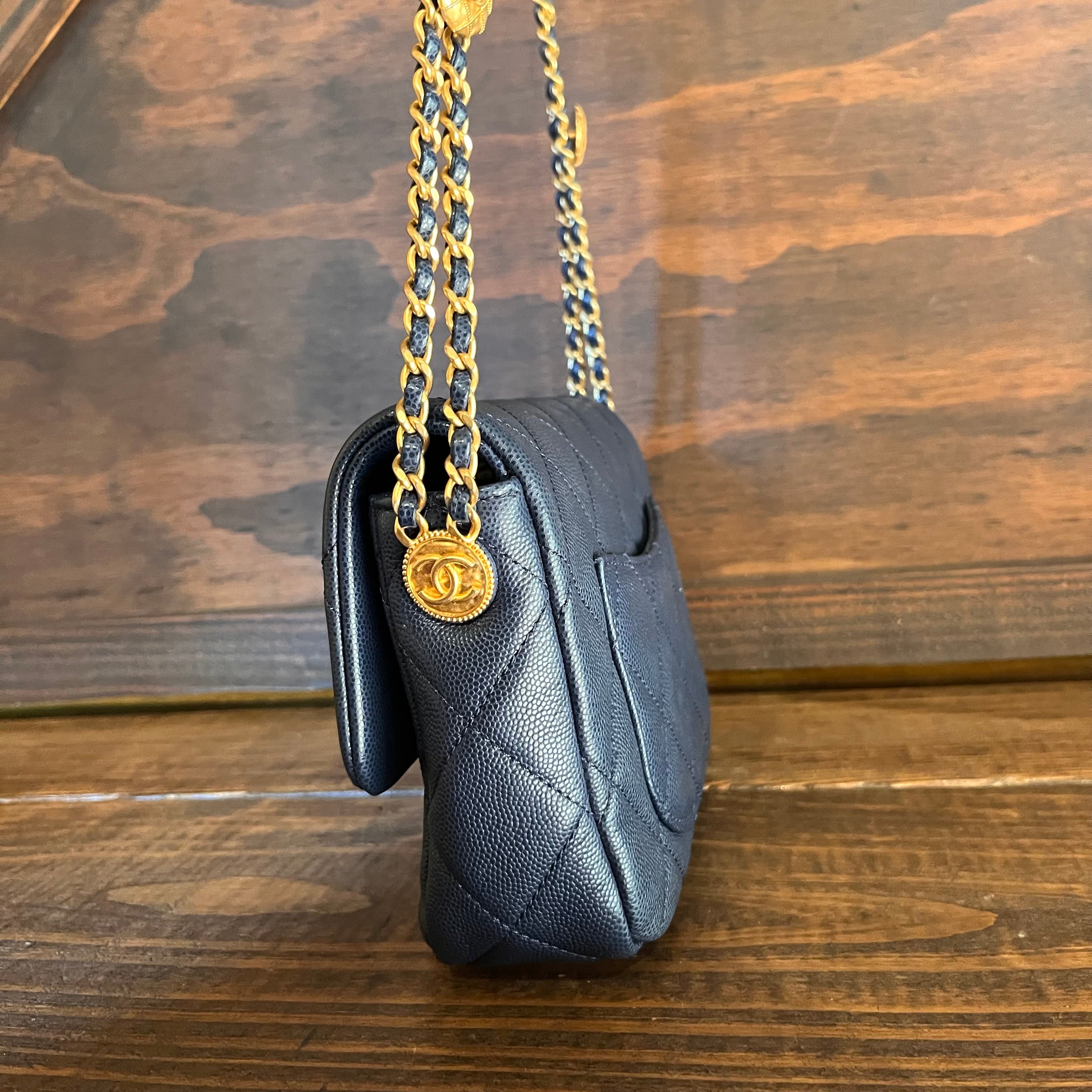 CHANEL Twist Your Buttons Small Navy Blue Quilted Caviar Flap Shoulder Bag