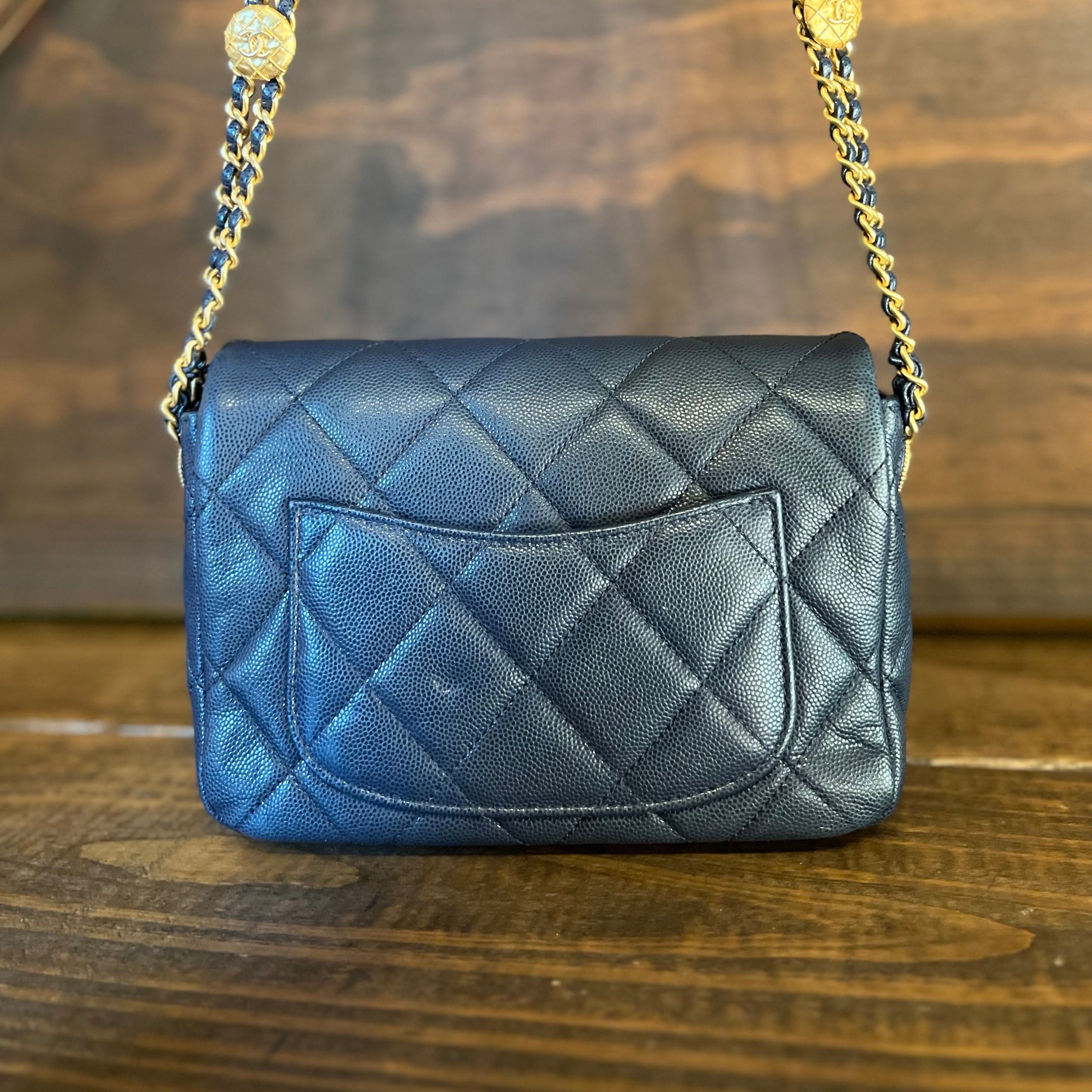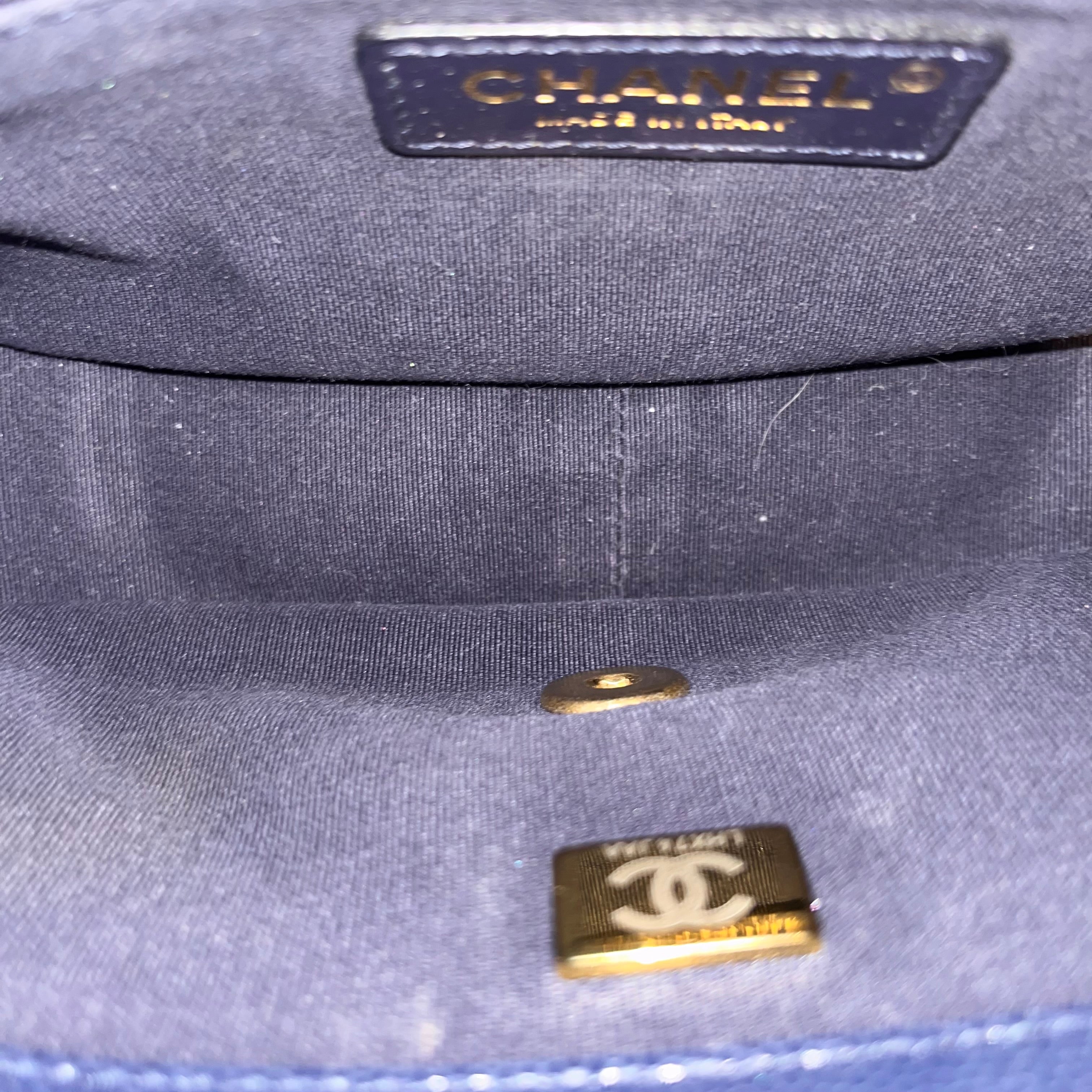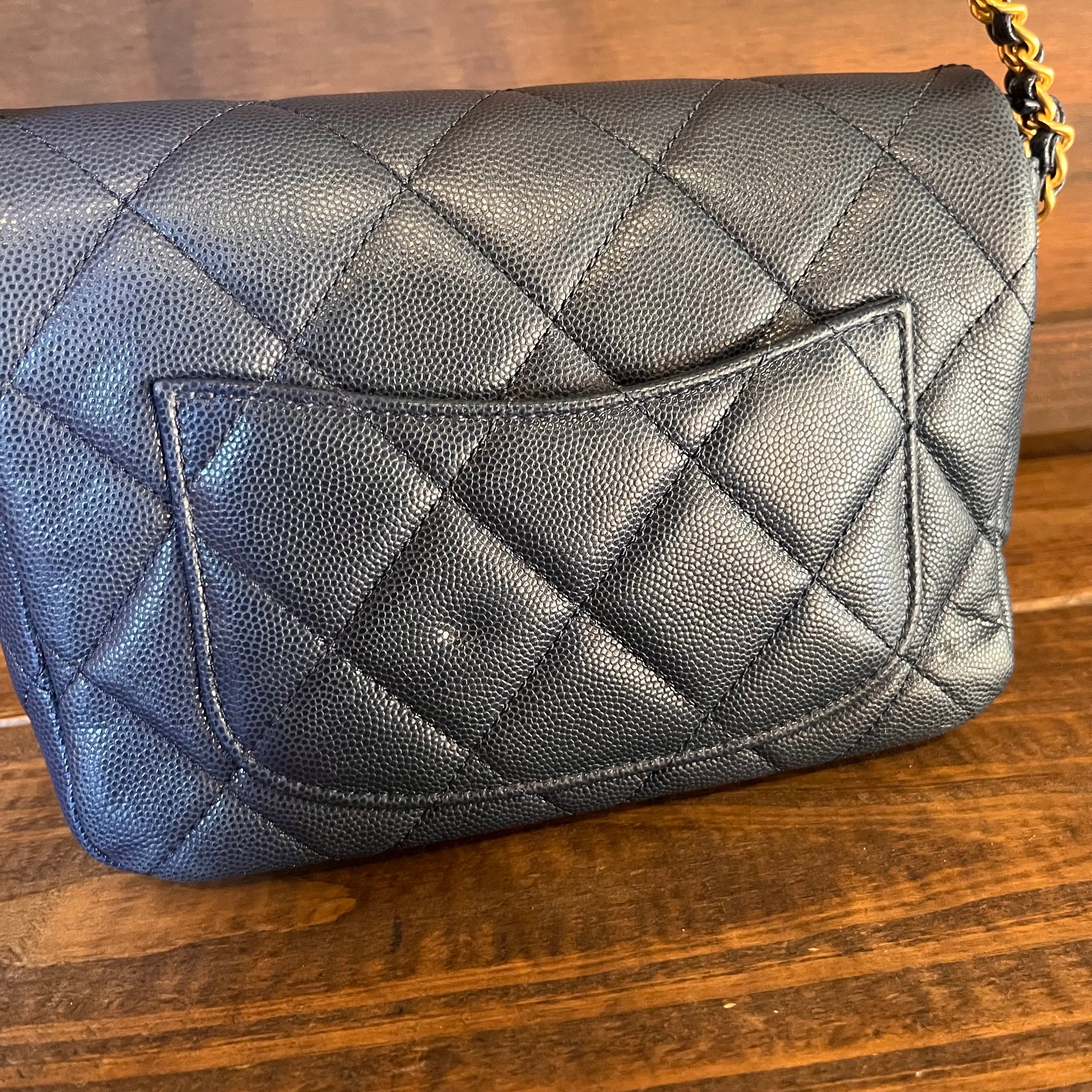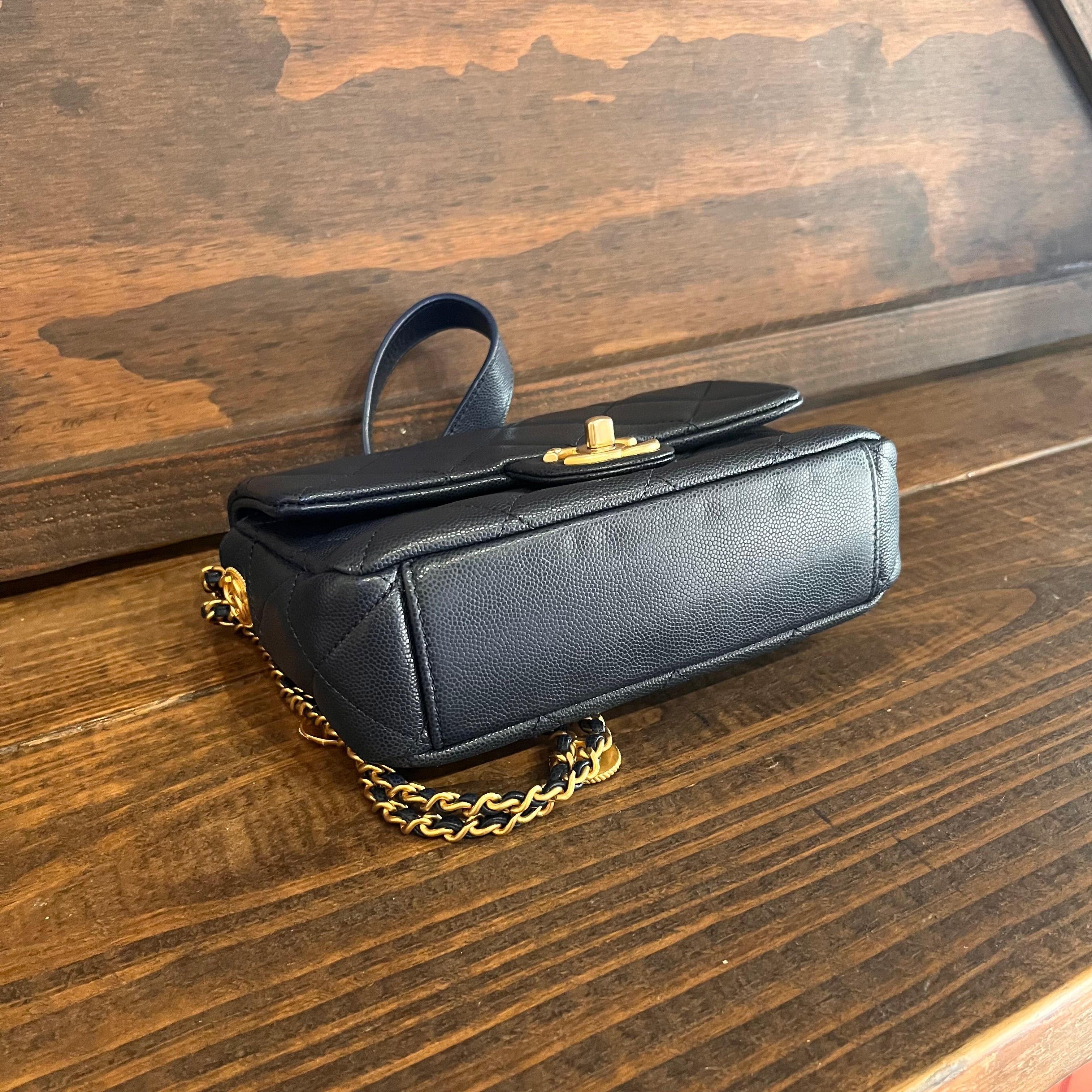 CHANEL Twist Your Buttons Small Navy Blue Quilted Caviar Flap Shoulder Bag