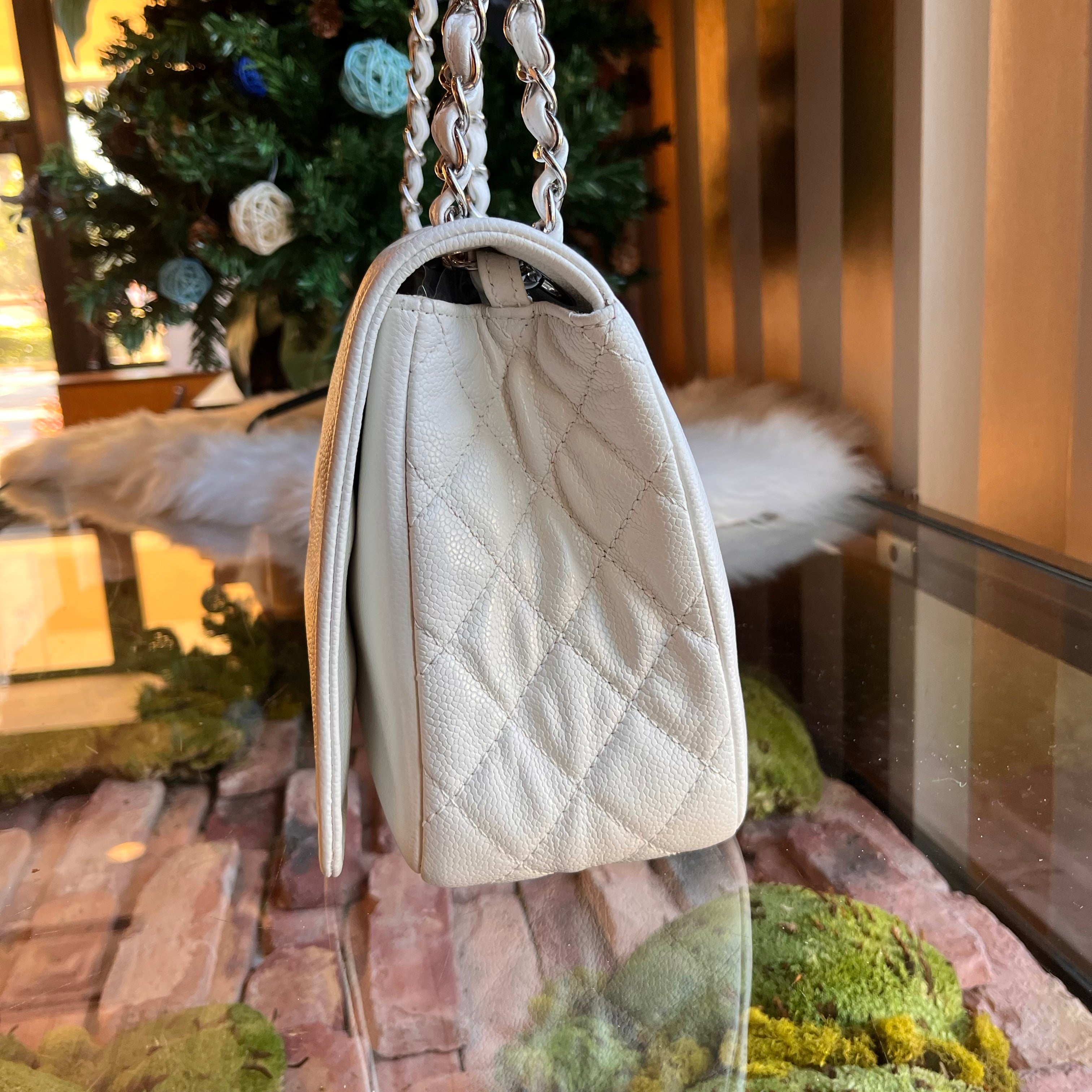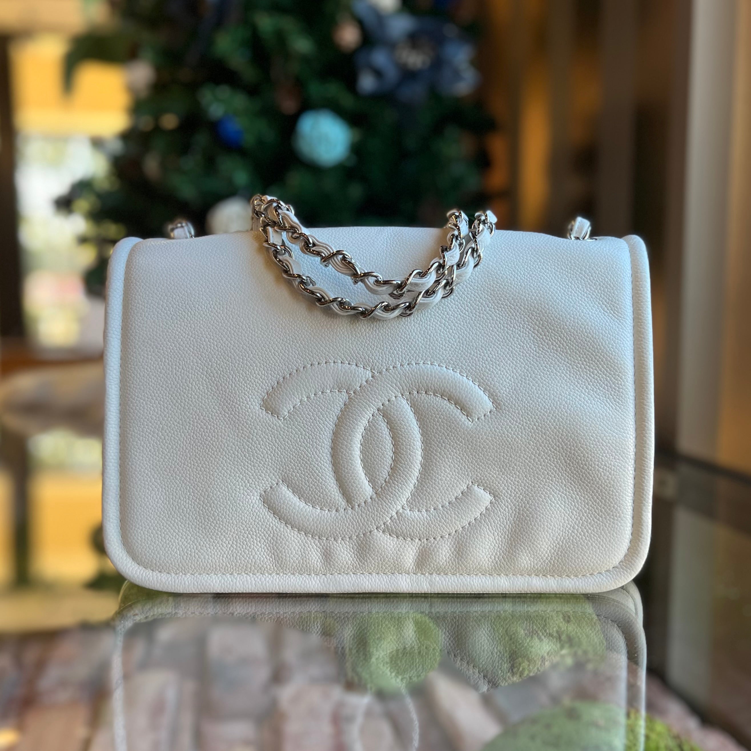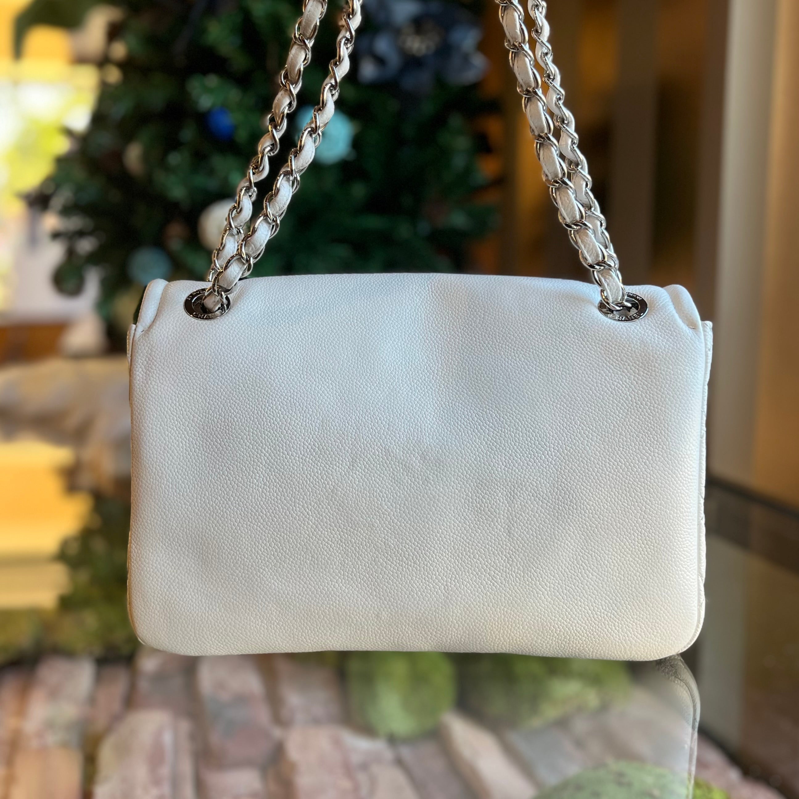 CHANEL White Caviar CC Single Flap Shoulder Bag ADI1170