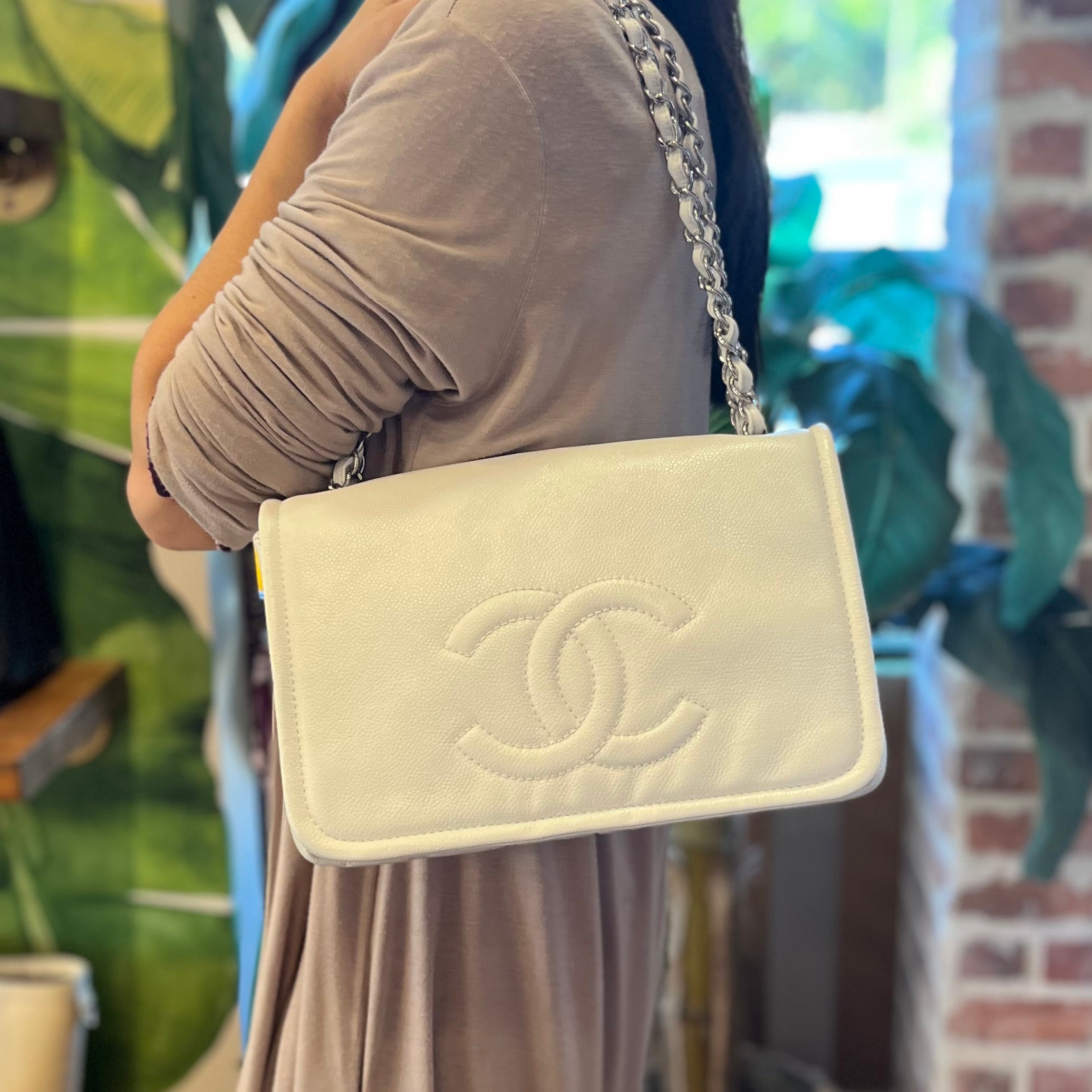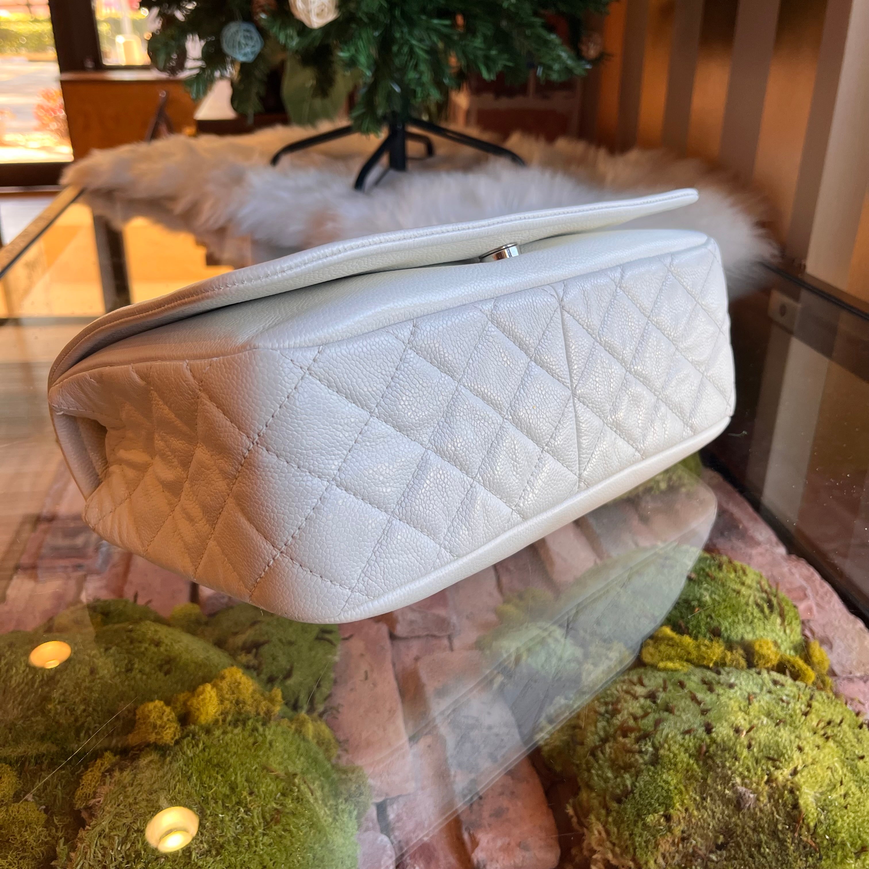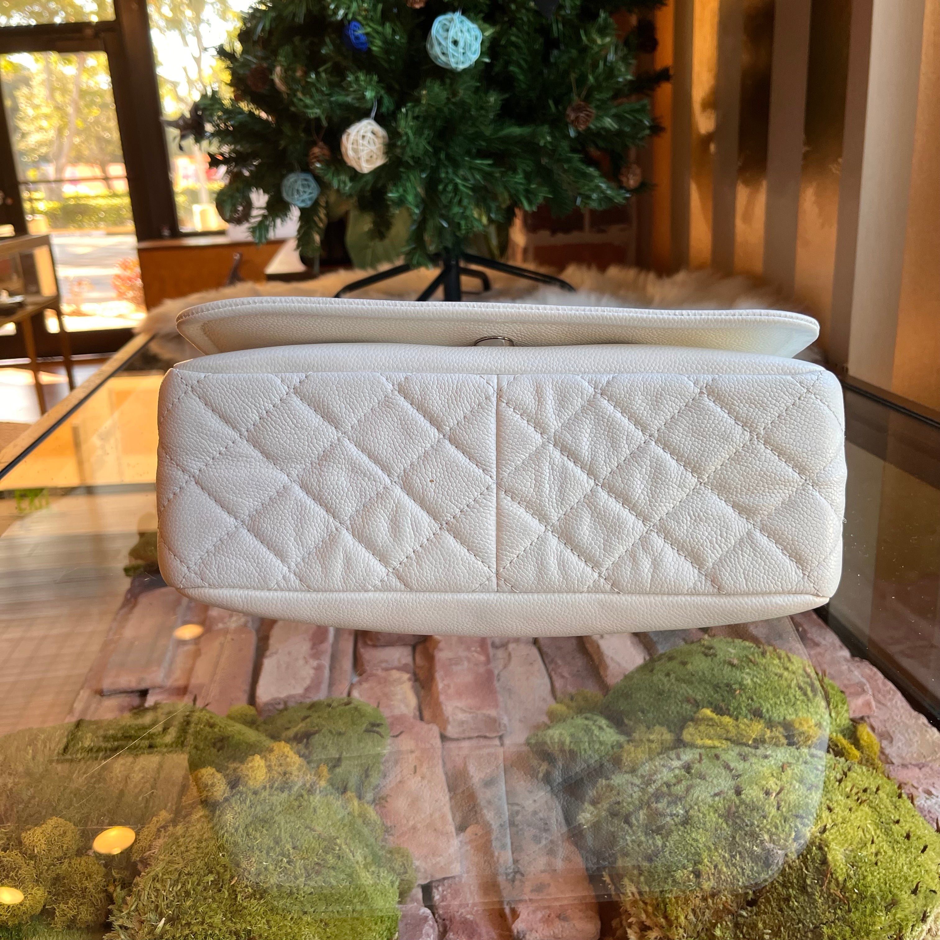 CHANEL White Caviar CC Single Flap Shoulder Bag ADI1170