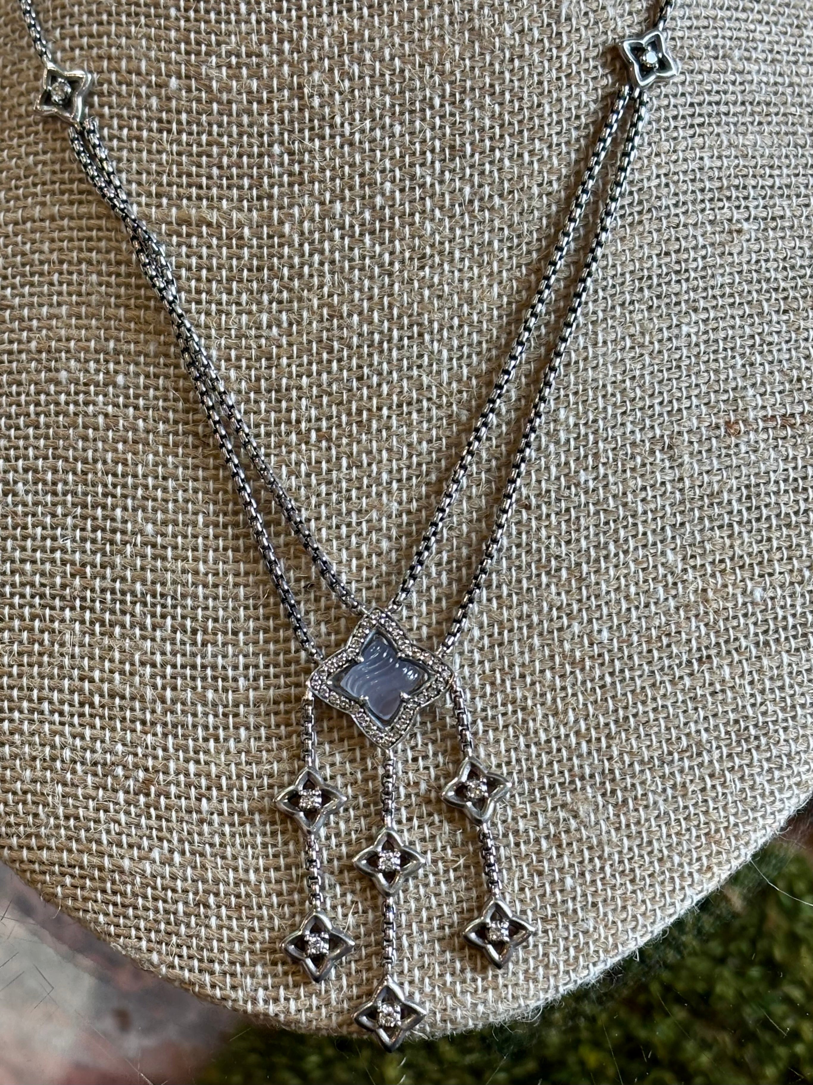 DAVID YURMAN Chalcedony Quatrefoil Diamond Drop Pendant Necklace