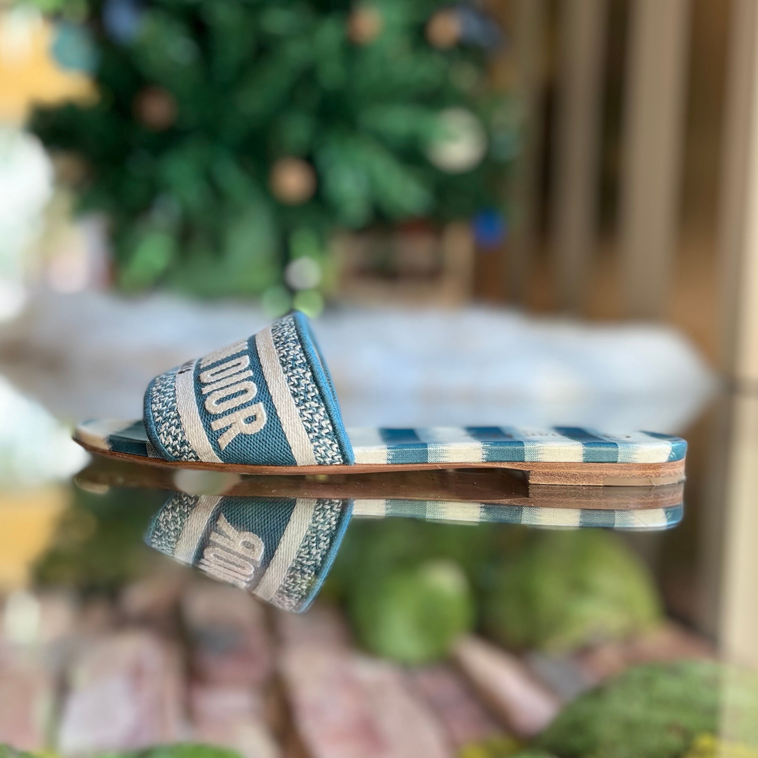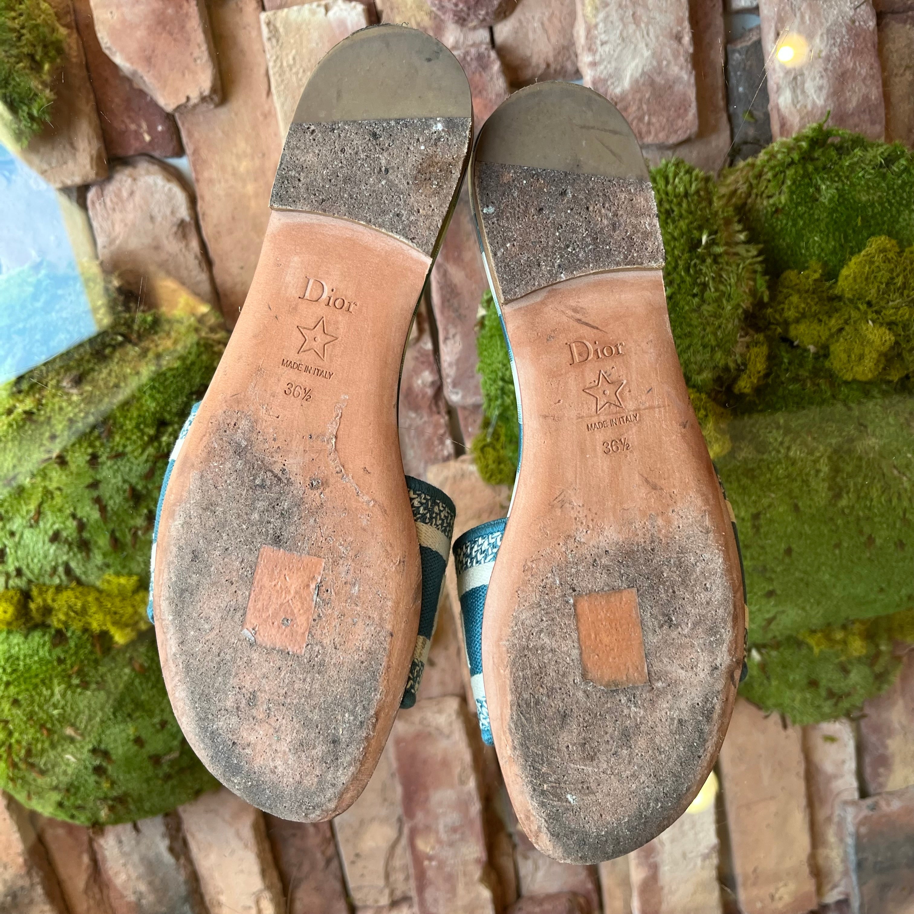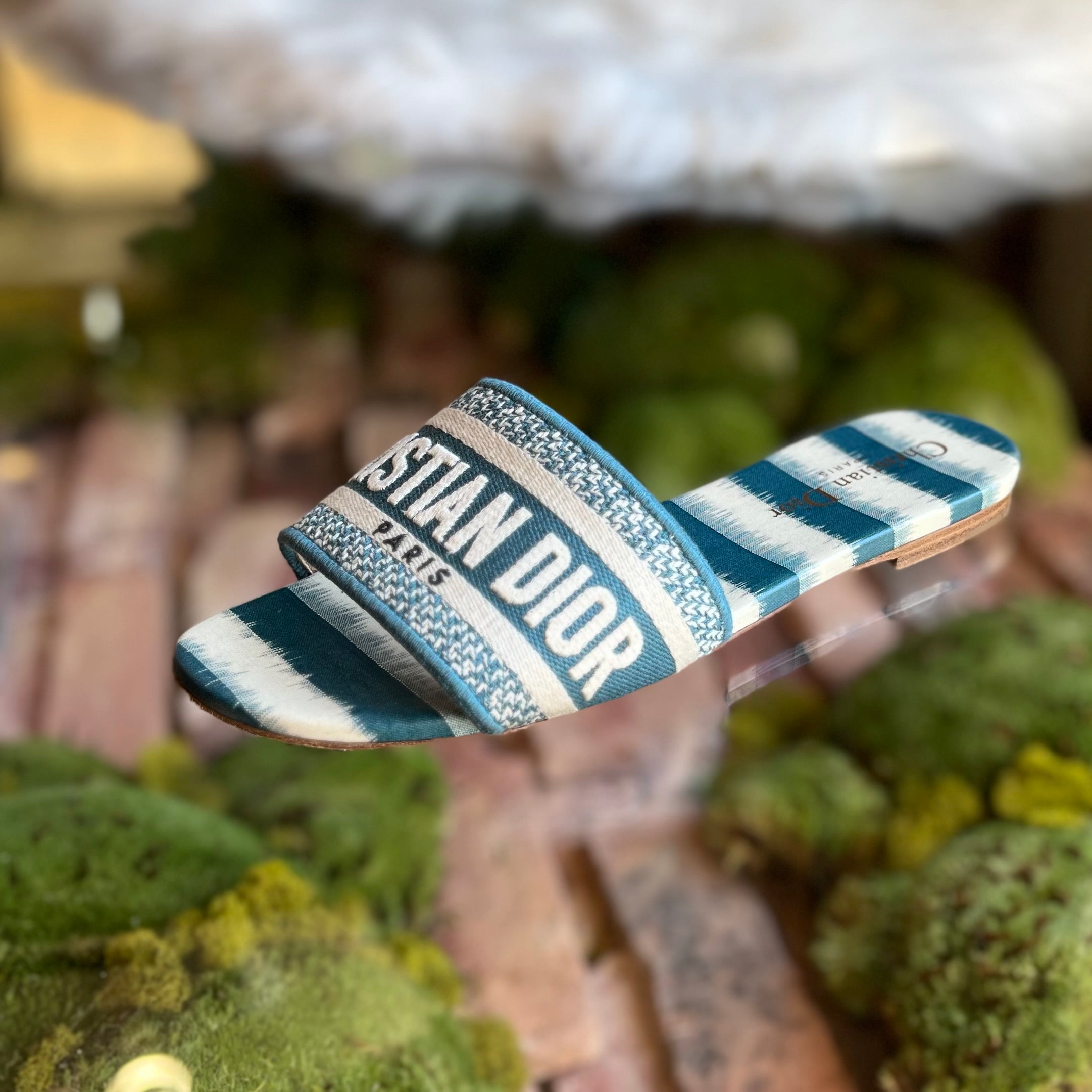 DIOR DWay Blue White Embroidered Striped Sandals SZ36.5(6.5US)