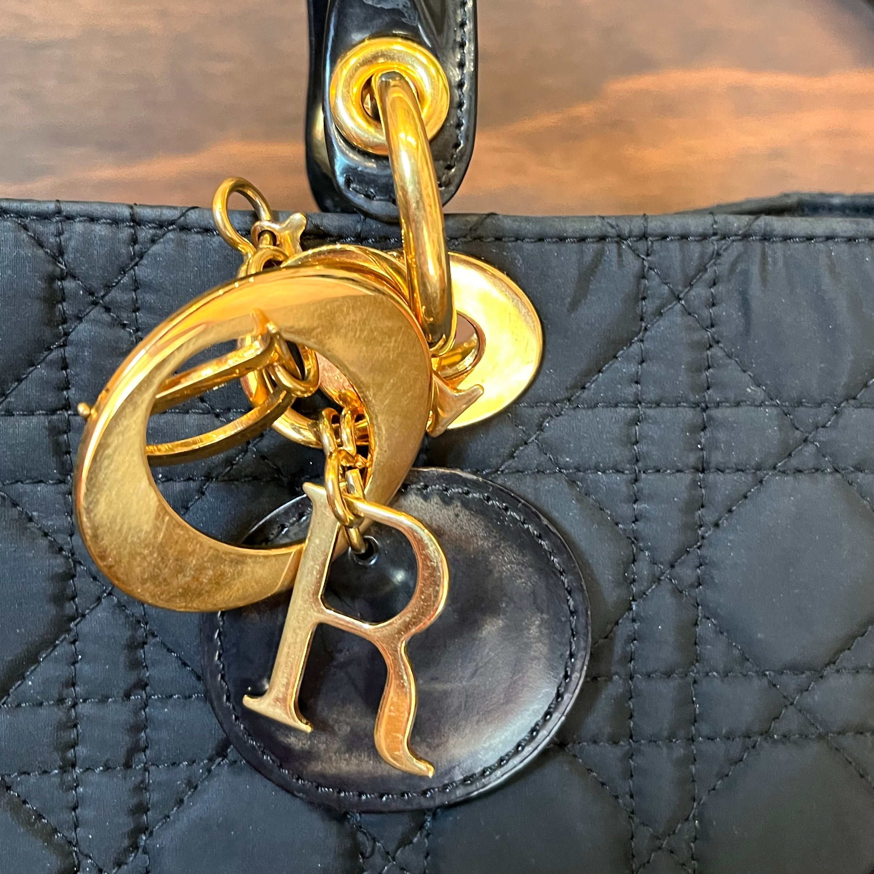 CHRISTIAN DIOR Lady Dior Large Black Nylon Cannage Tote Bag