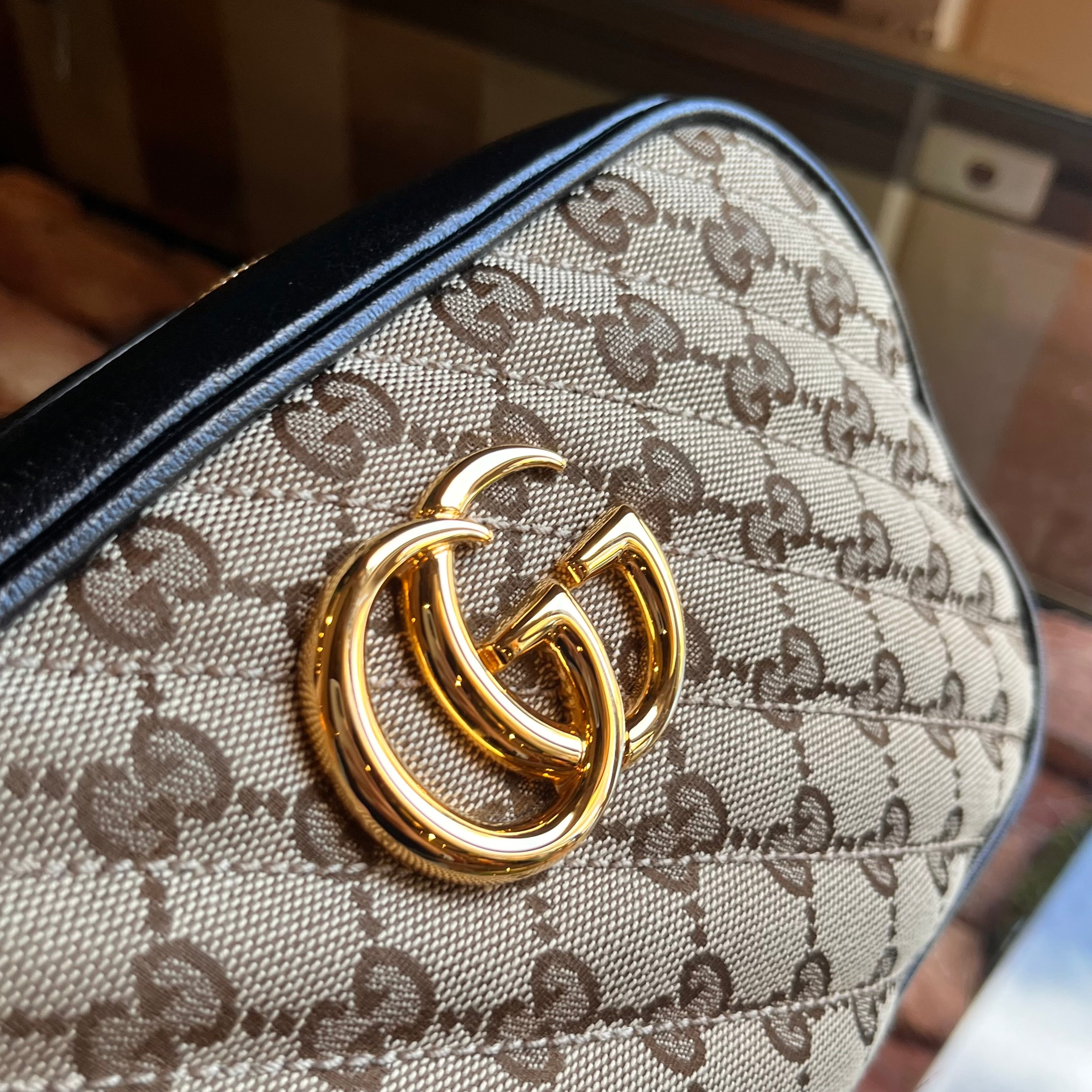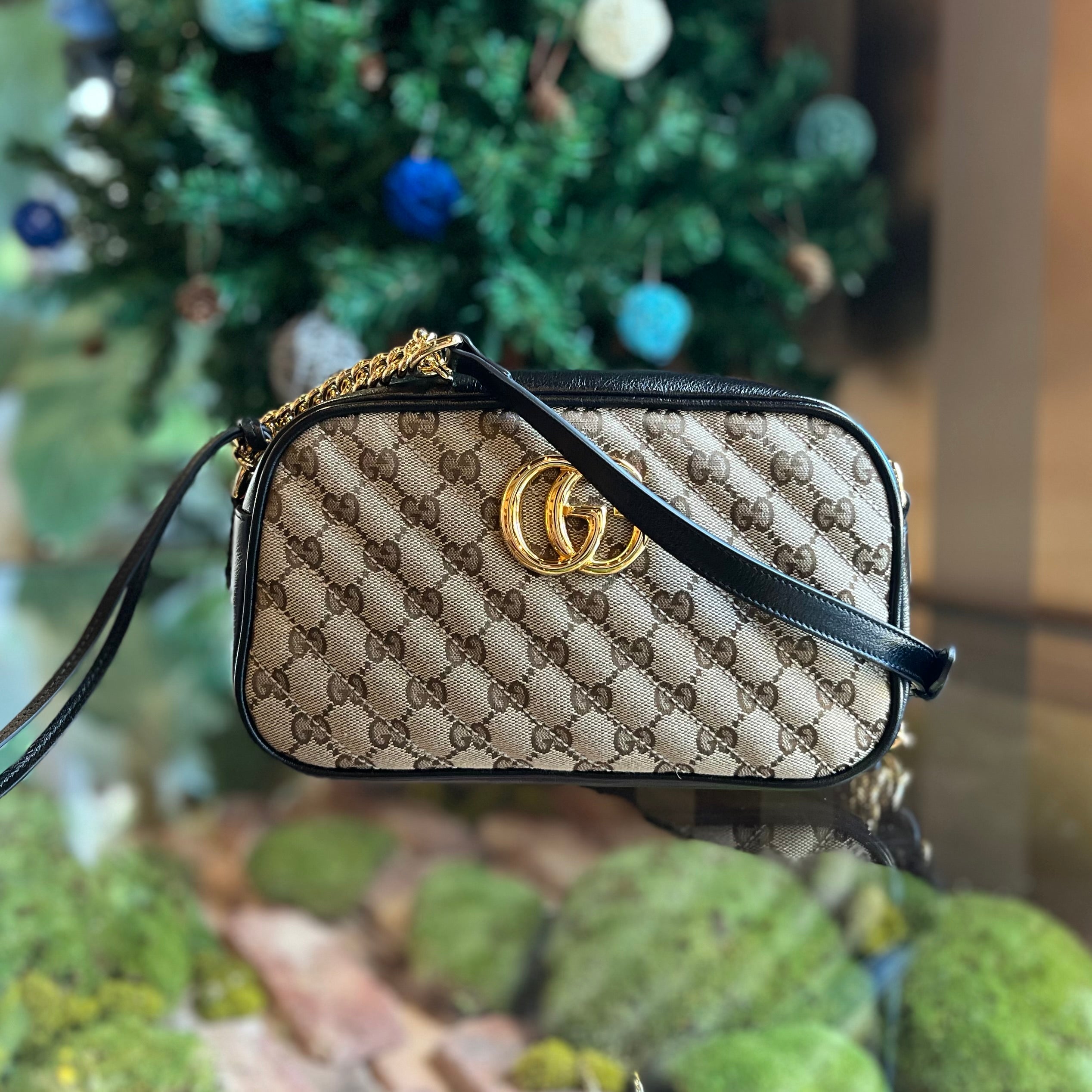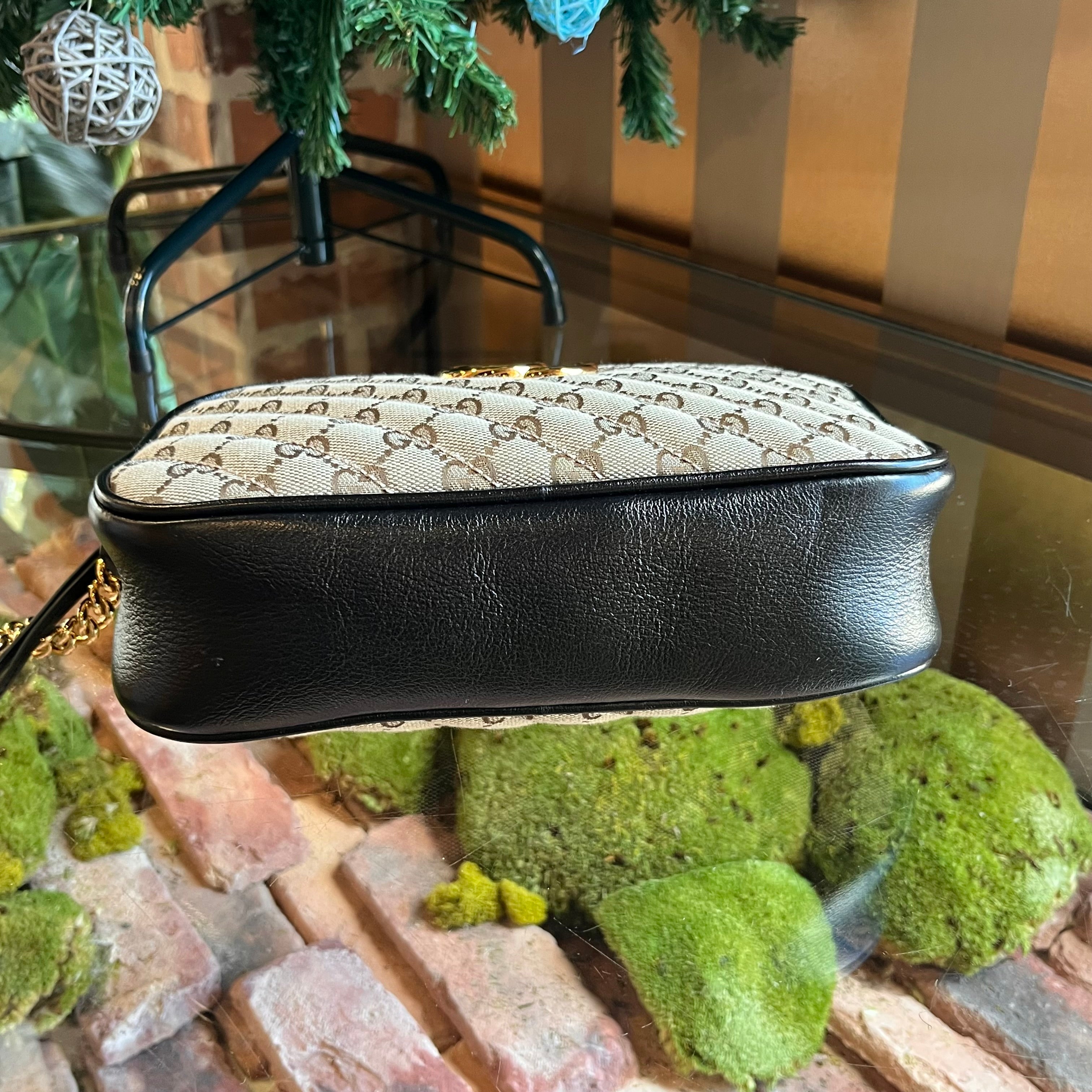 GUCCI GG Marmont Small Diagonal Quilted GG Canvas Leather Shoulder Bag