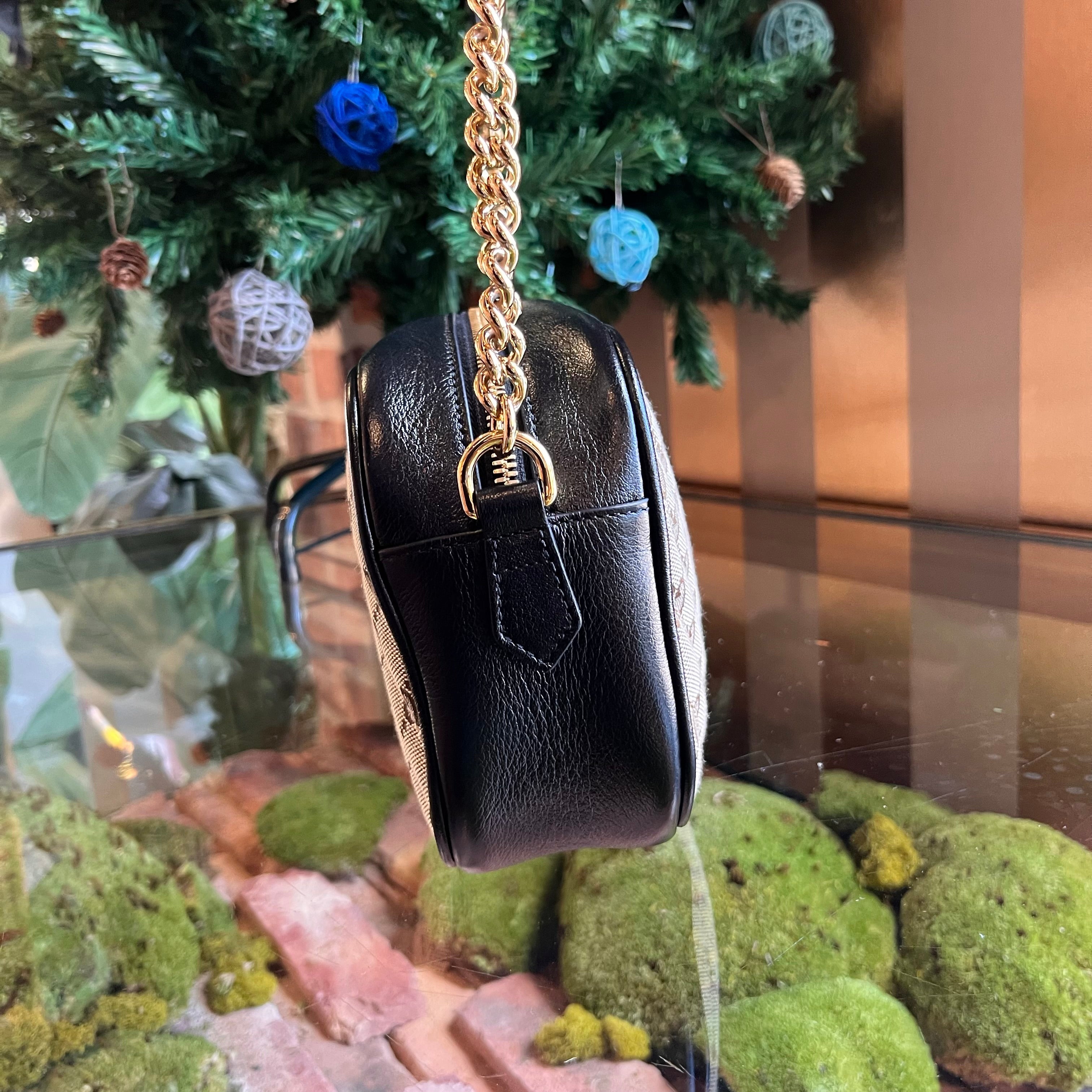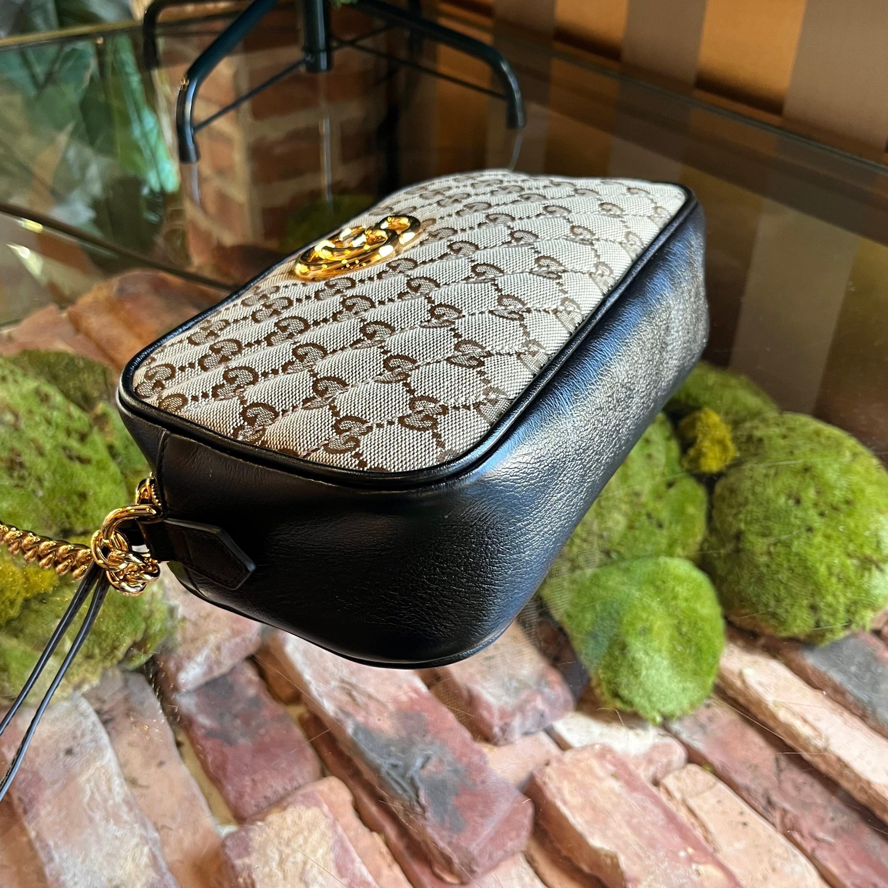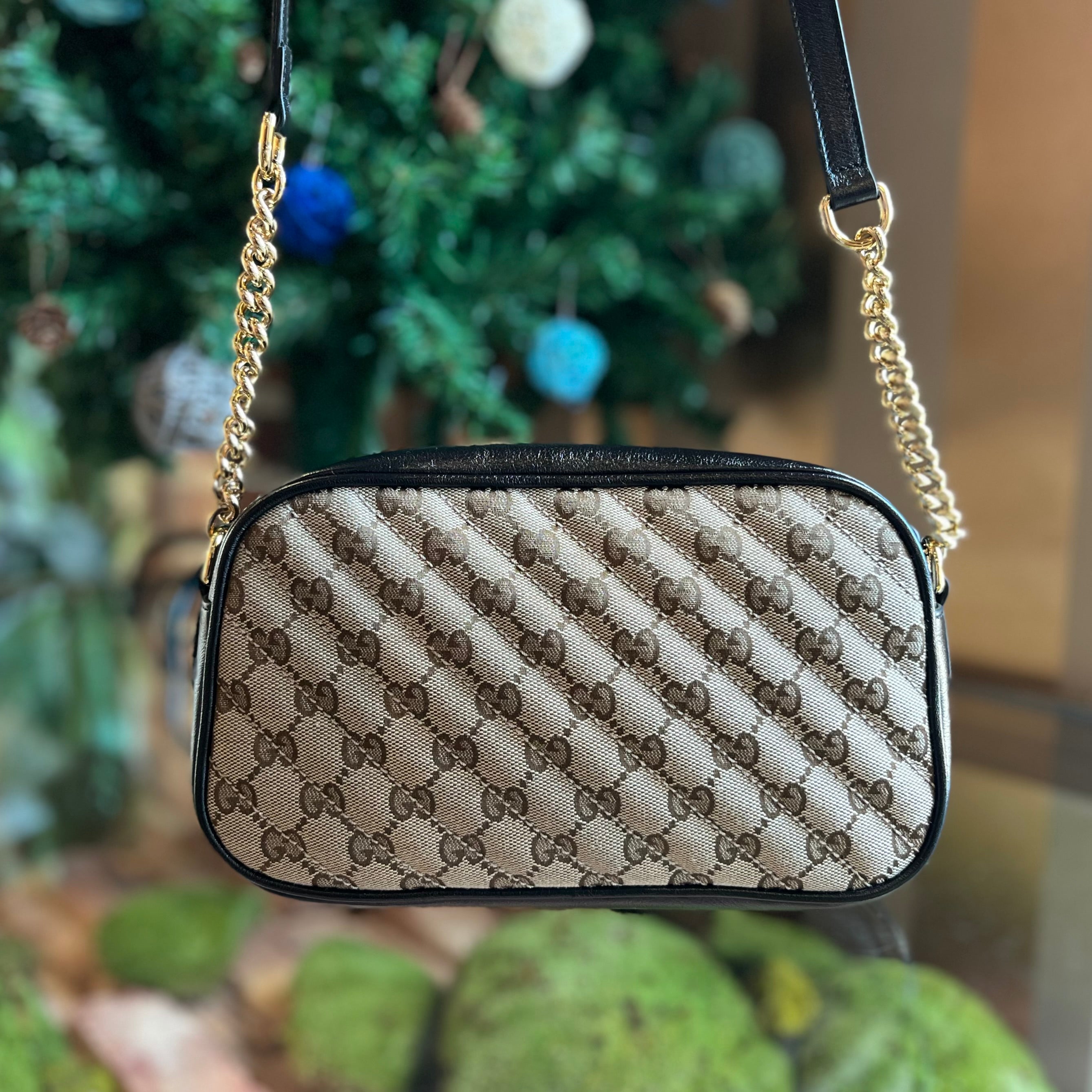 GUCCI GG Marmont Small Diagonal Quilted GG Canvas Leather Shoulder Bag
