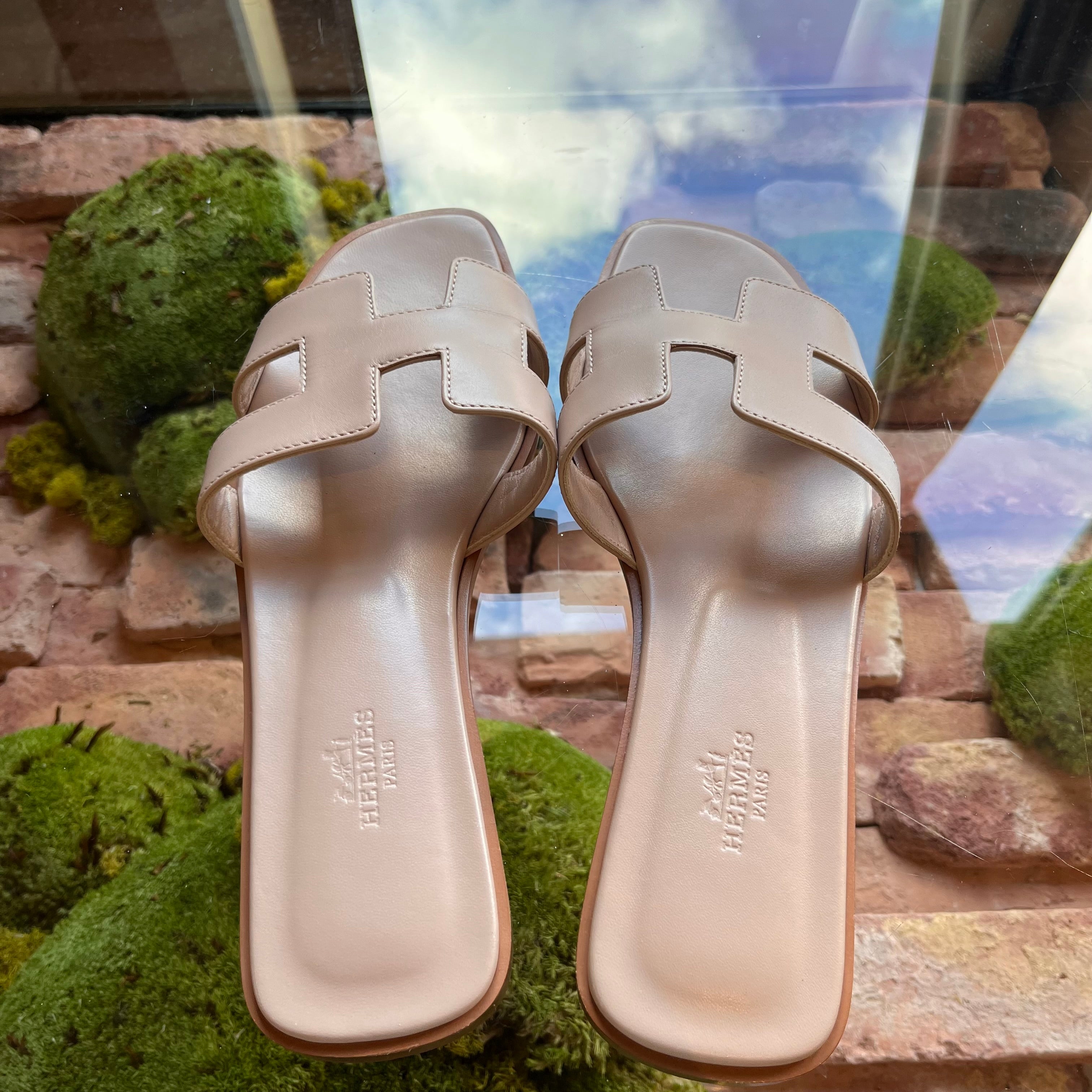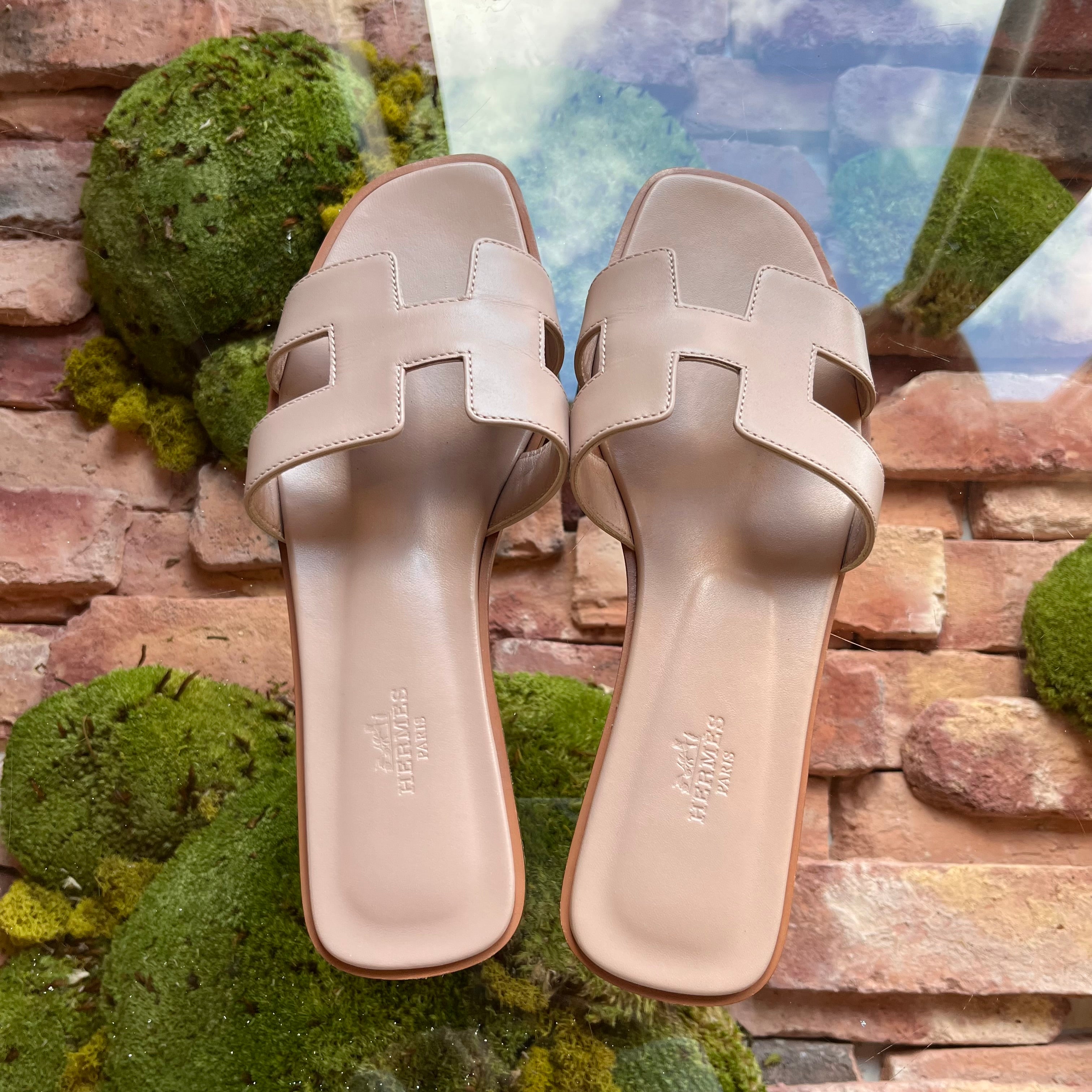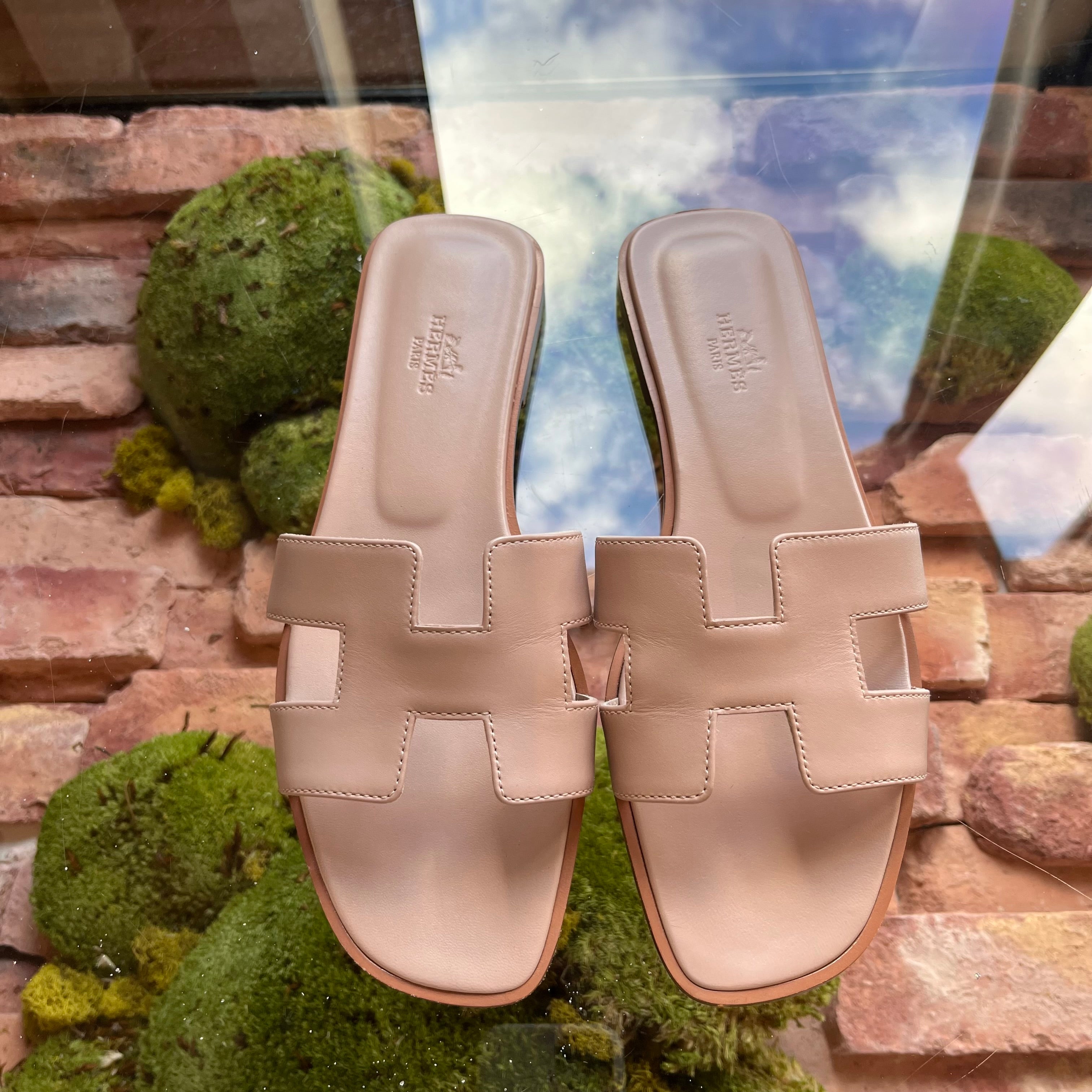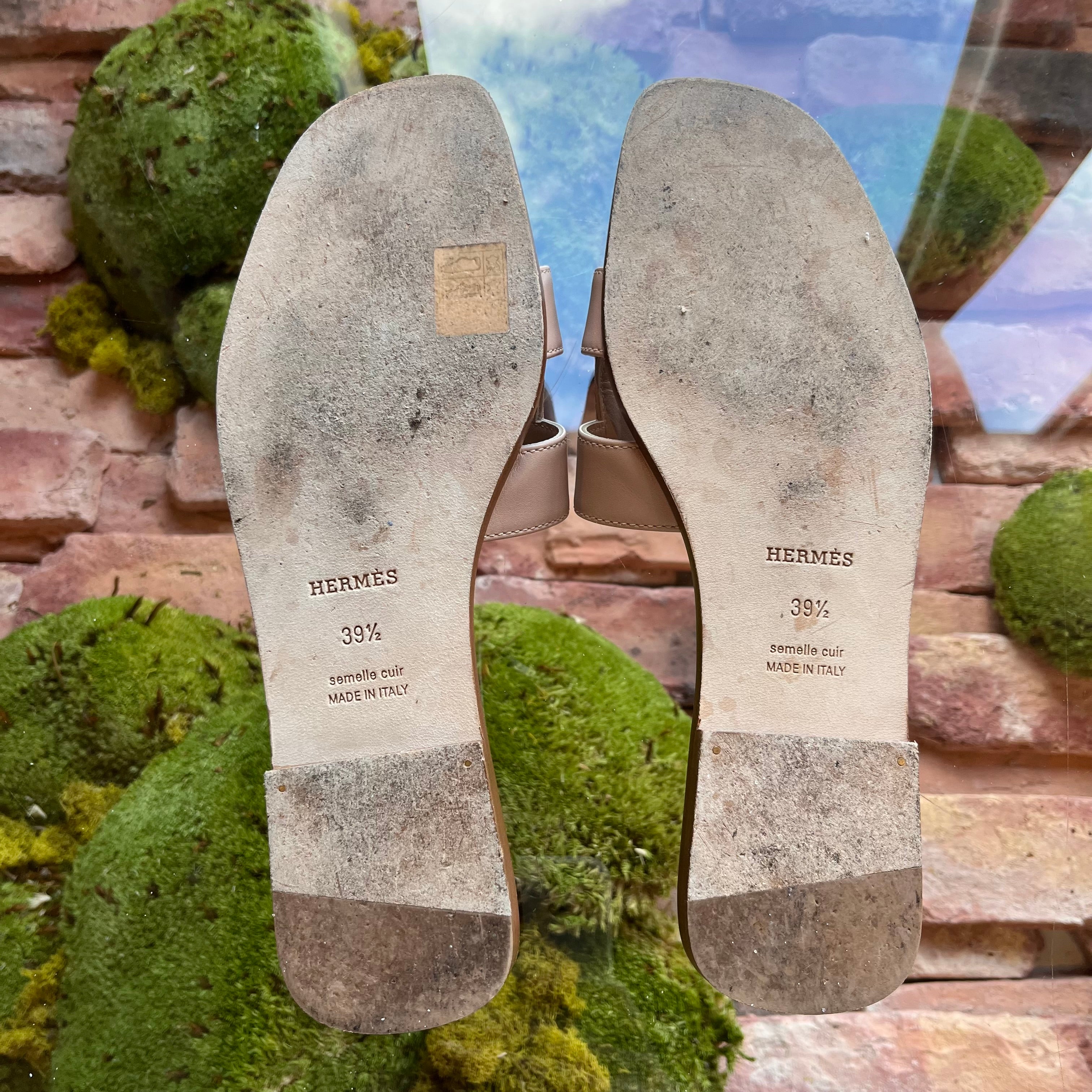 HERMES Oran Sandals Granite Rose Calfskin Leather 39.5 (US 9.5)