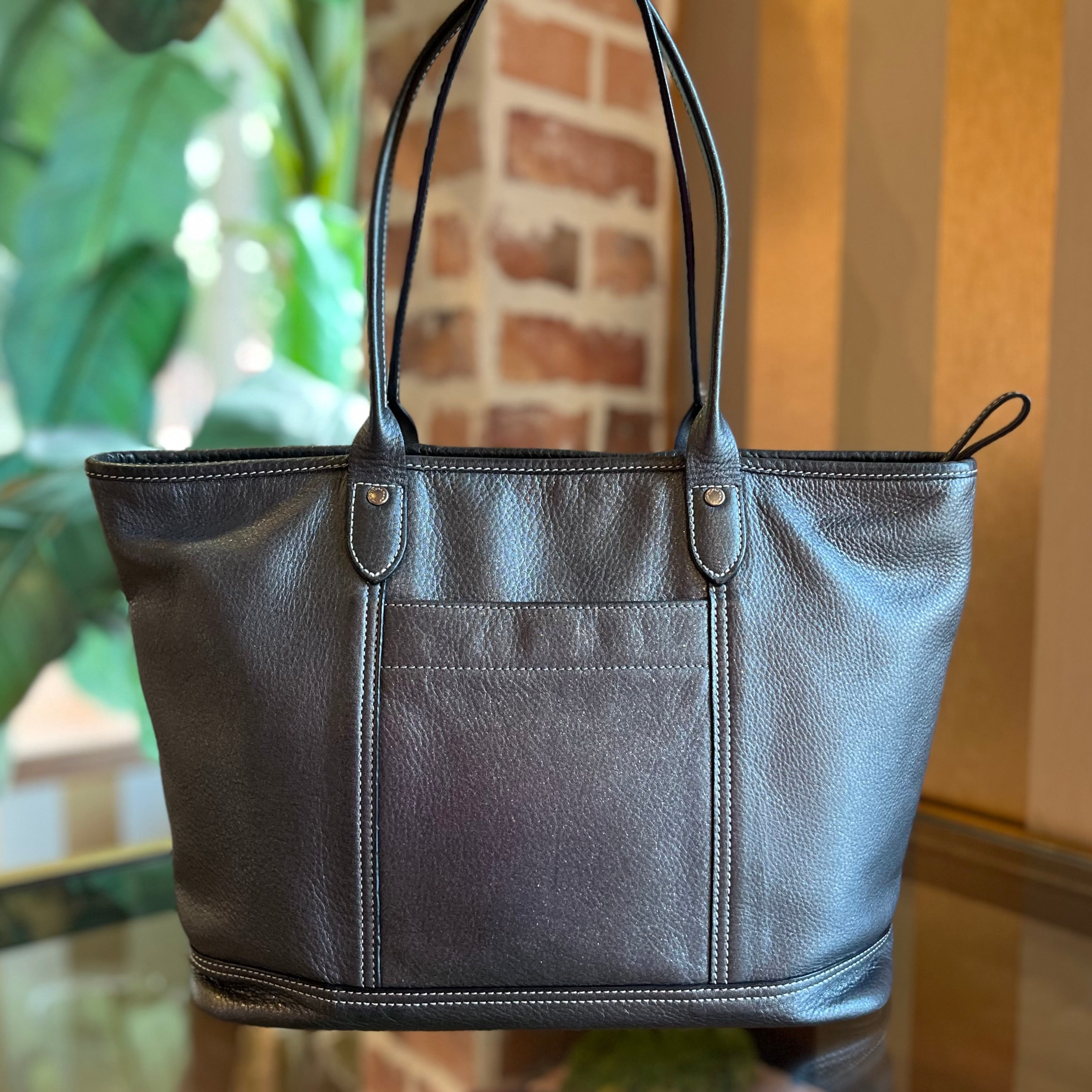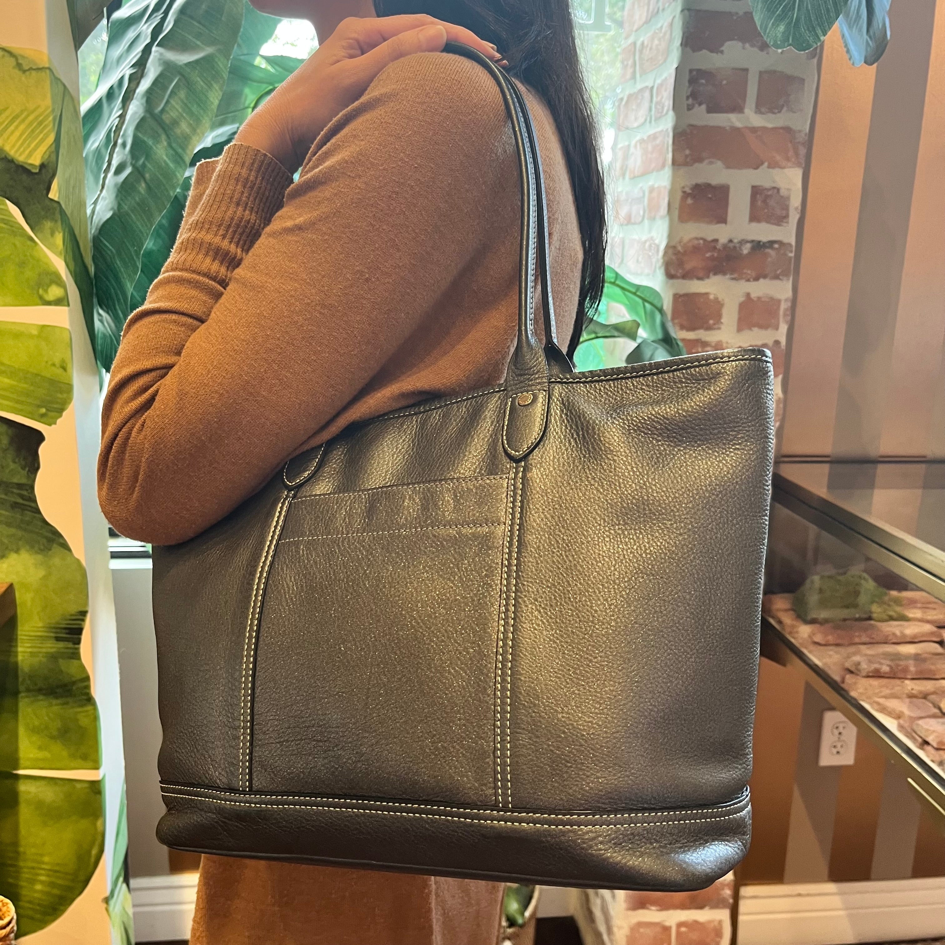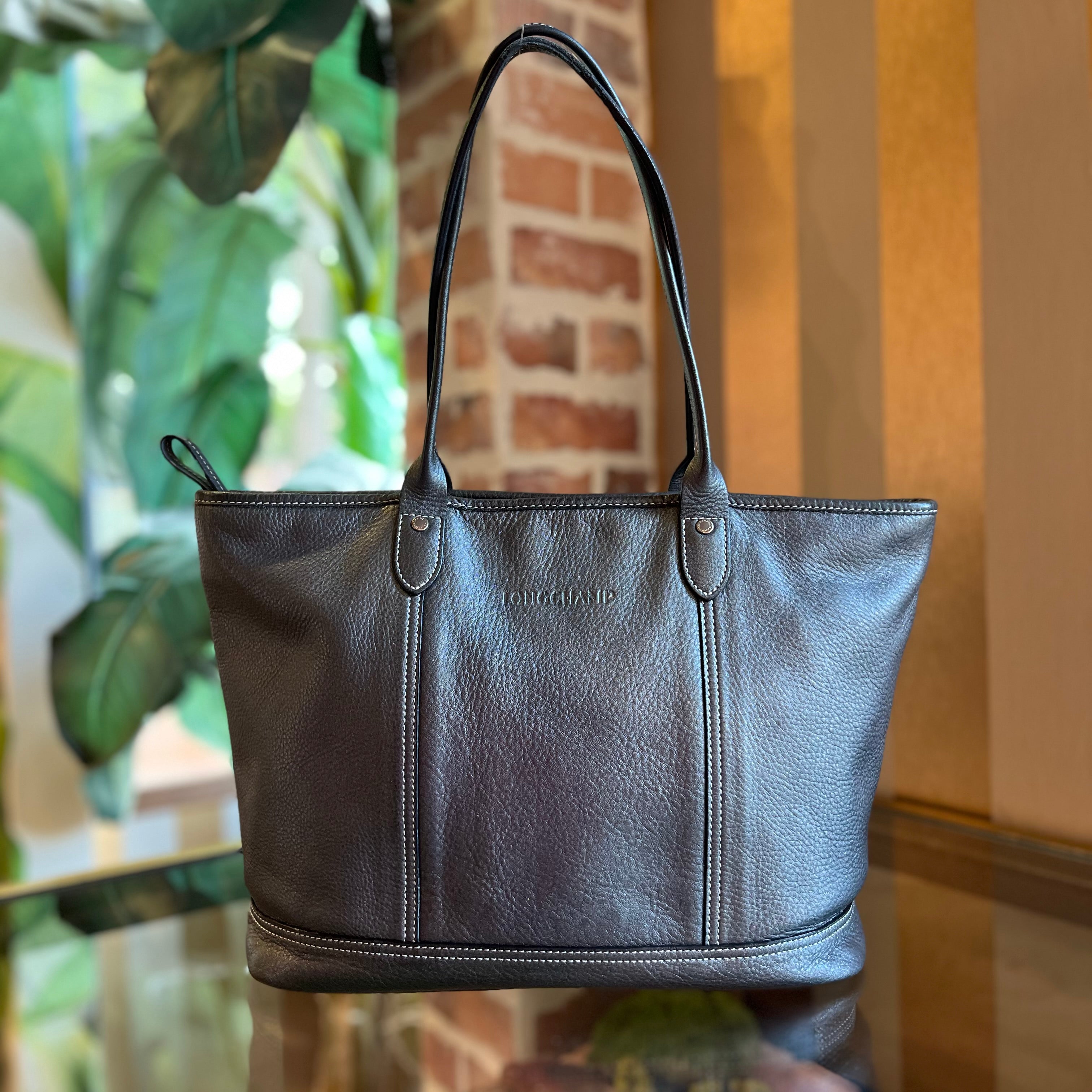 LONGCHAMP Medium Tote Pewter Shimmer Cuir Leather Tote