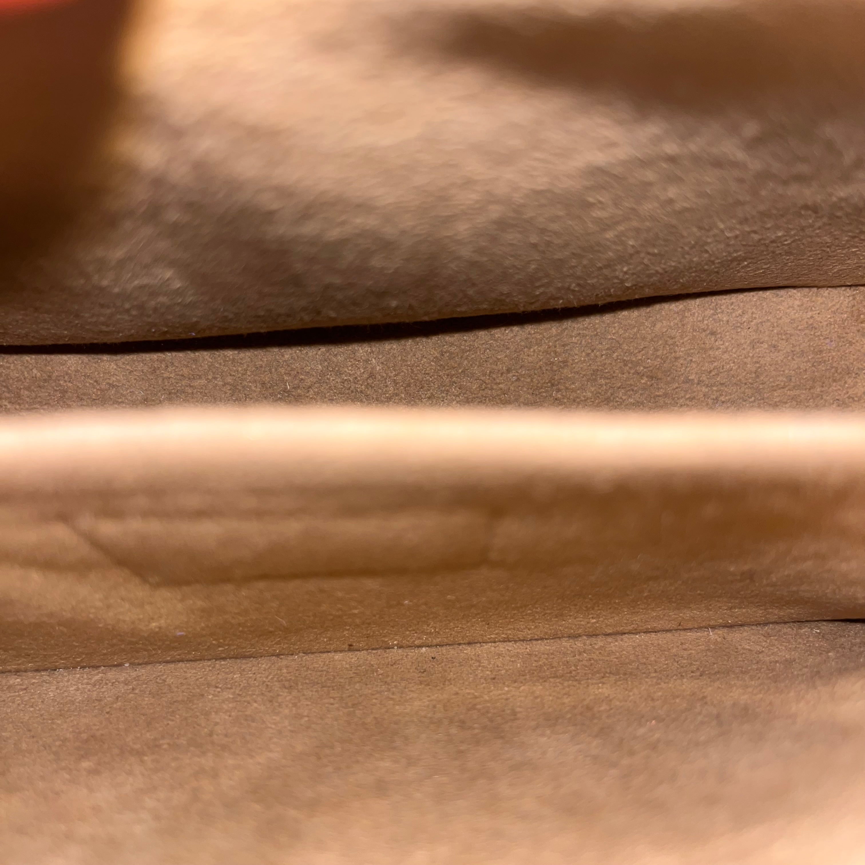 - Exterior: The exterior is gorgeous and supple. Gentle darkening along the fabric of the zipper pulls. There is scuffing with a gentle mark. Overall it's in very good condition.