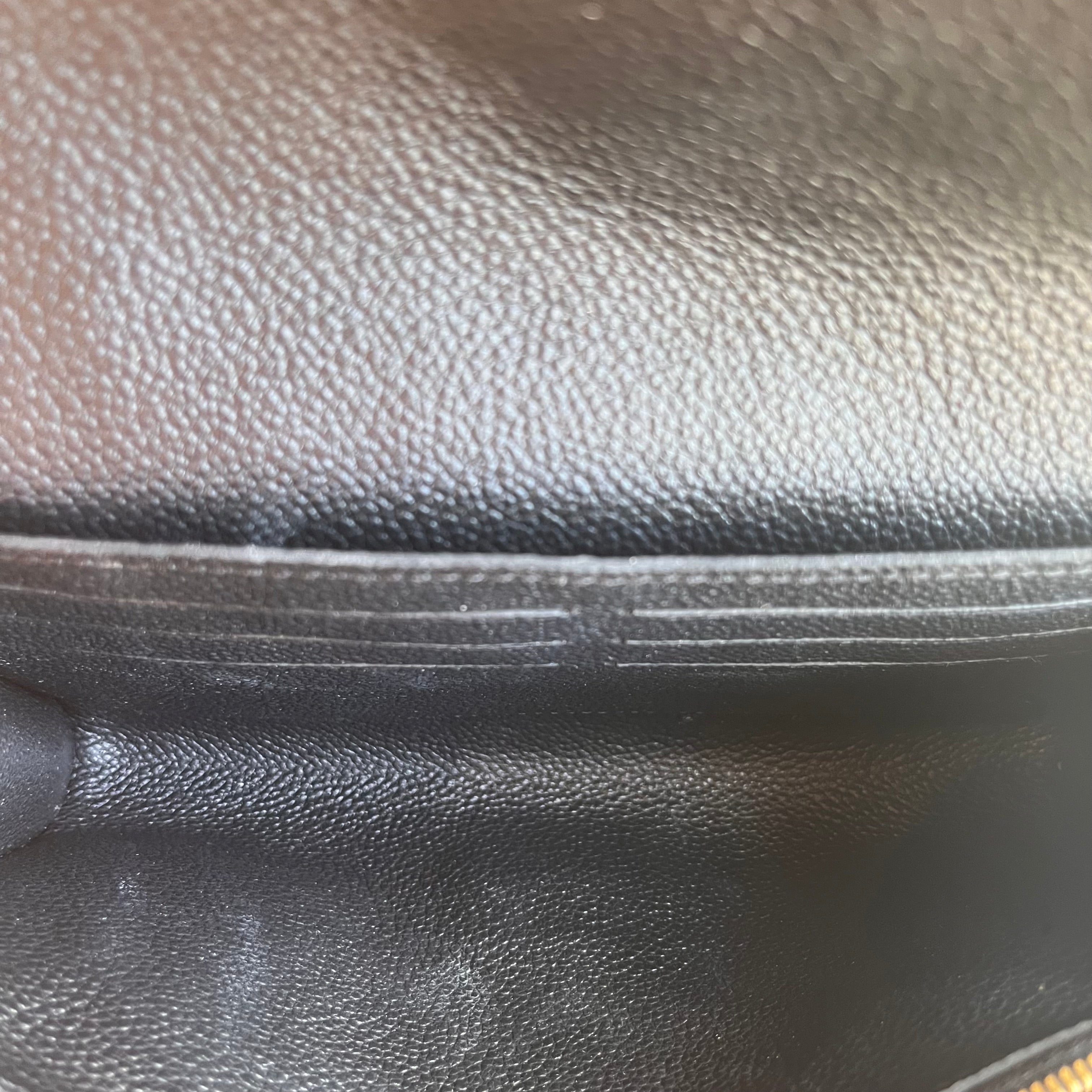 - Interior: The leather lining features rubbing, scratches and wear which may be inherent to the material or a result of handling.