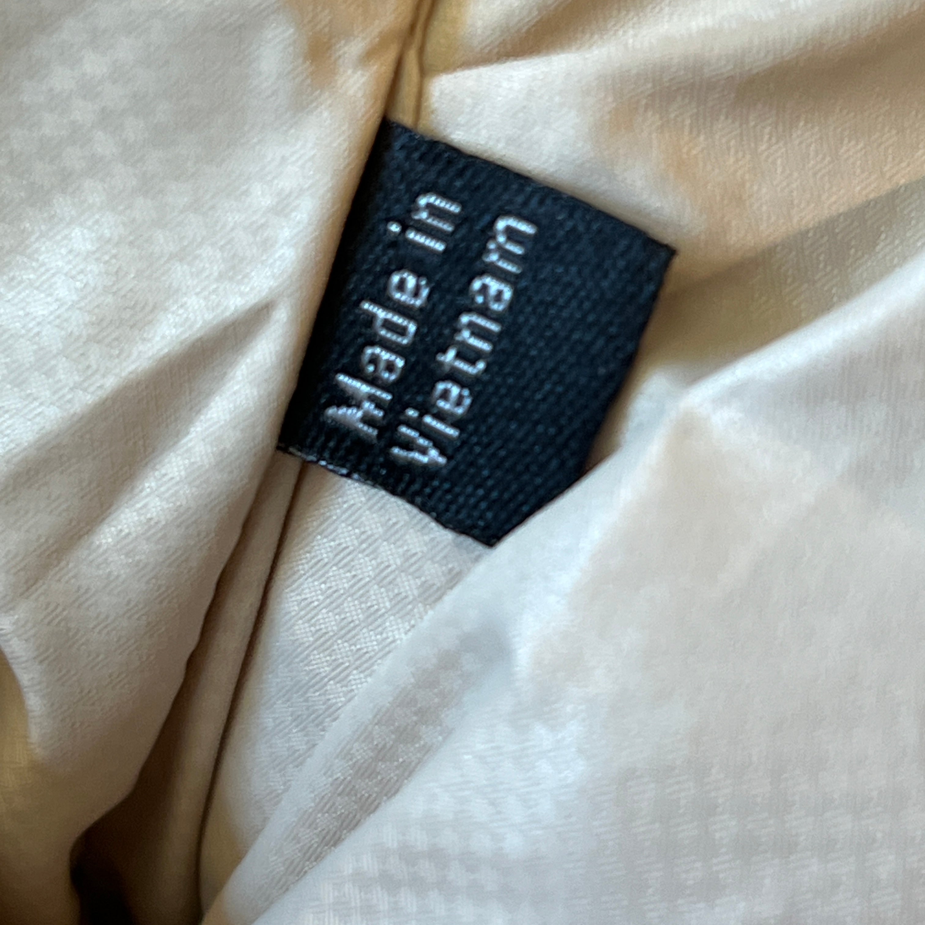 • Material: High-shine nylon in Buff (neutral beige tone) with leather trim