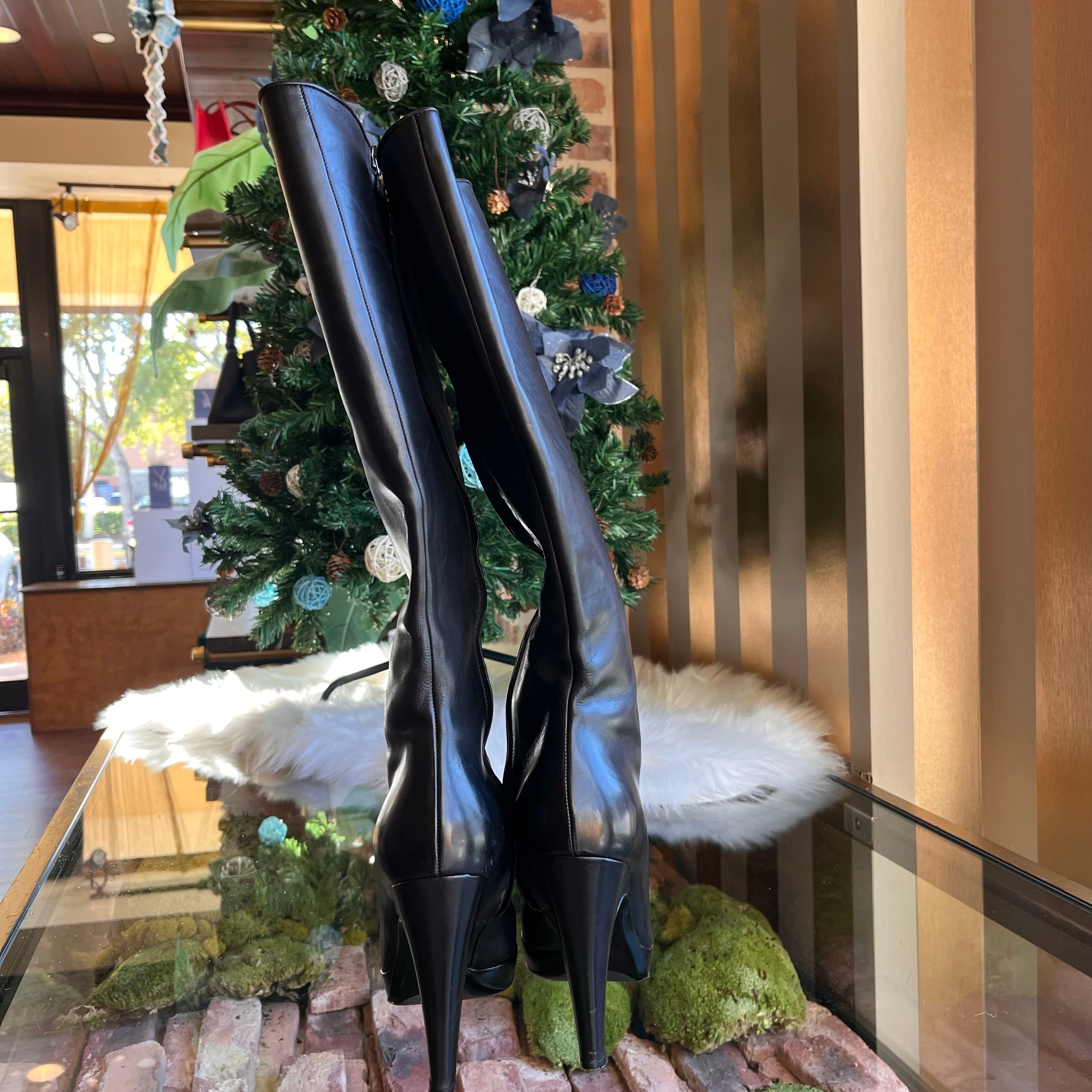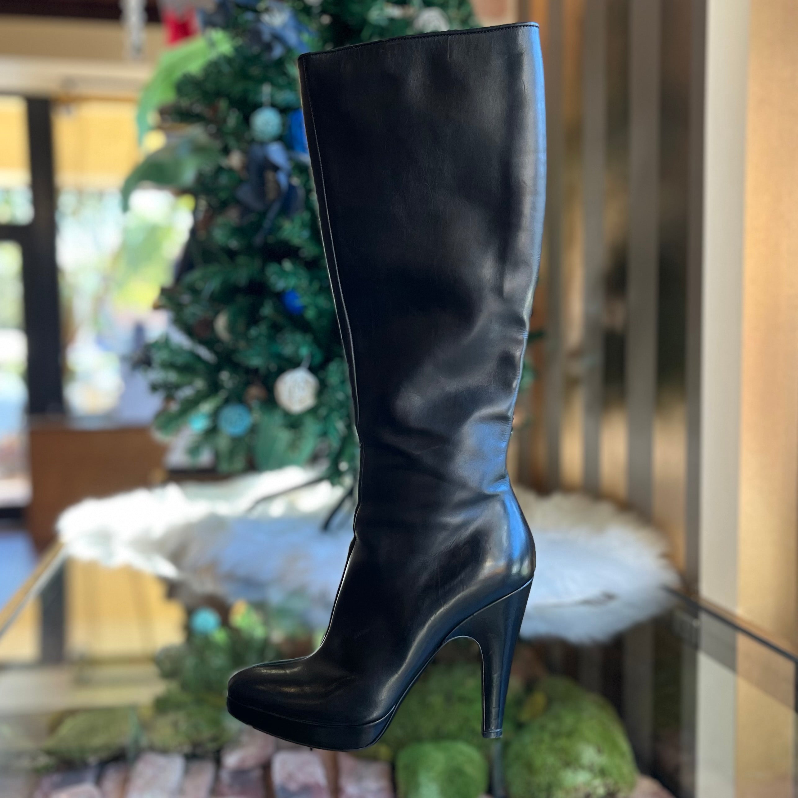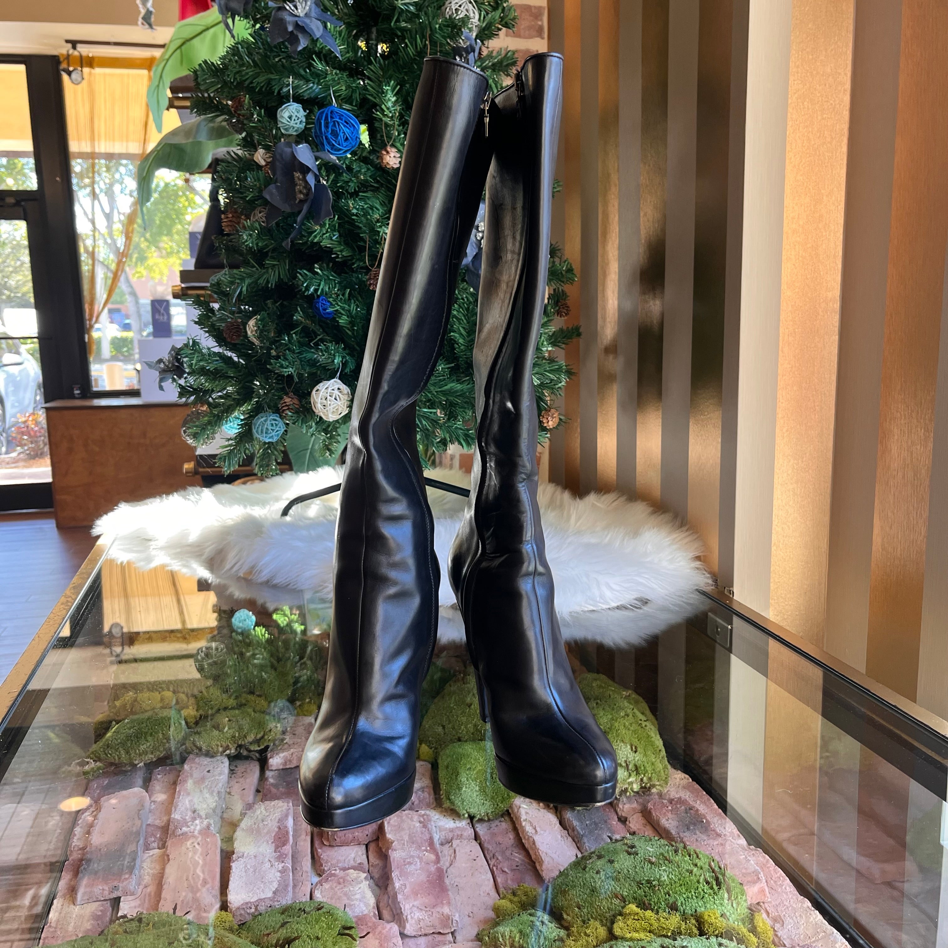 PRADA Black Leather High Boots SZ38(8US) Second-Hand Collections