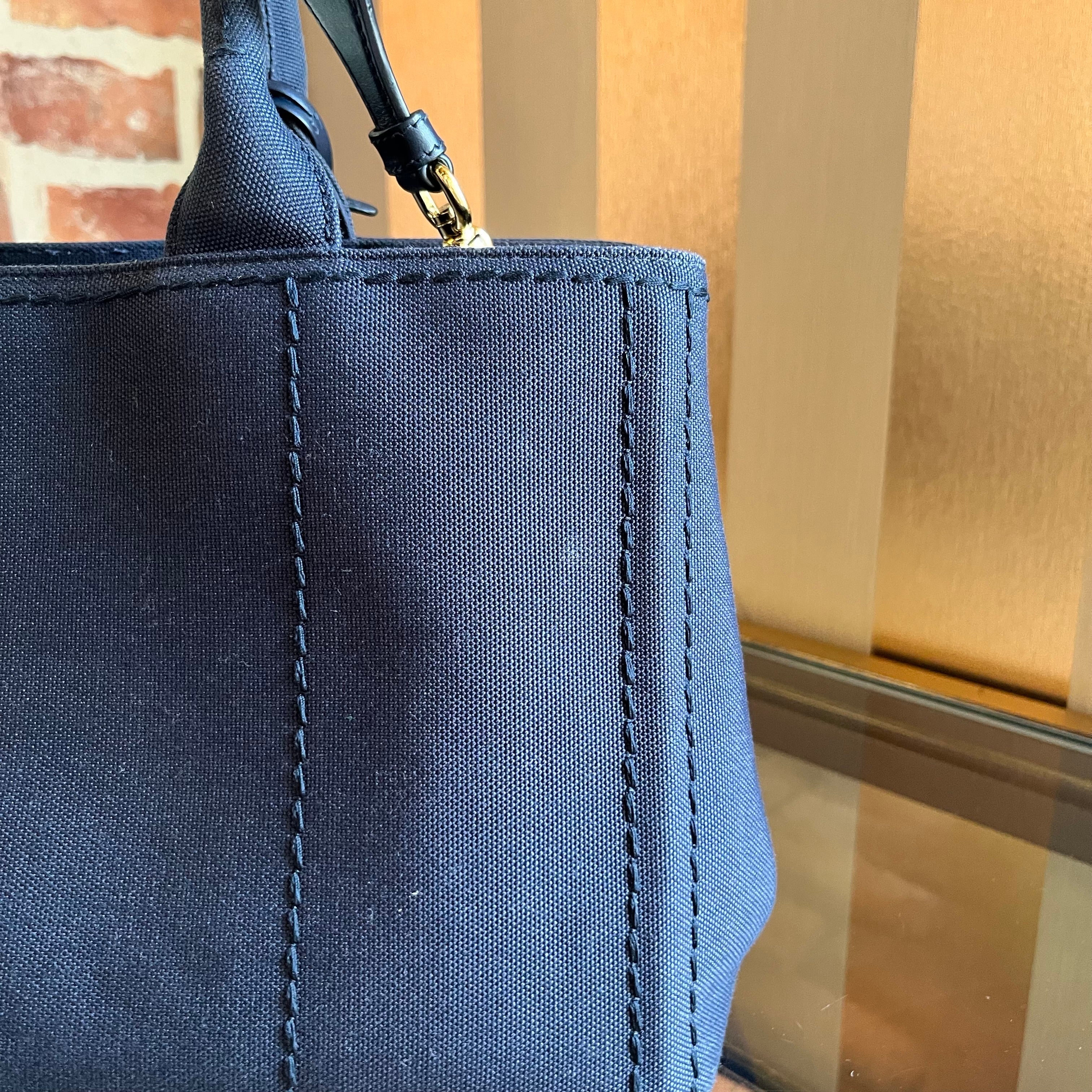 PRADA Jardinière Large Navy Blue Cotton Canvas Tote