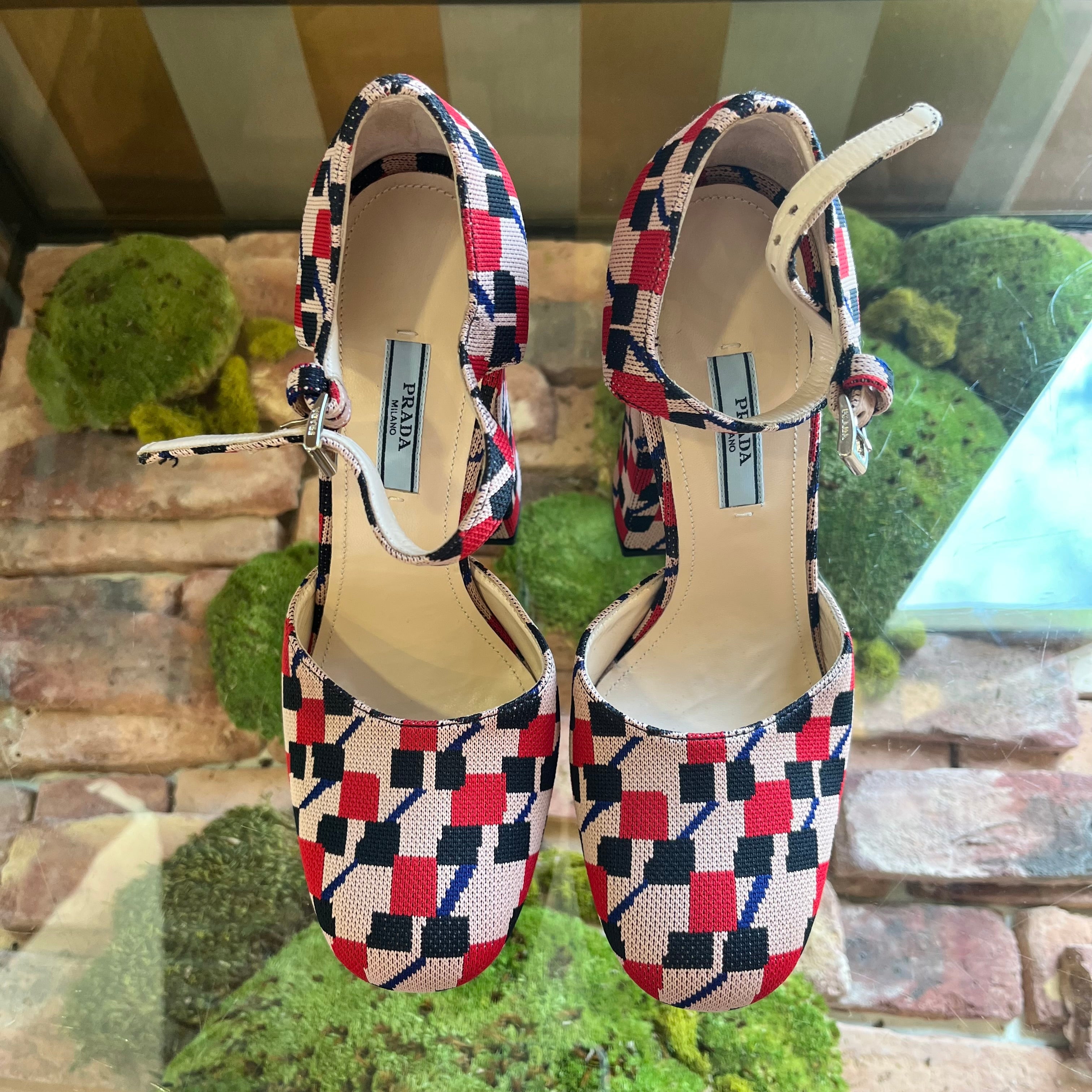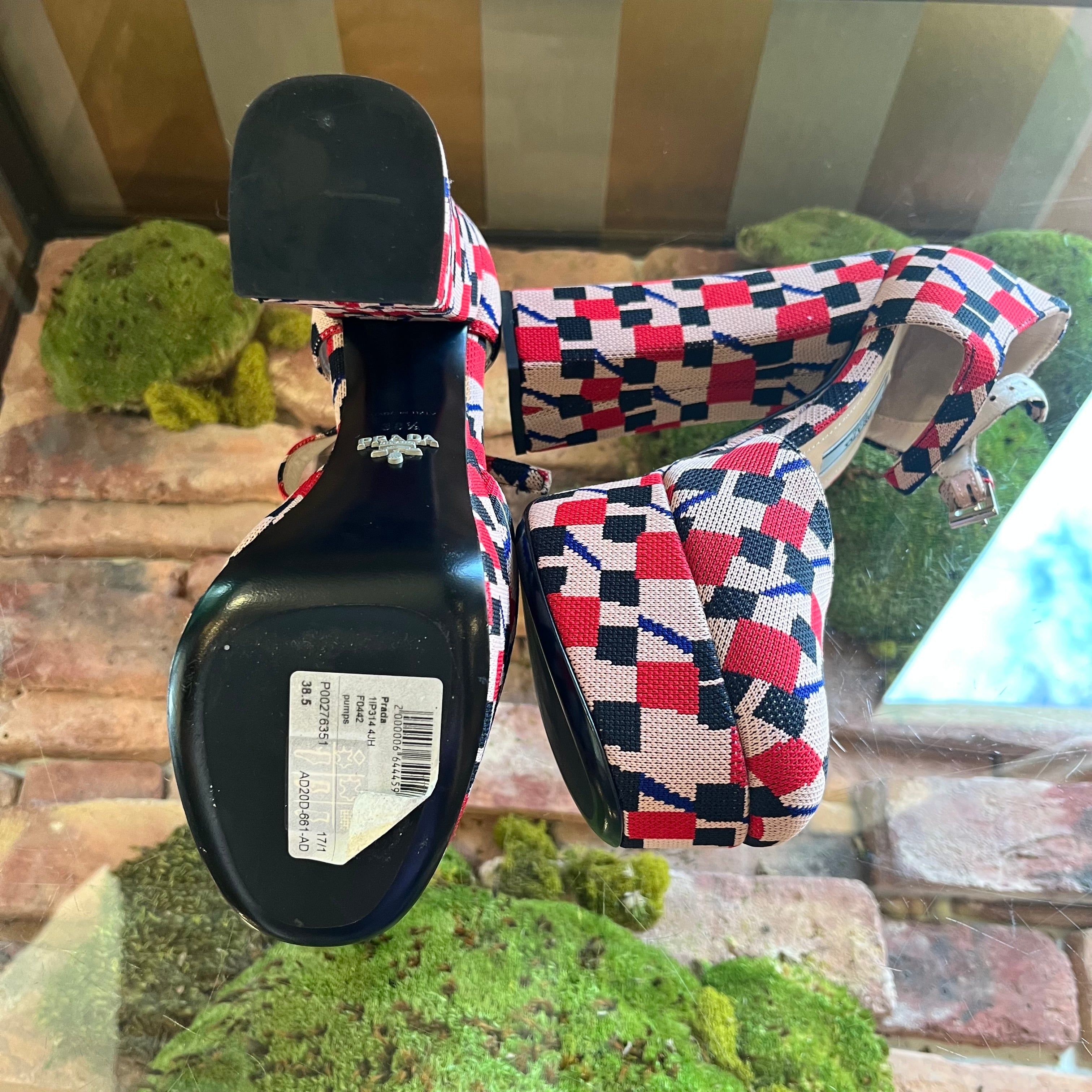 PRADA Geometric Pink Knit Platform Heels SZ 38.5 (8.5 US)