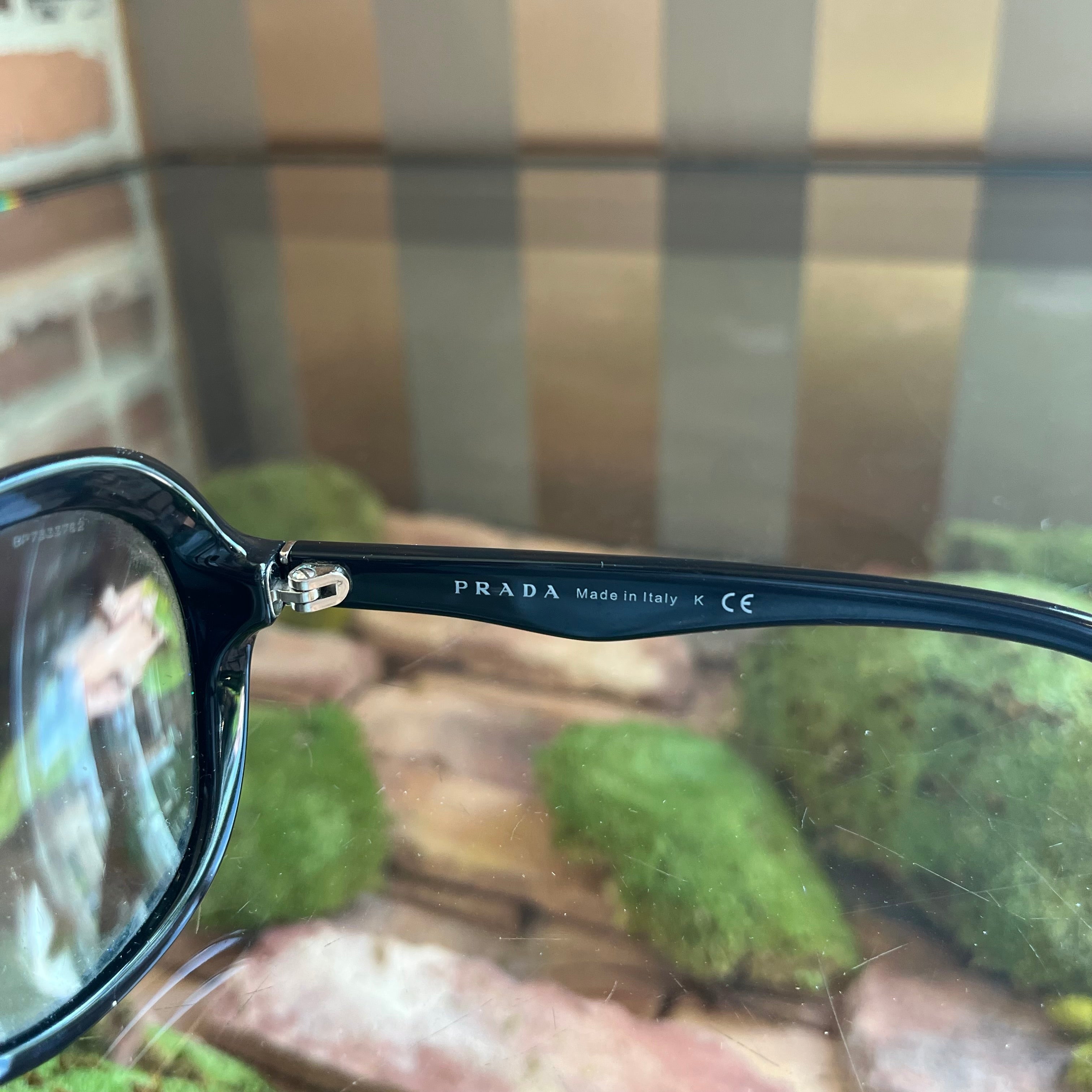 - Features subtle Prada logo on the wide temples