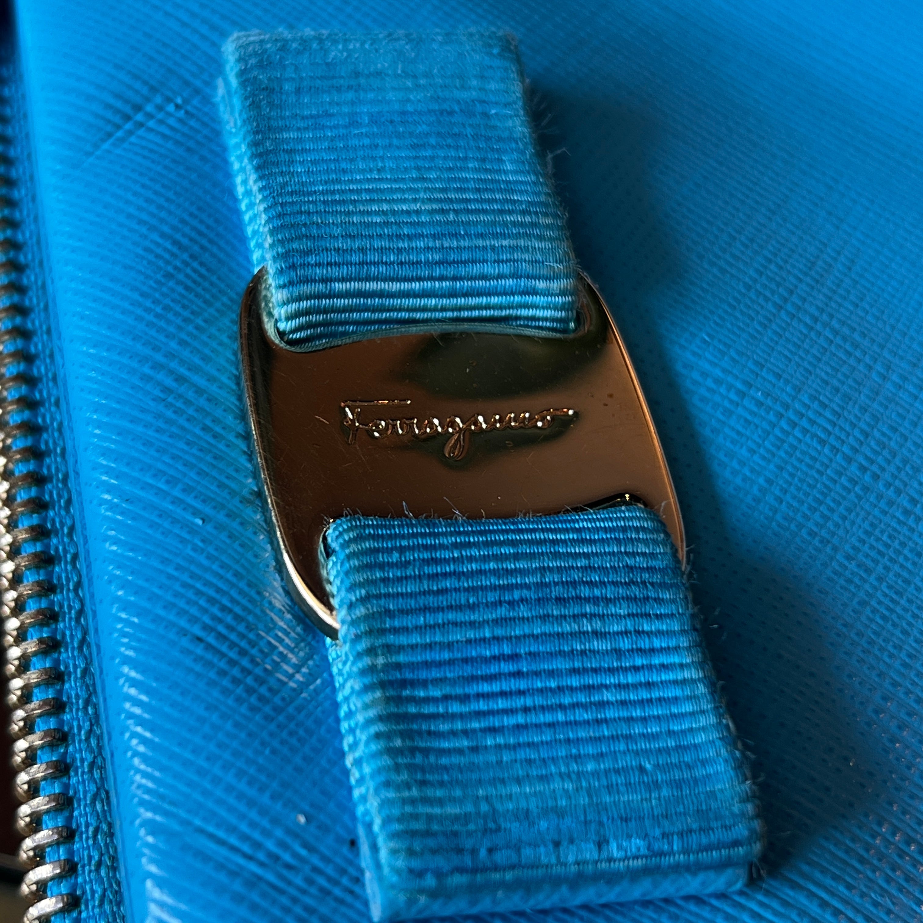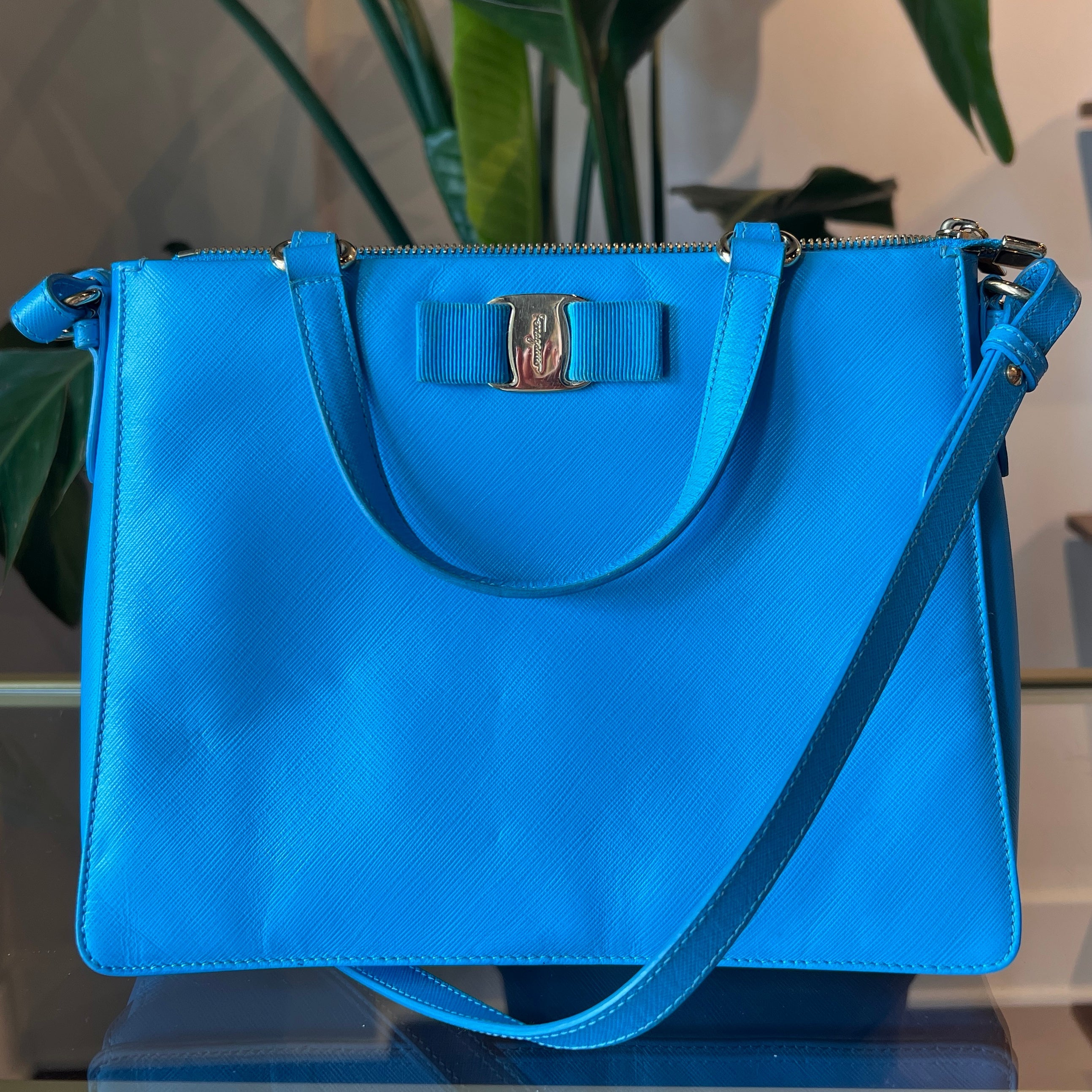 SALVATORE FERRAGAMO Vara Tracy Blue Satchel Shoulder Bag