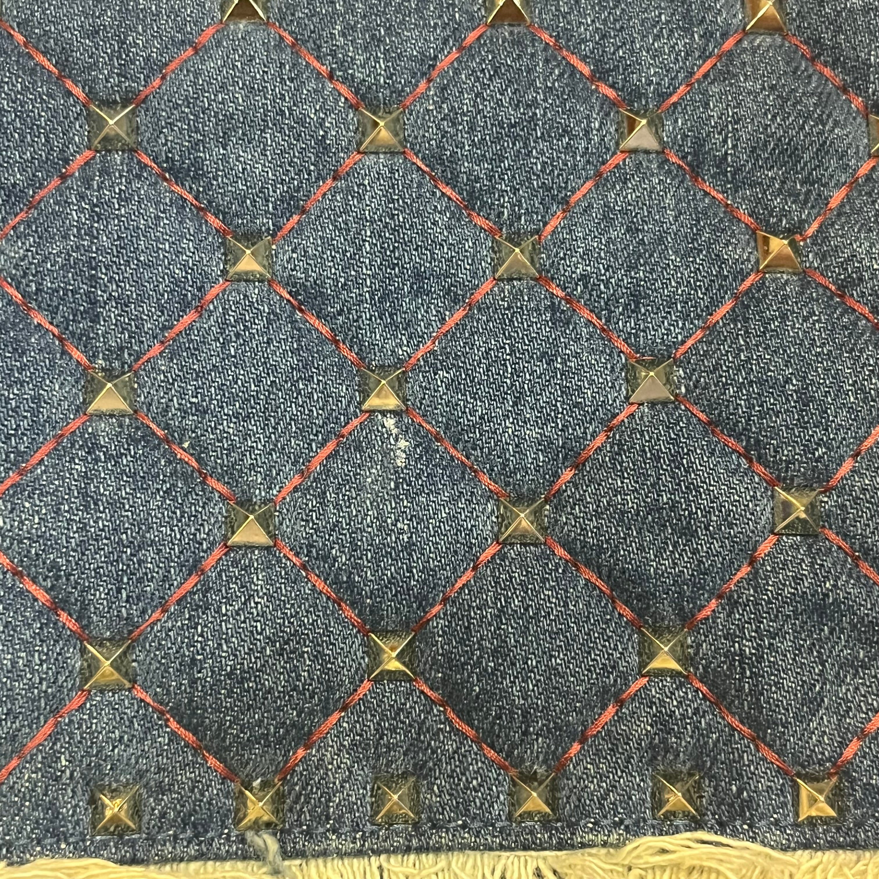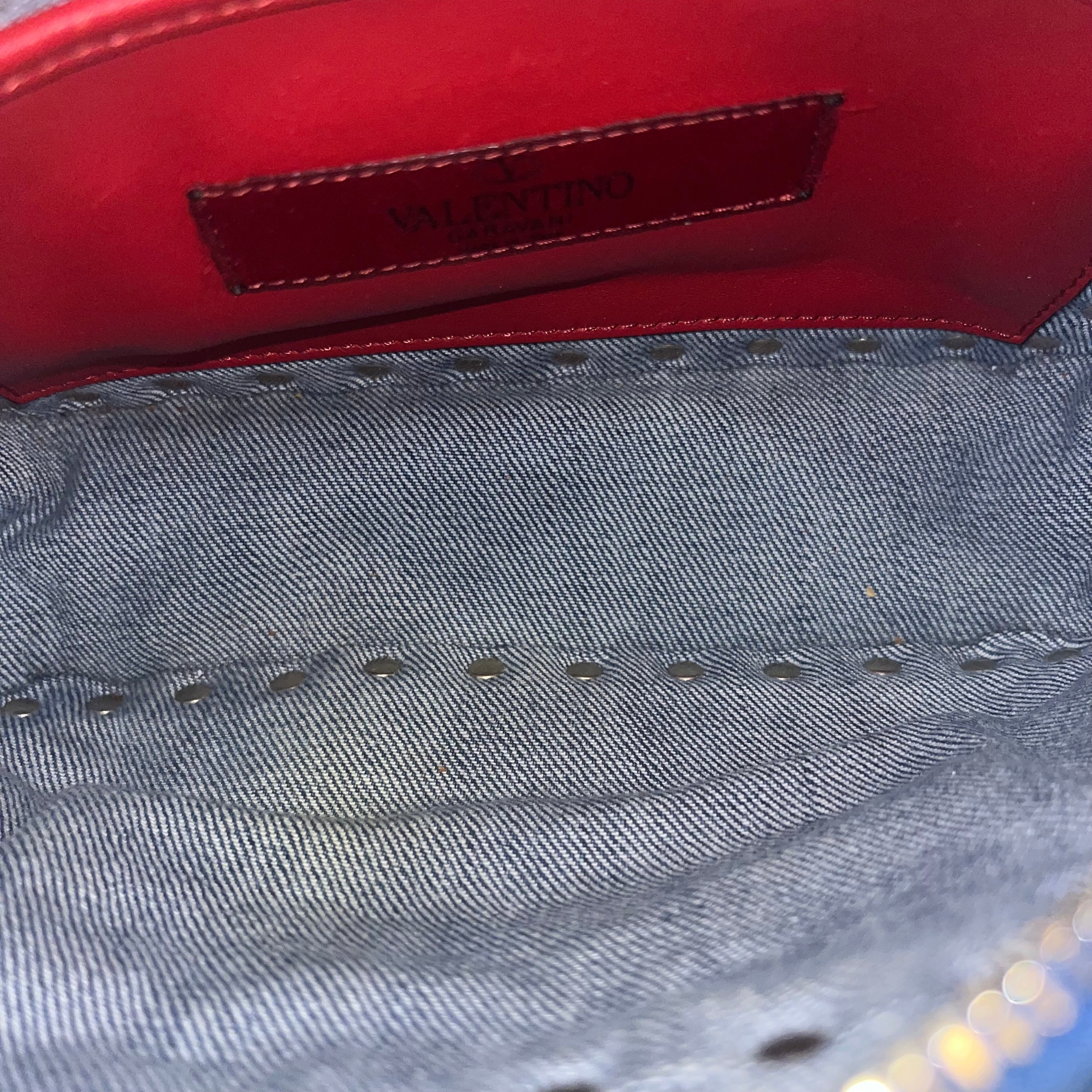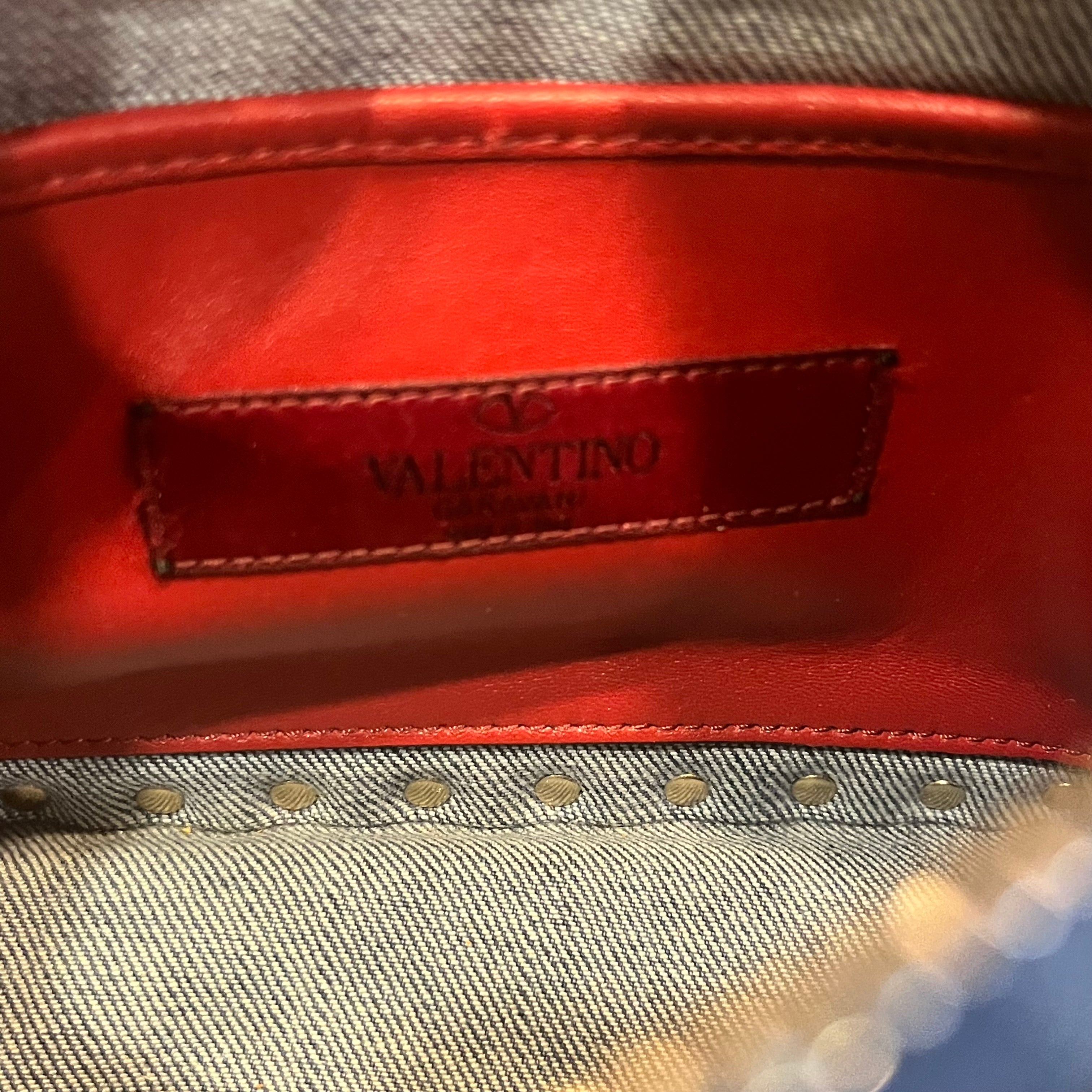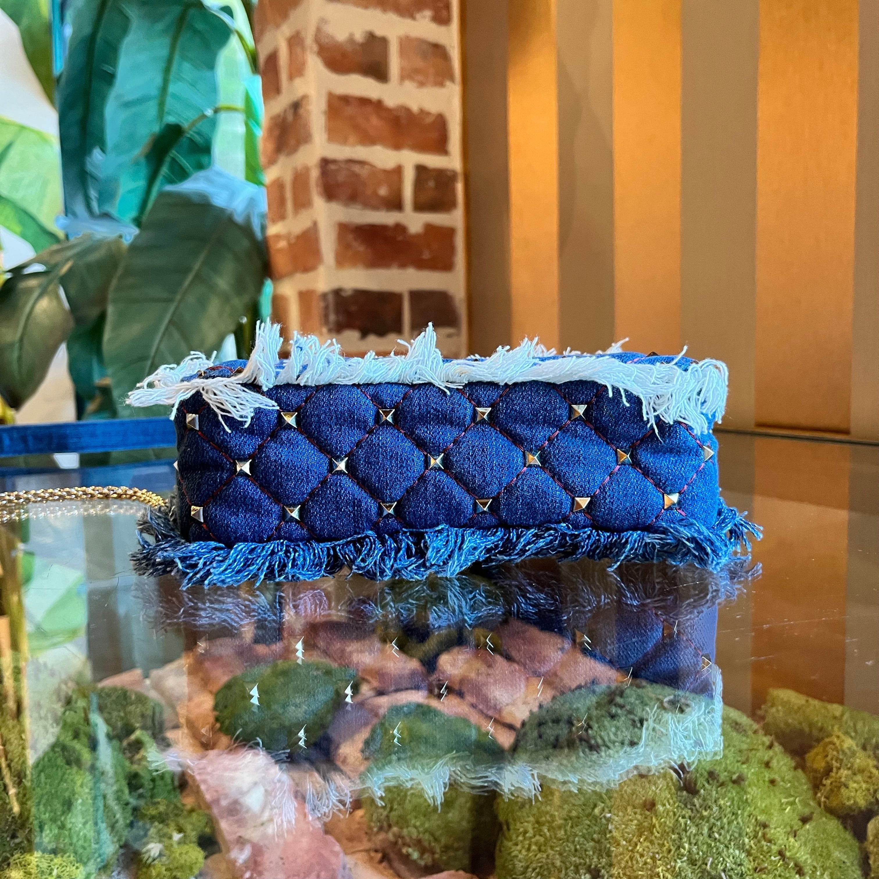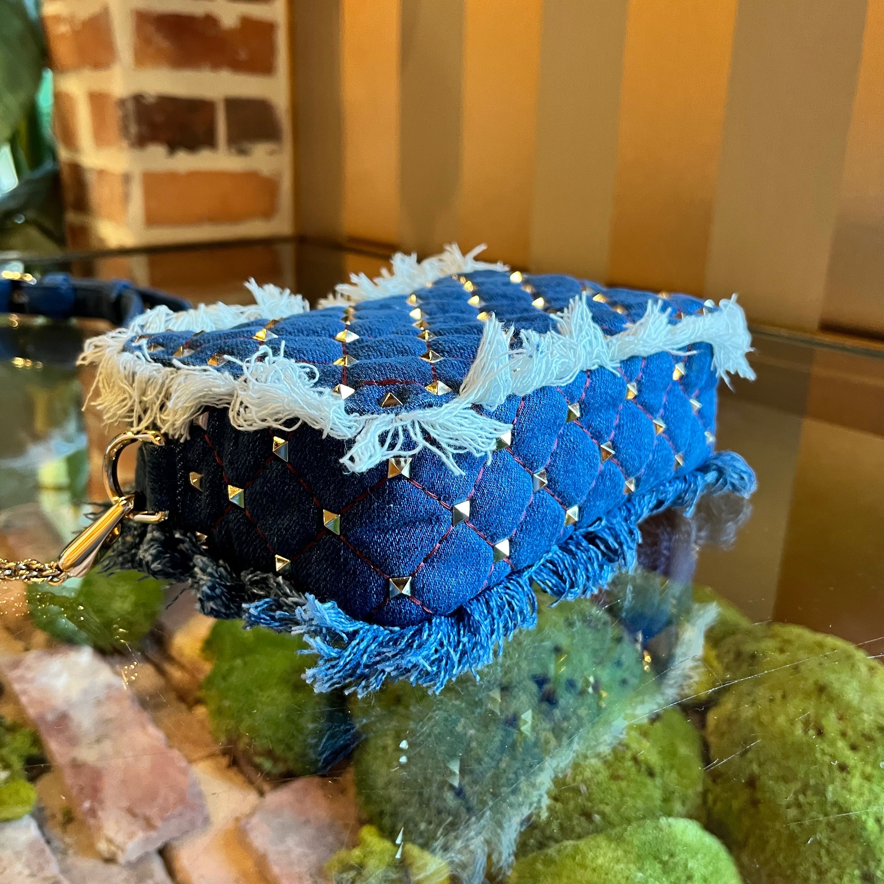 VALENTINO Rockstud Spike Crossbody Blue Denim Fringe Crossbody Bag