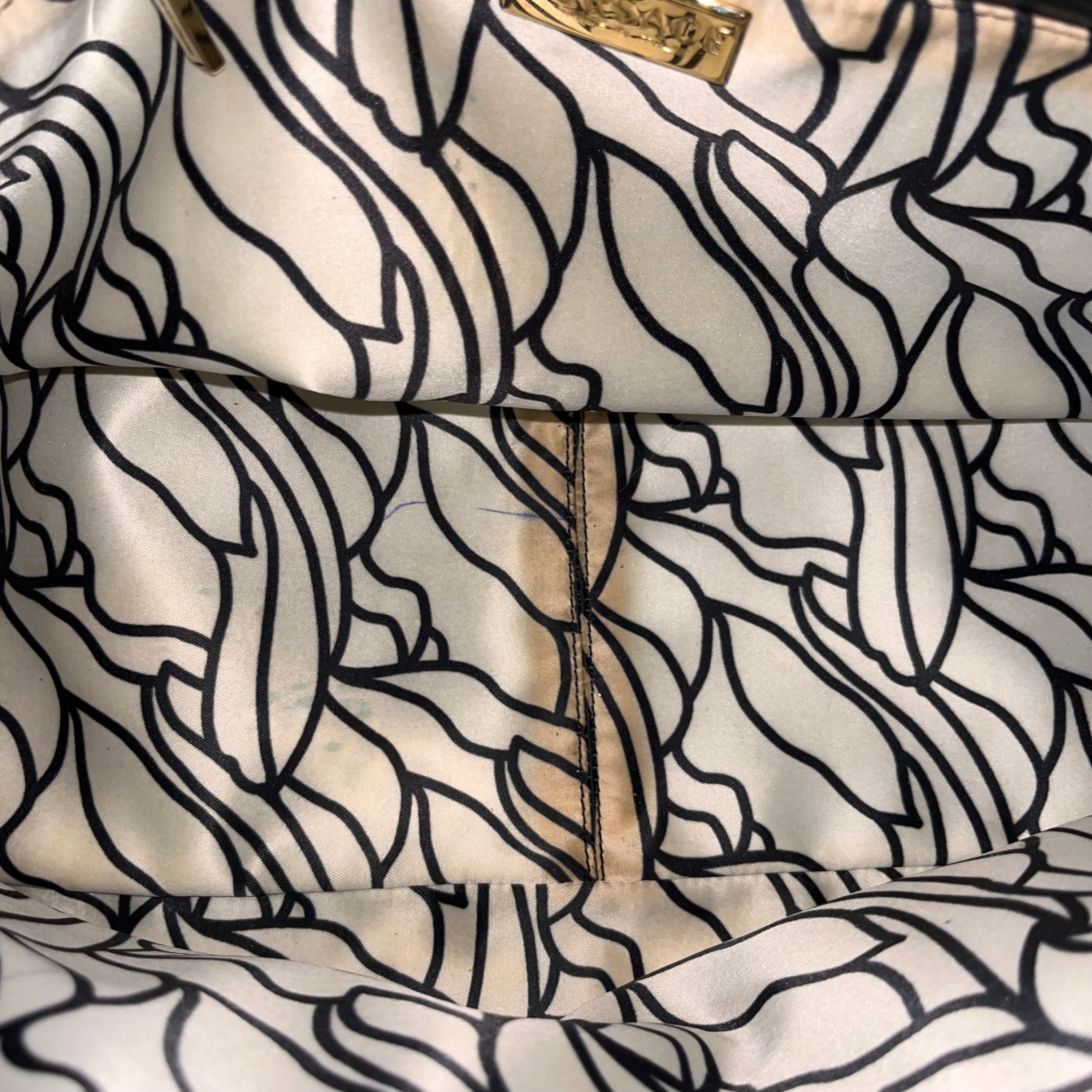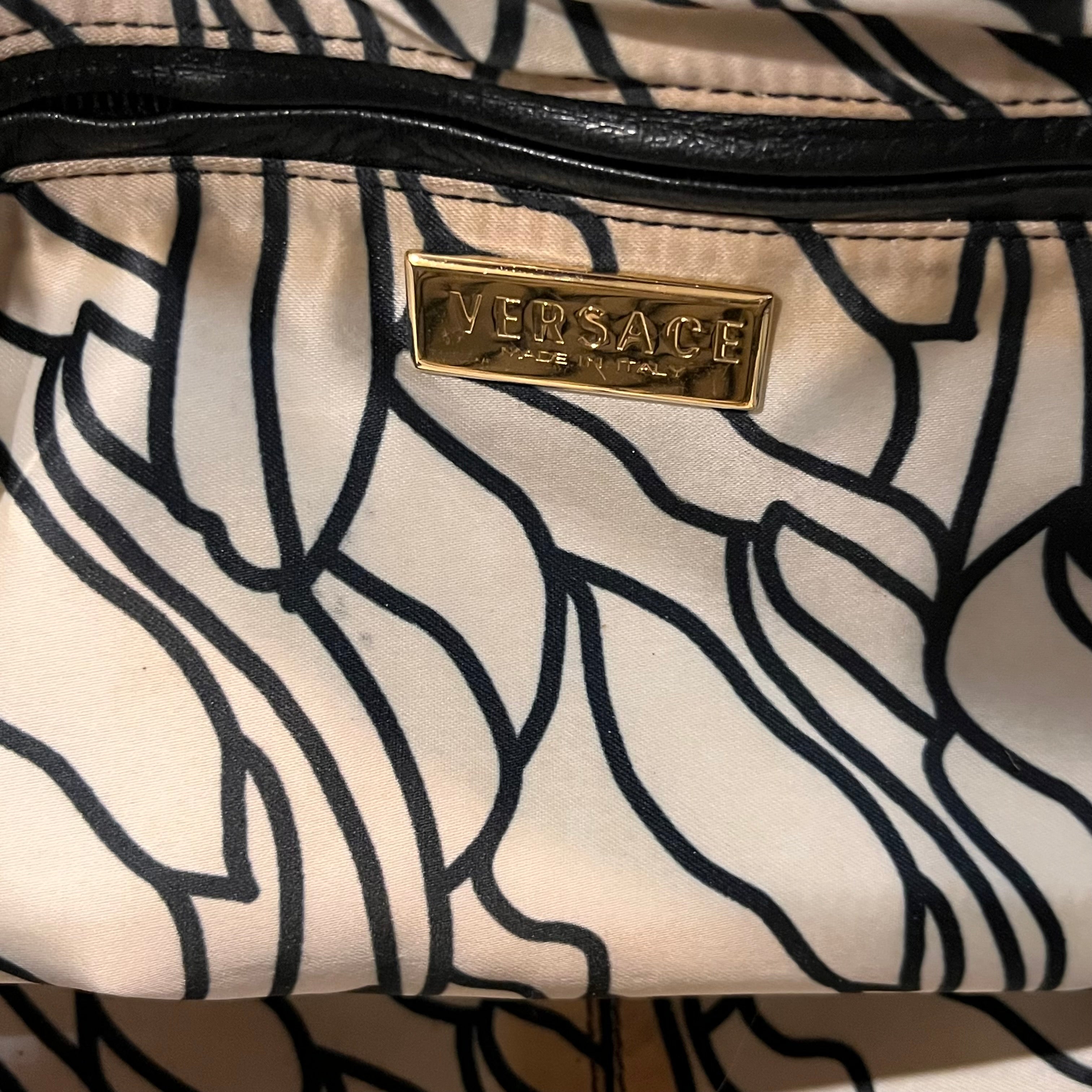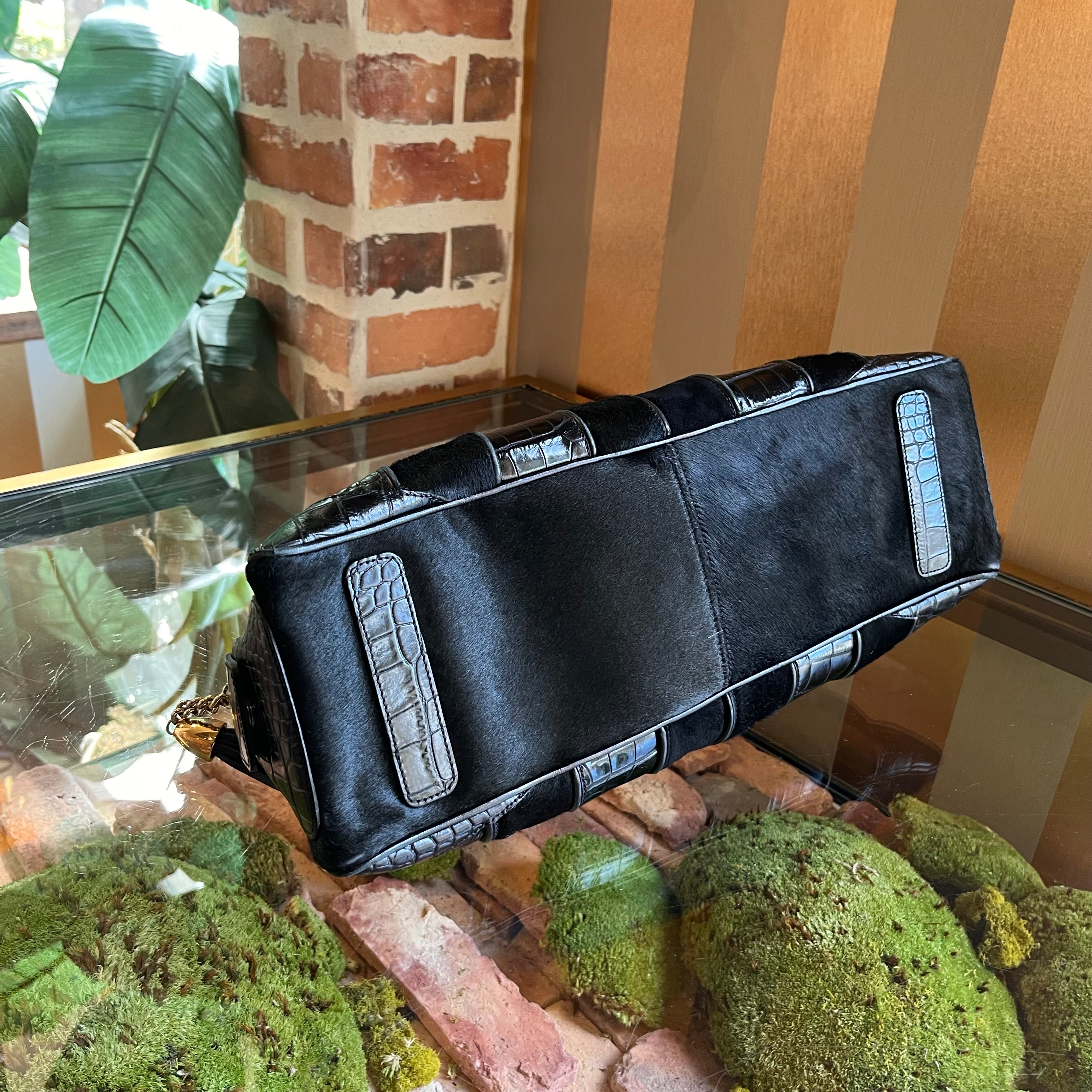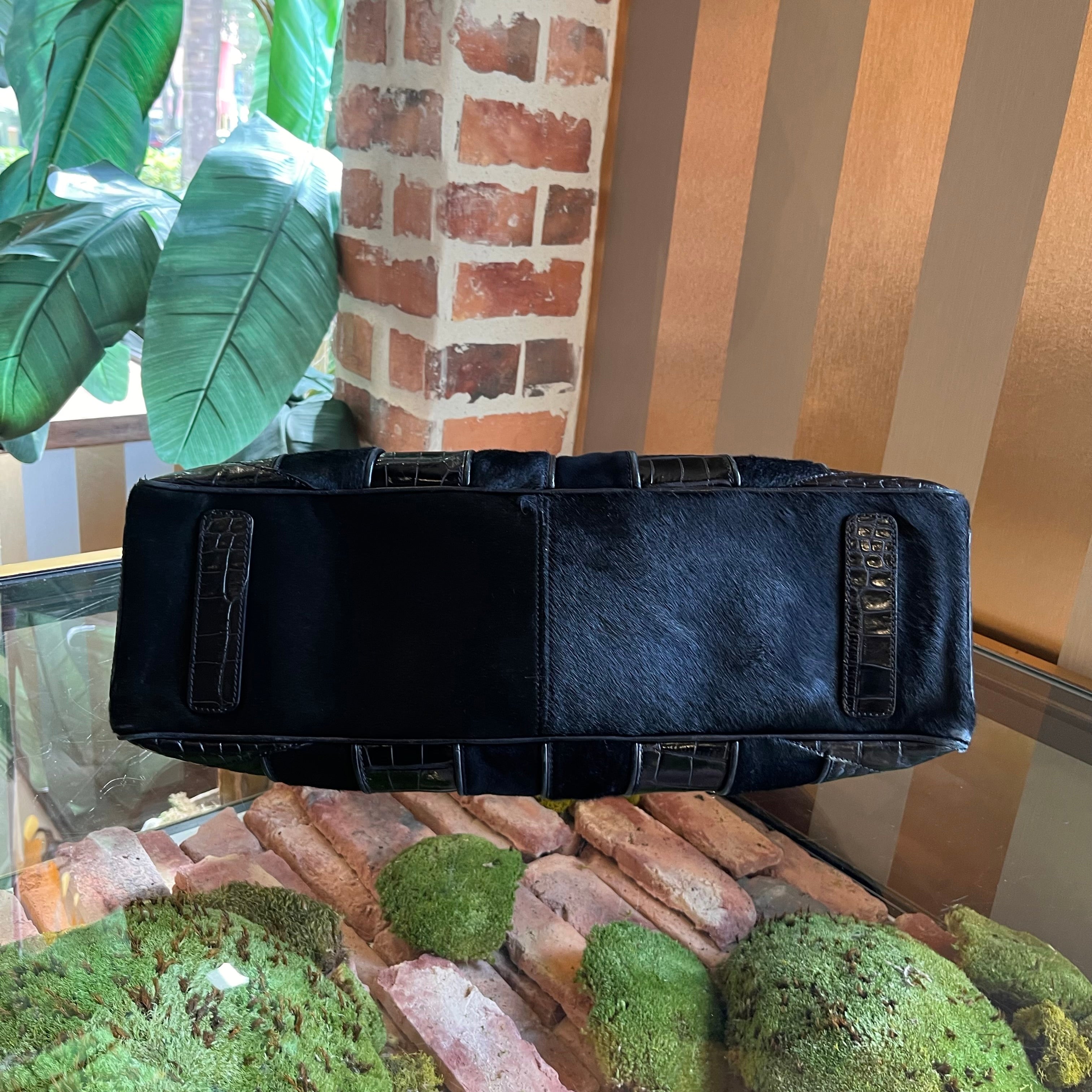VERSACE Black Pony Hair Croc Embossed Suede Leather Dome Satchel