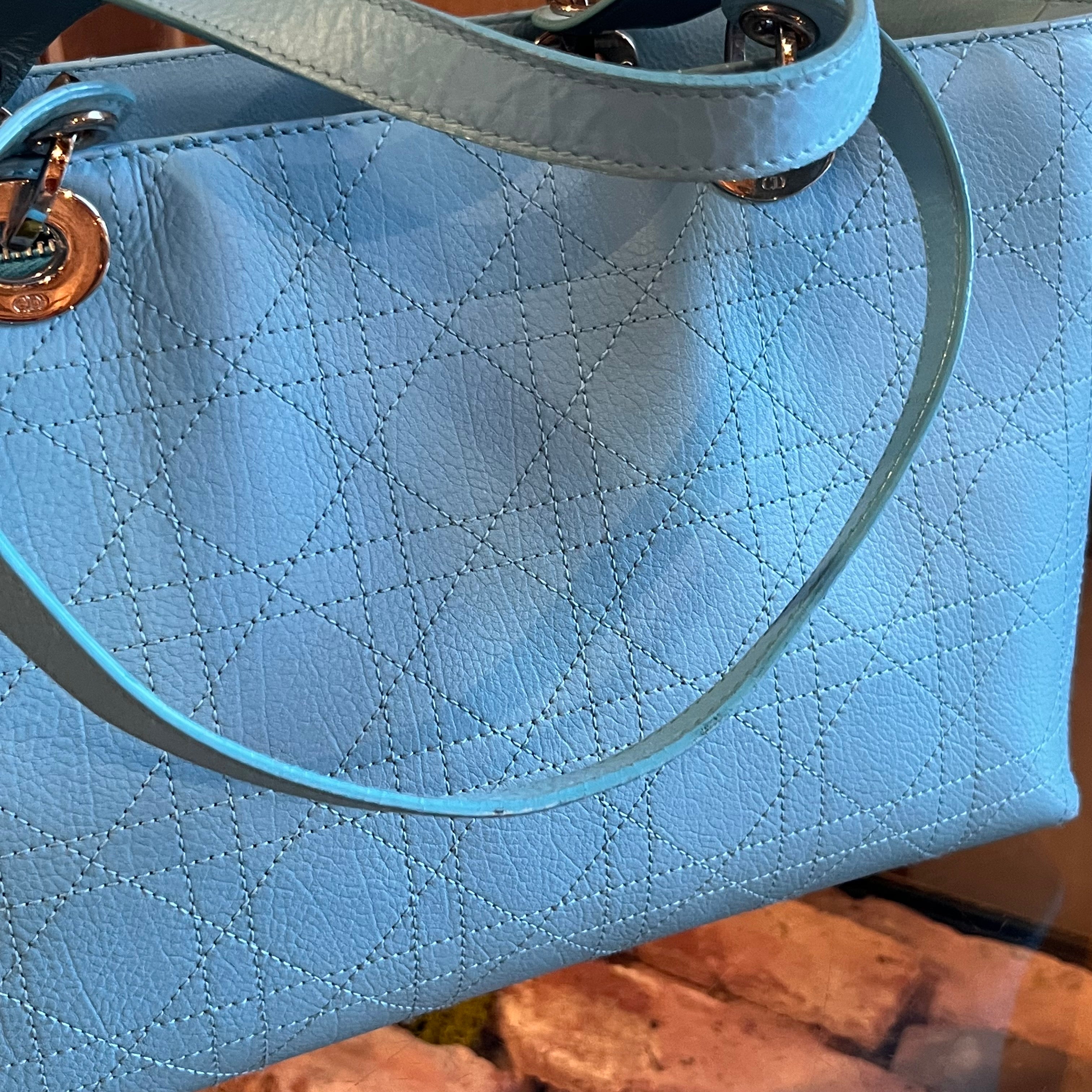 CHRISTIAN DIOR Medium Light Blue Cannage Vintage Tote