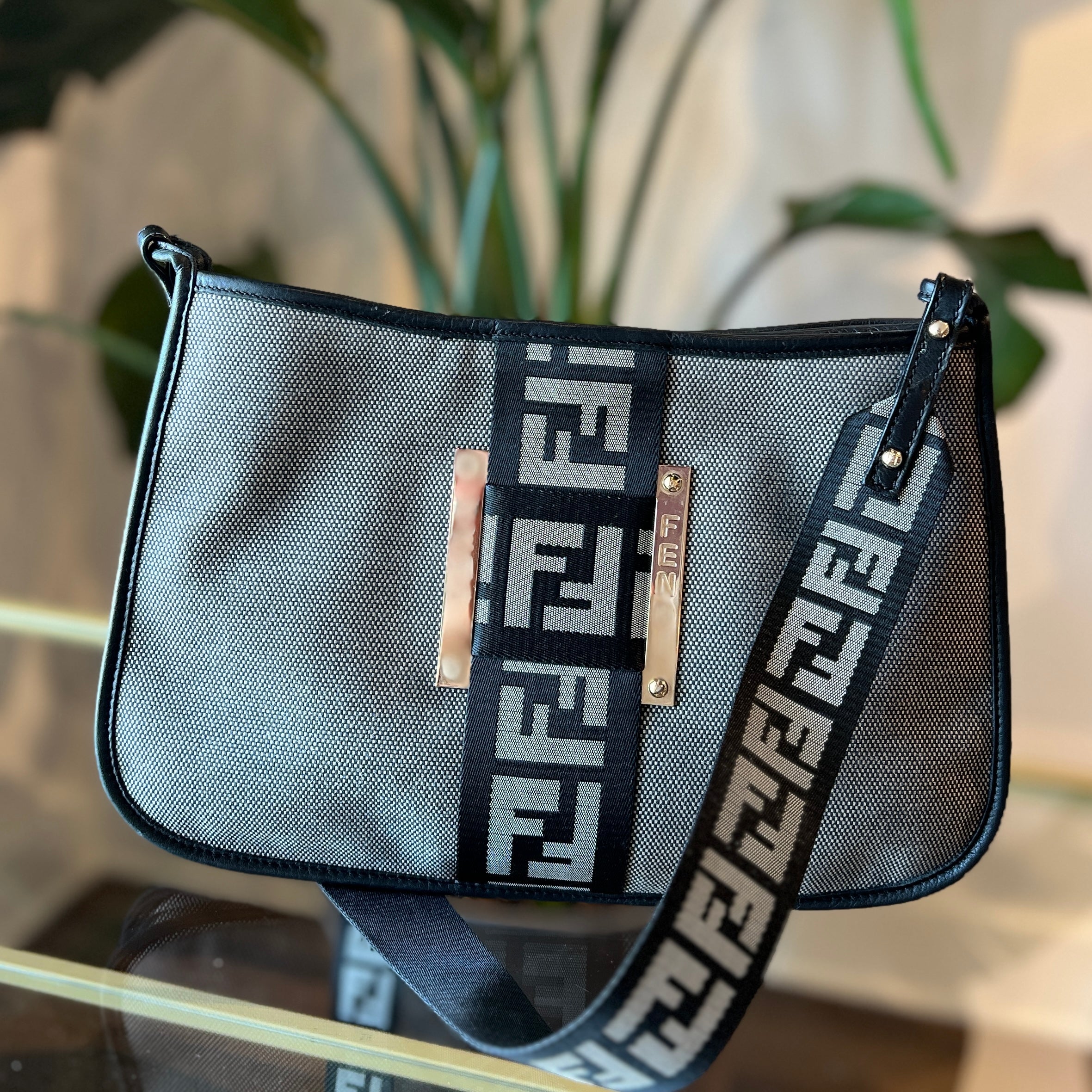 - Strap: Adjustable wide FF logo web strap with buckle detail for shoulder or crossbody wear