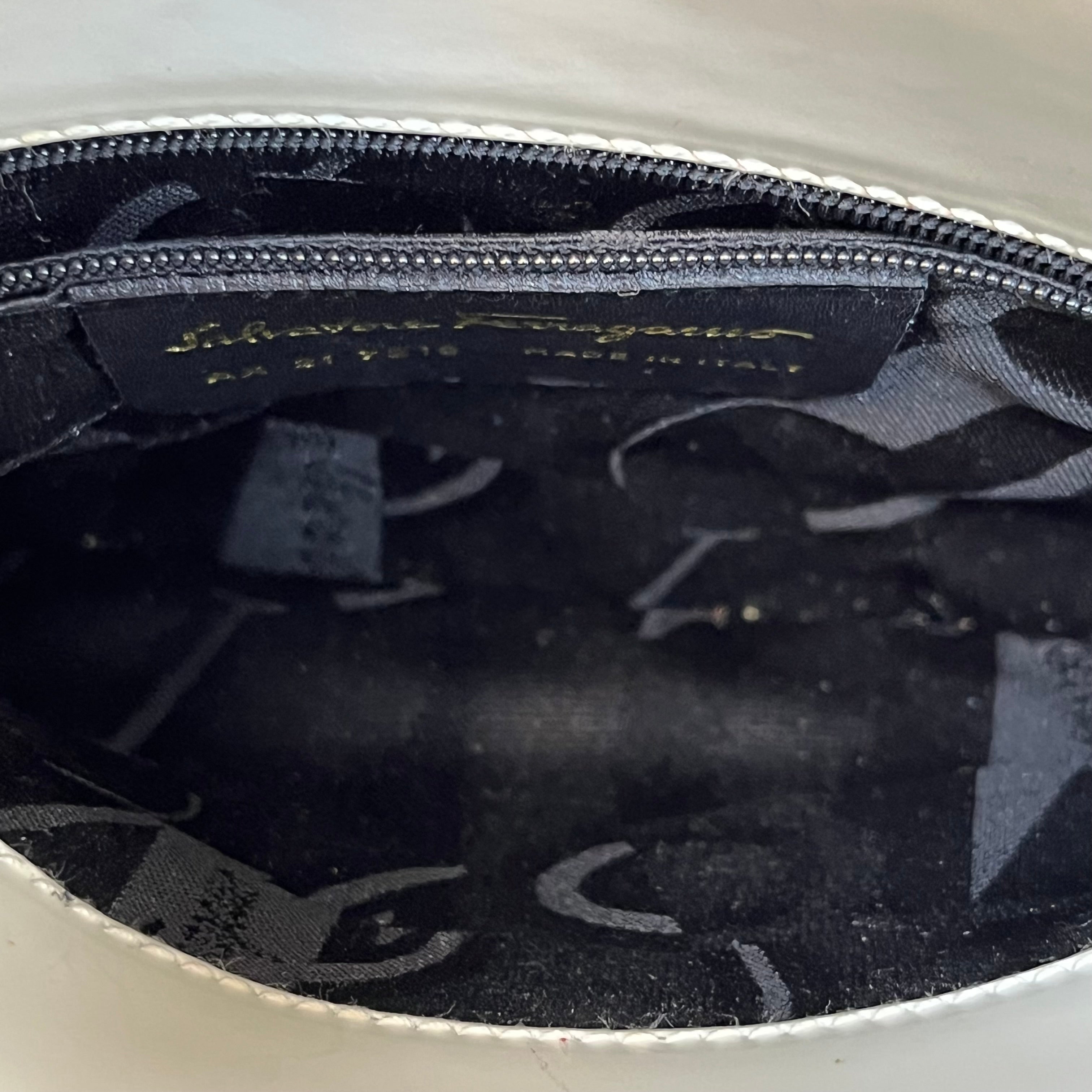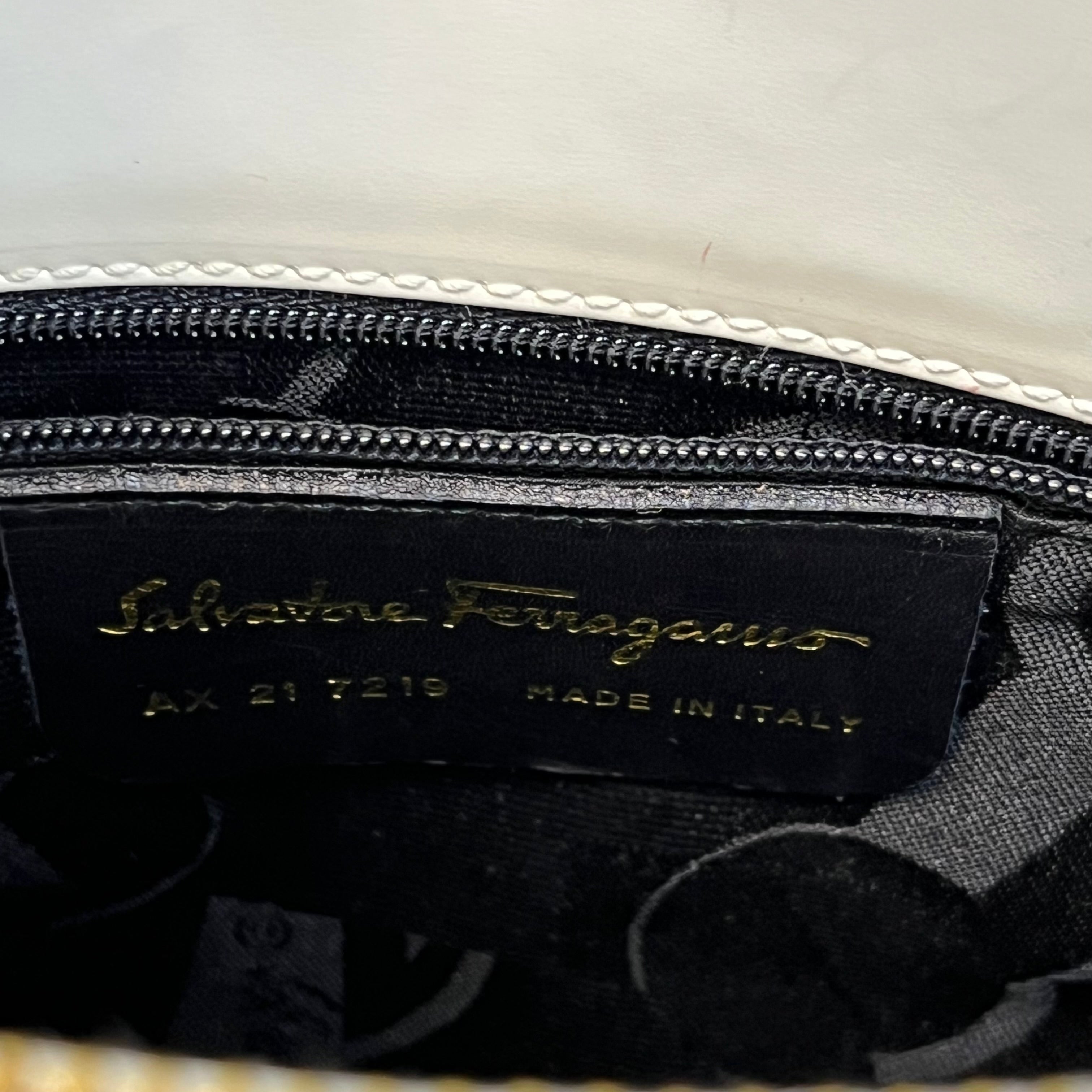 - Interior: The textile interior lining is clean and well-maintained, offering a fresh and vibrant backdrop. The white leather trim, however, displays subtle hardware marks, a small crack (please refer to photos), light scratches, and pen marks—details that add a touch of character and history. Despite these signs of use, the piece remains fully functional and stylish, maintaining its timeless appeal.