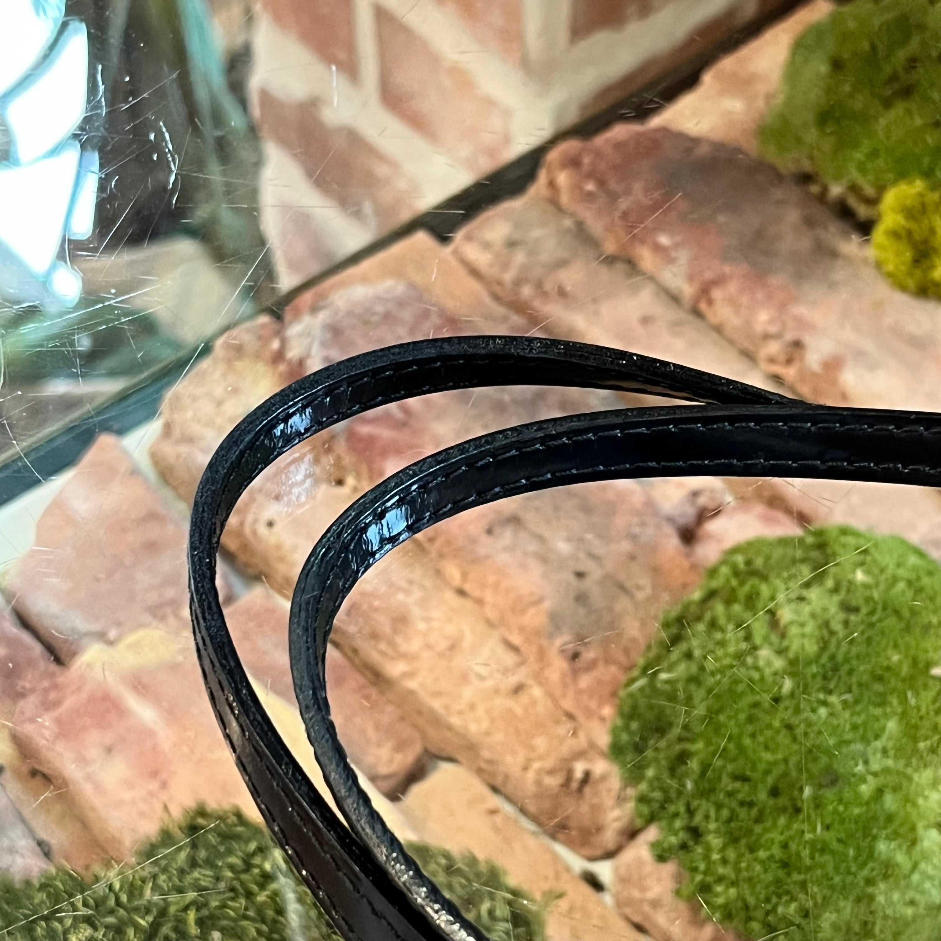 - Handle: The patent leather straps show subtle variations in sheen, light rubbing, gentle wear along the glazing, and faint surface scratches—all consistent with careful use.