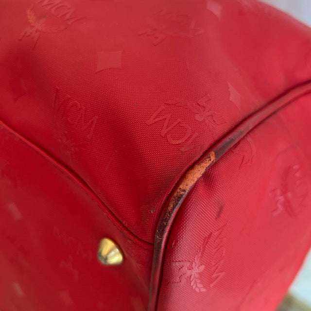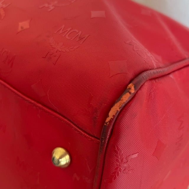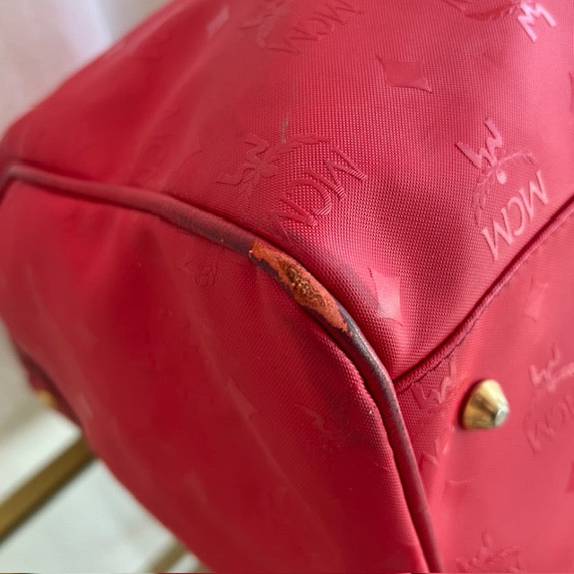 - Exterior: Corners are moderately scuffed as well as on of the strap hooks is missing however the color is vibrant.