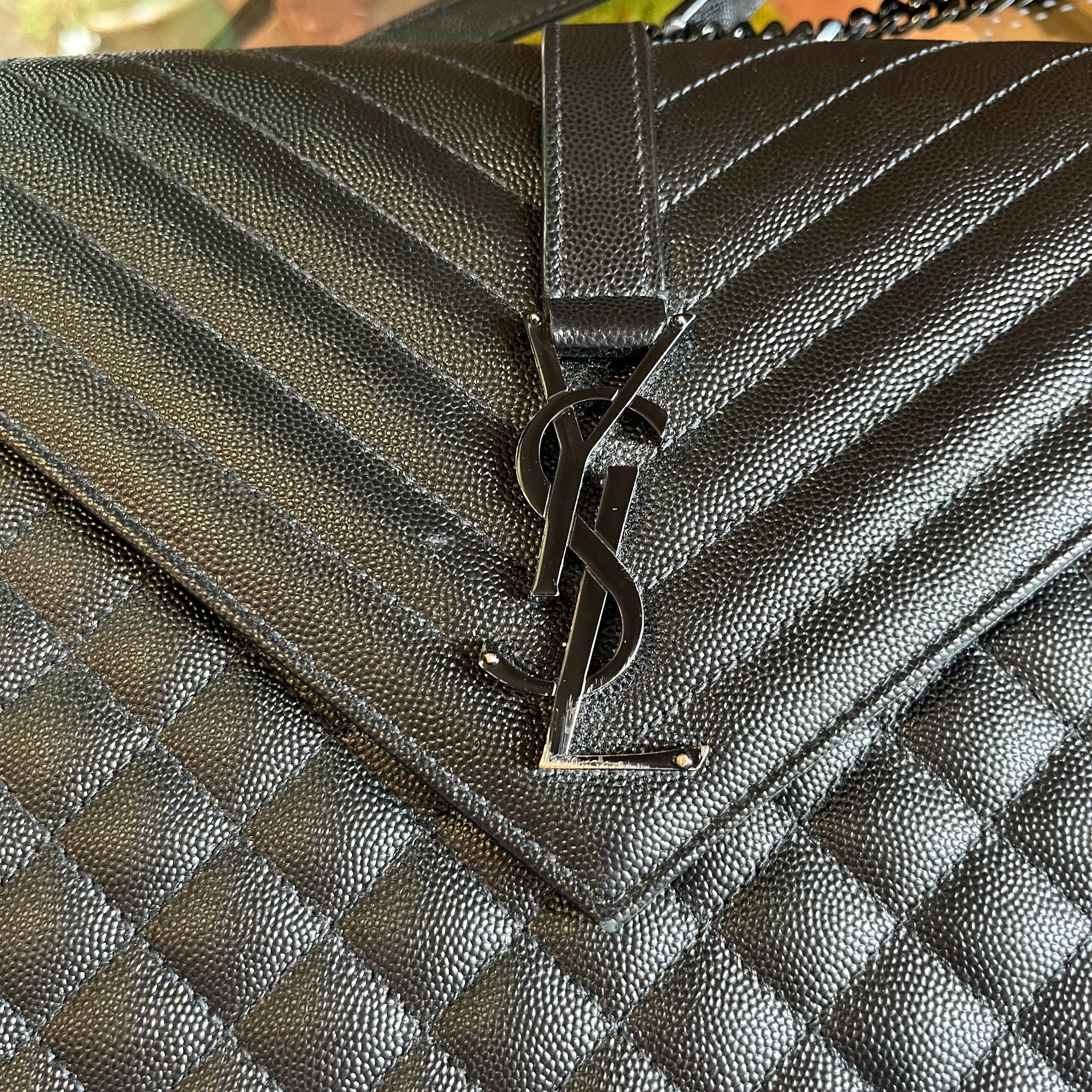 SAINT LAURENT Large Black On Black Triquilt Shoulder Bag