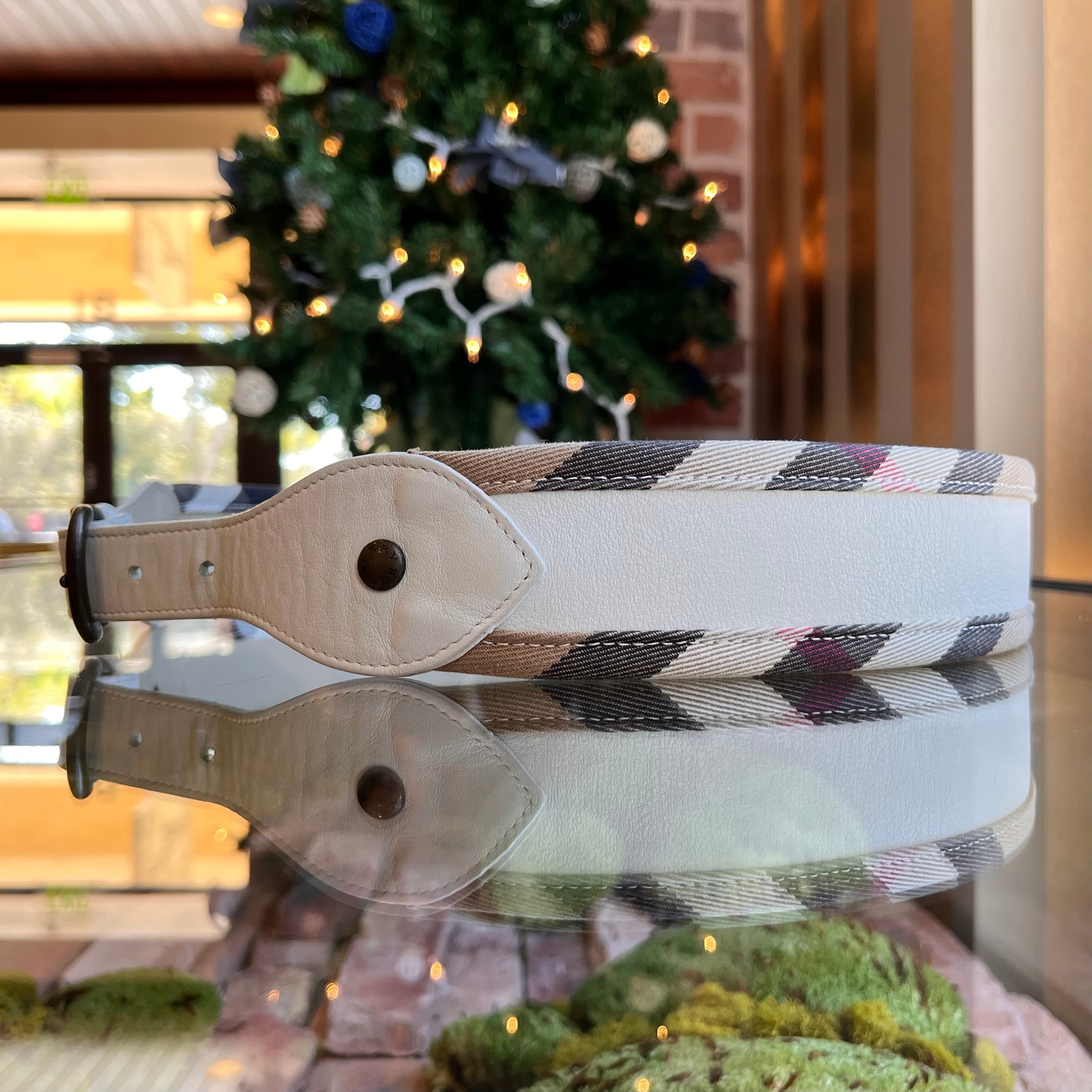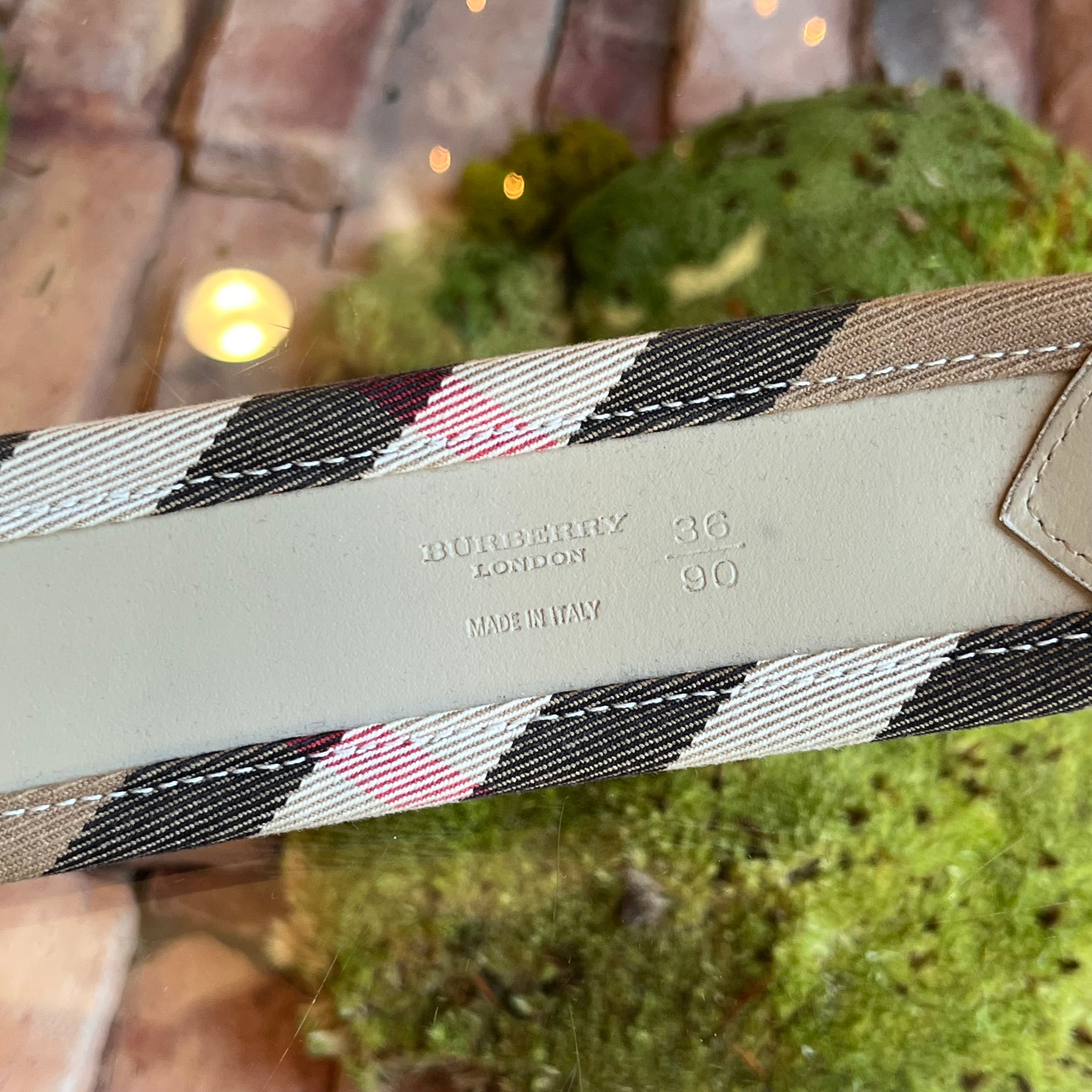 BURBERRY Beige White Check Canvas Leather Belt SZ36/90(M)