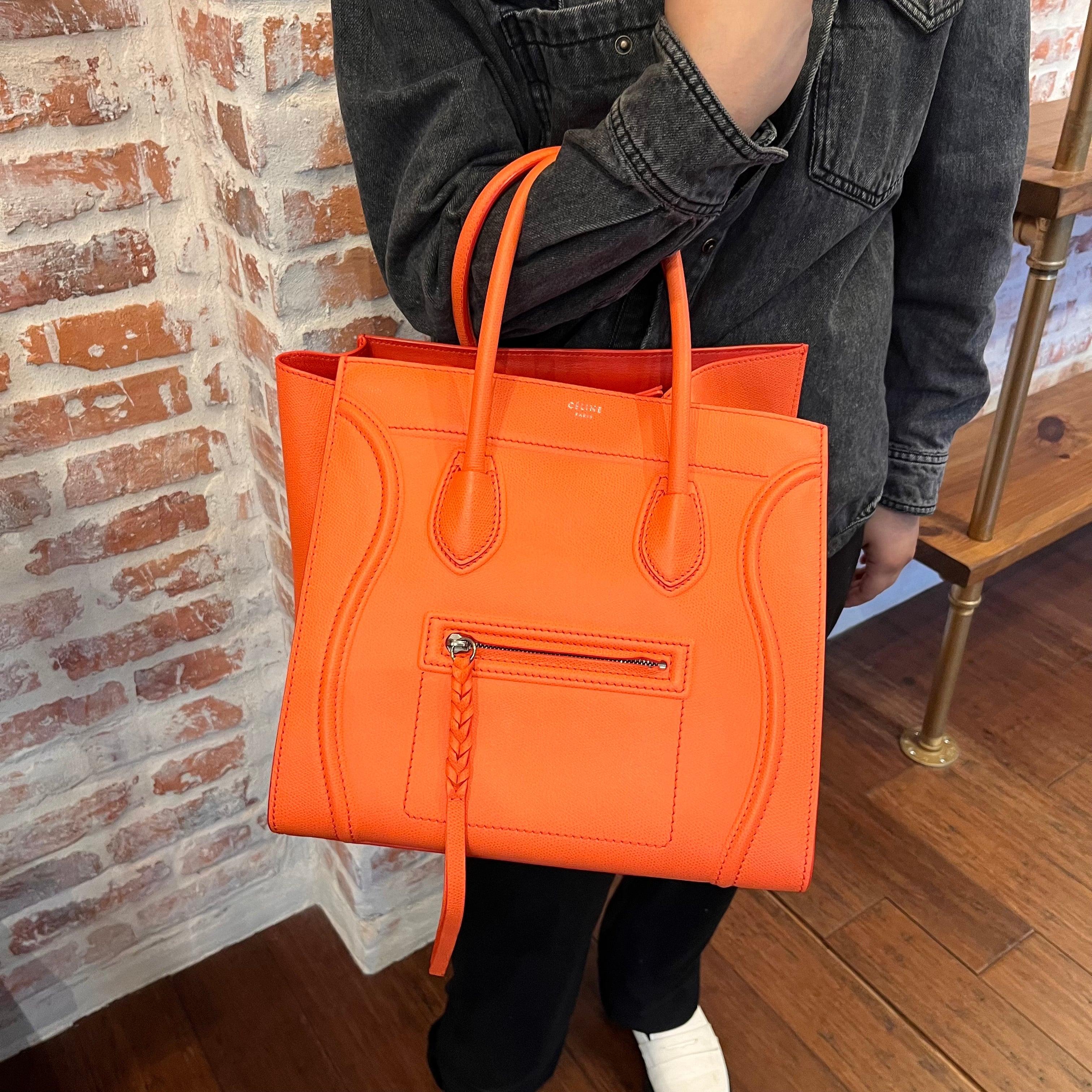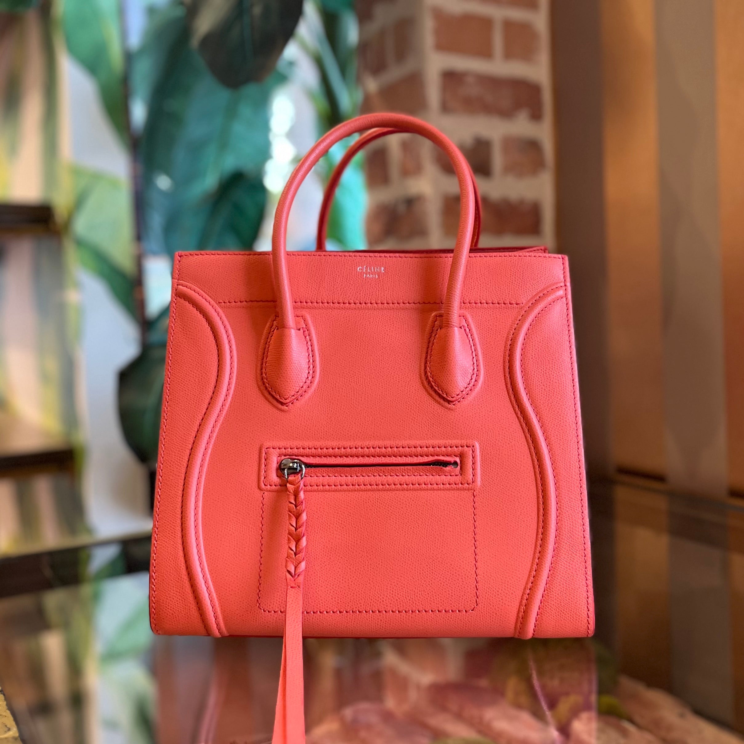 CELINE Luggage Medium Coral Calfskin Tote Second-Hand Collections