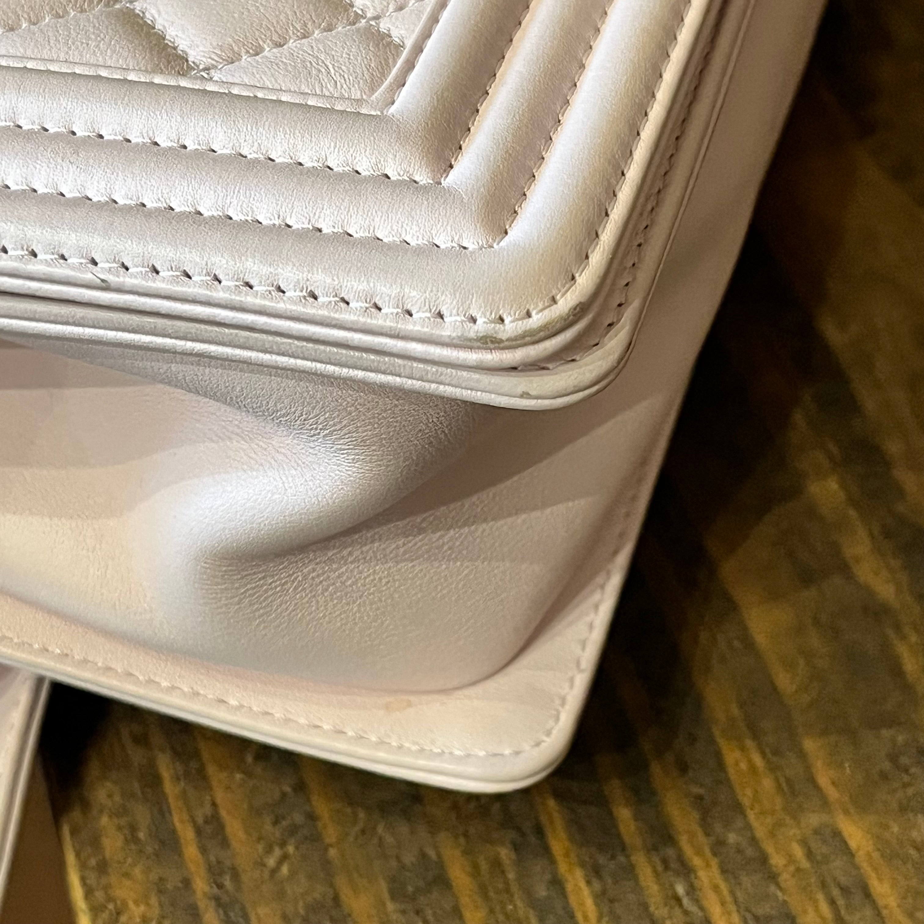 CHANEL Boy Bag Old Medium Baby Pink Calfskin Shoulder Bag