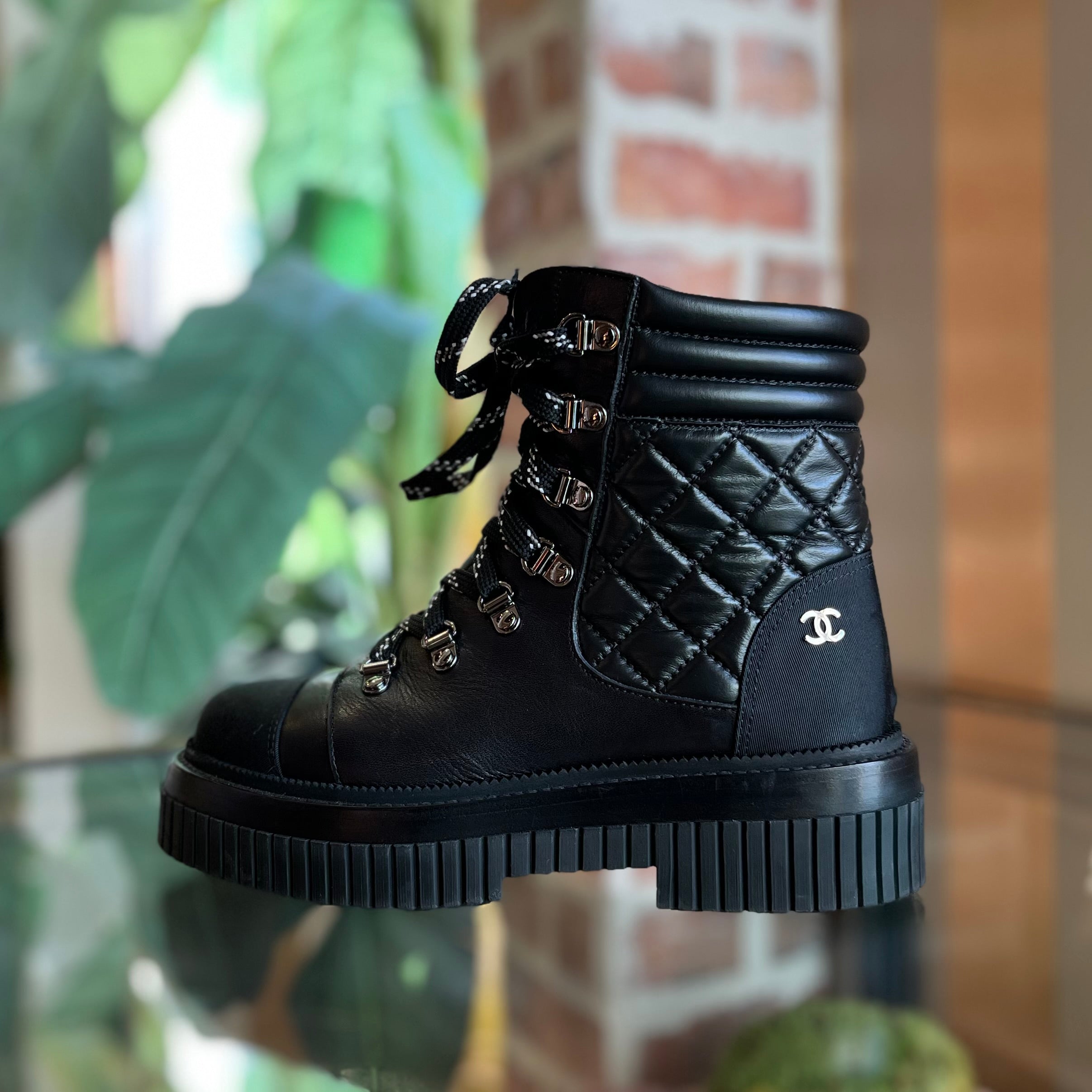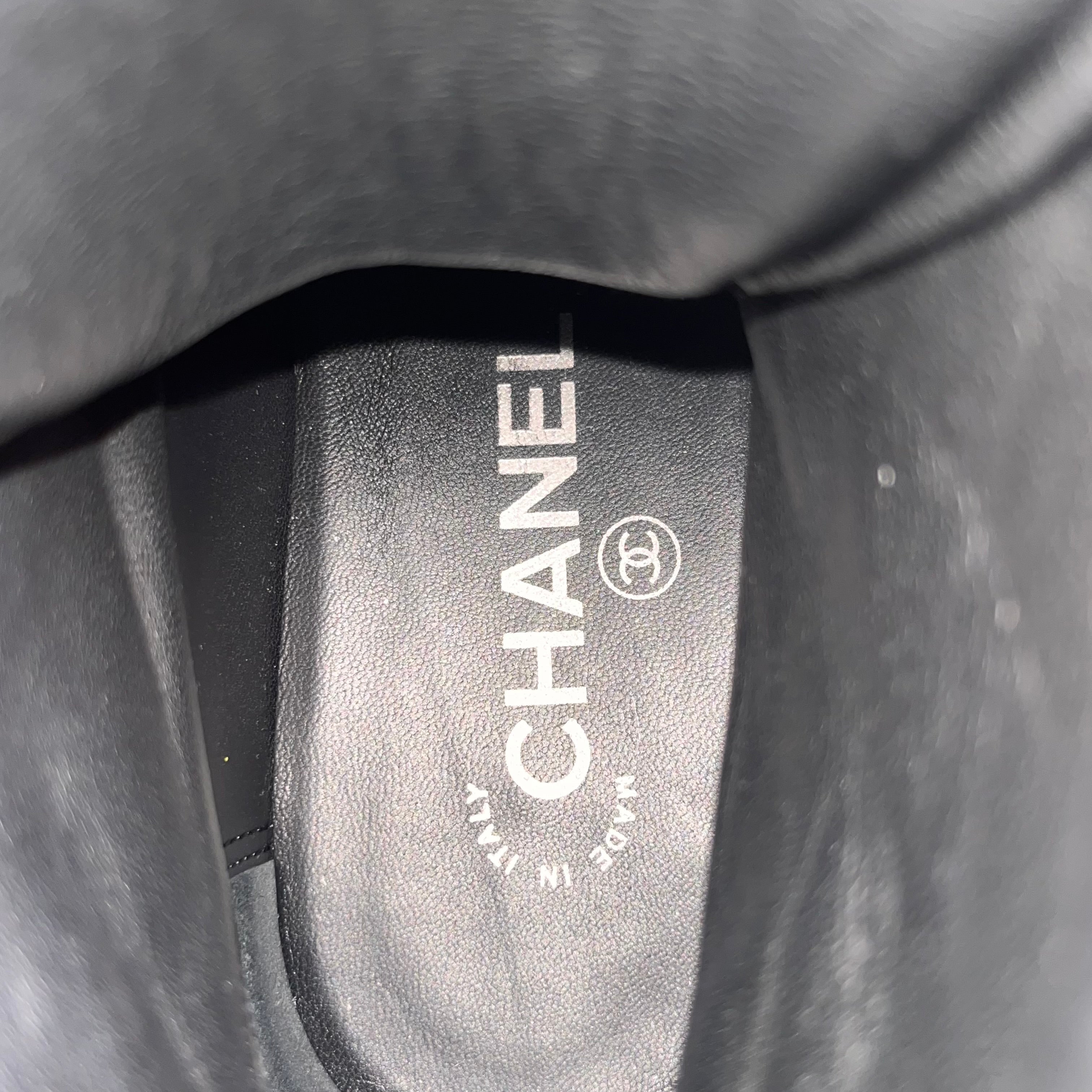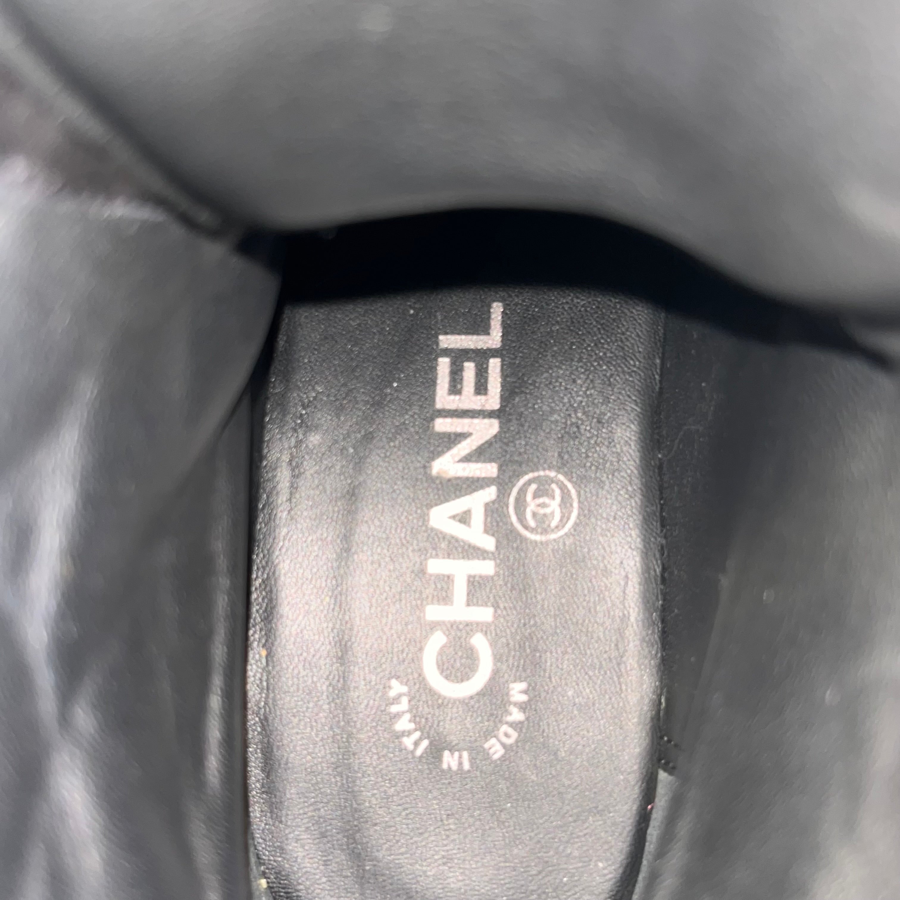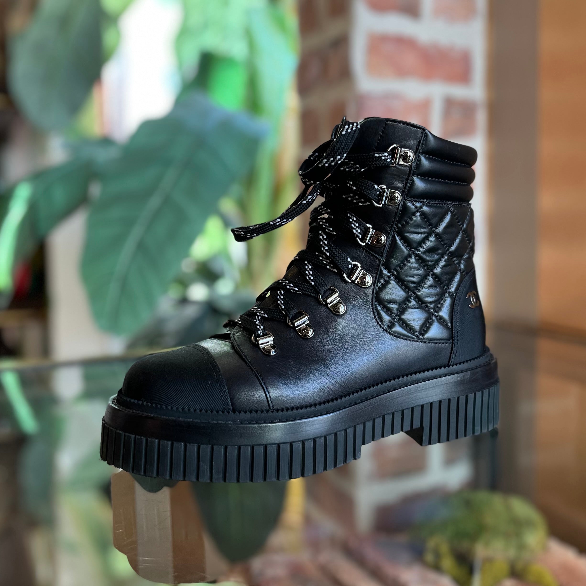 CHANEL Black Calfskin Grosgrain Quilted Lace Up Boots SZ36.5(6.5US)