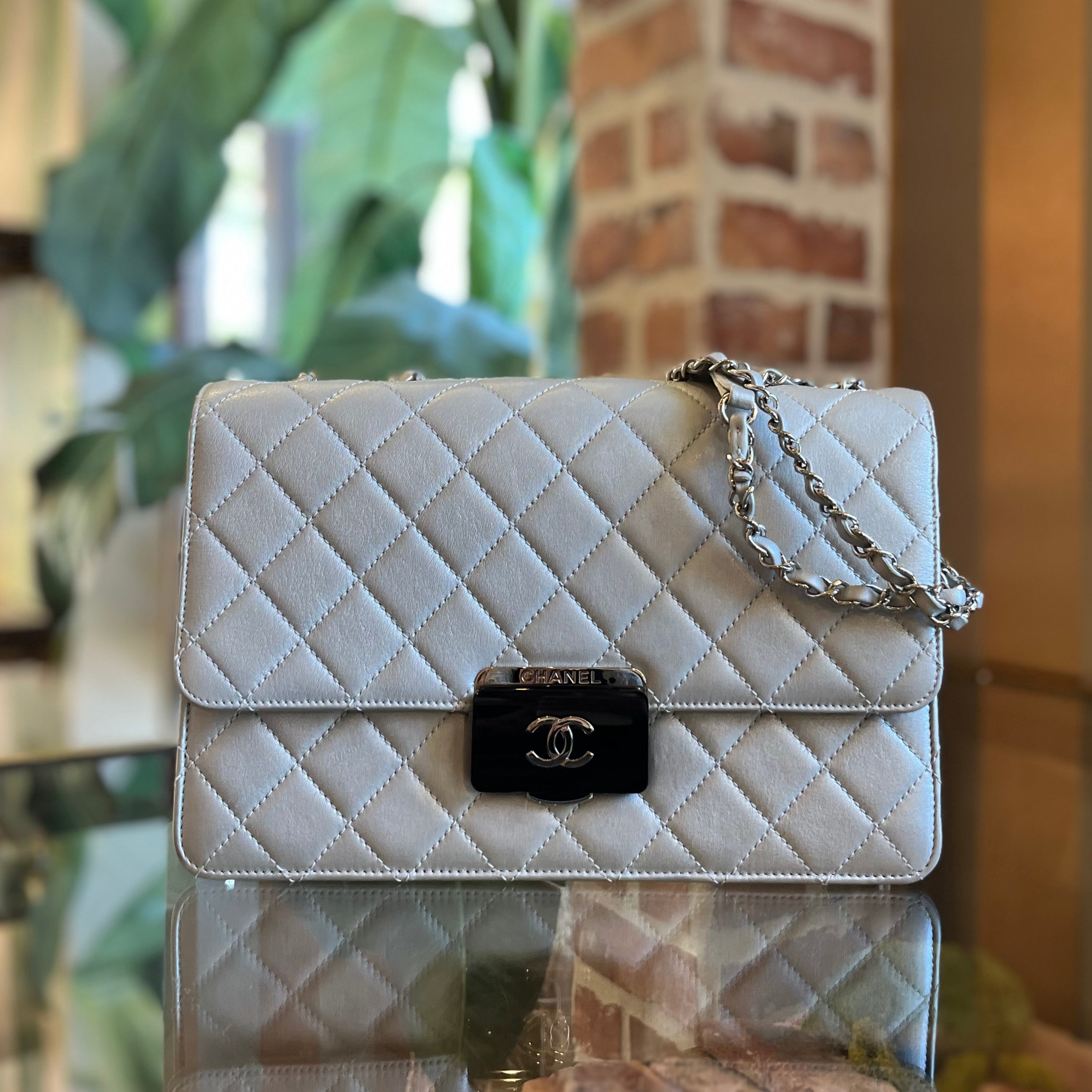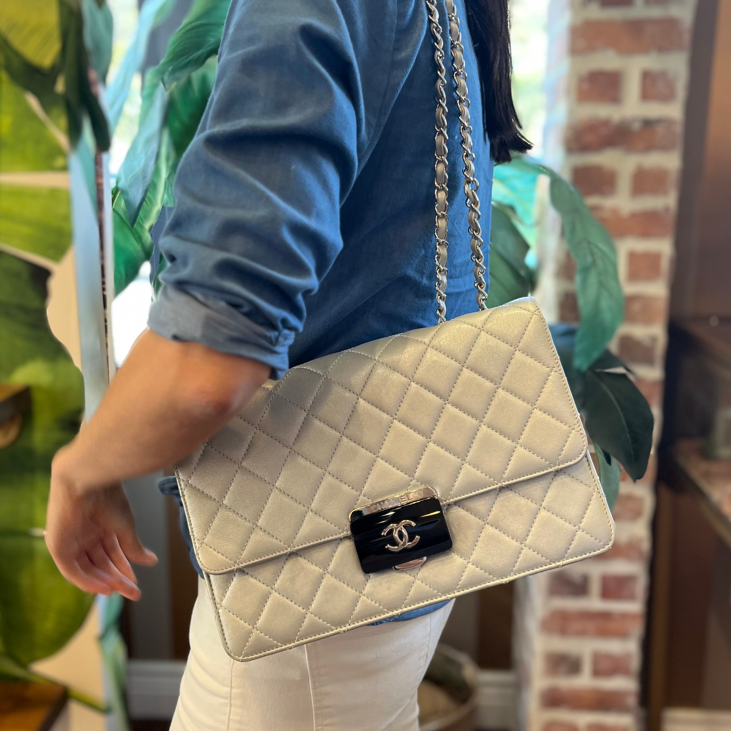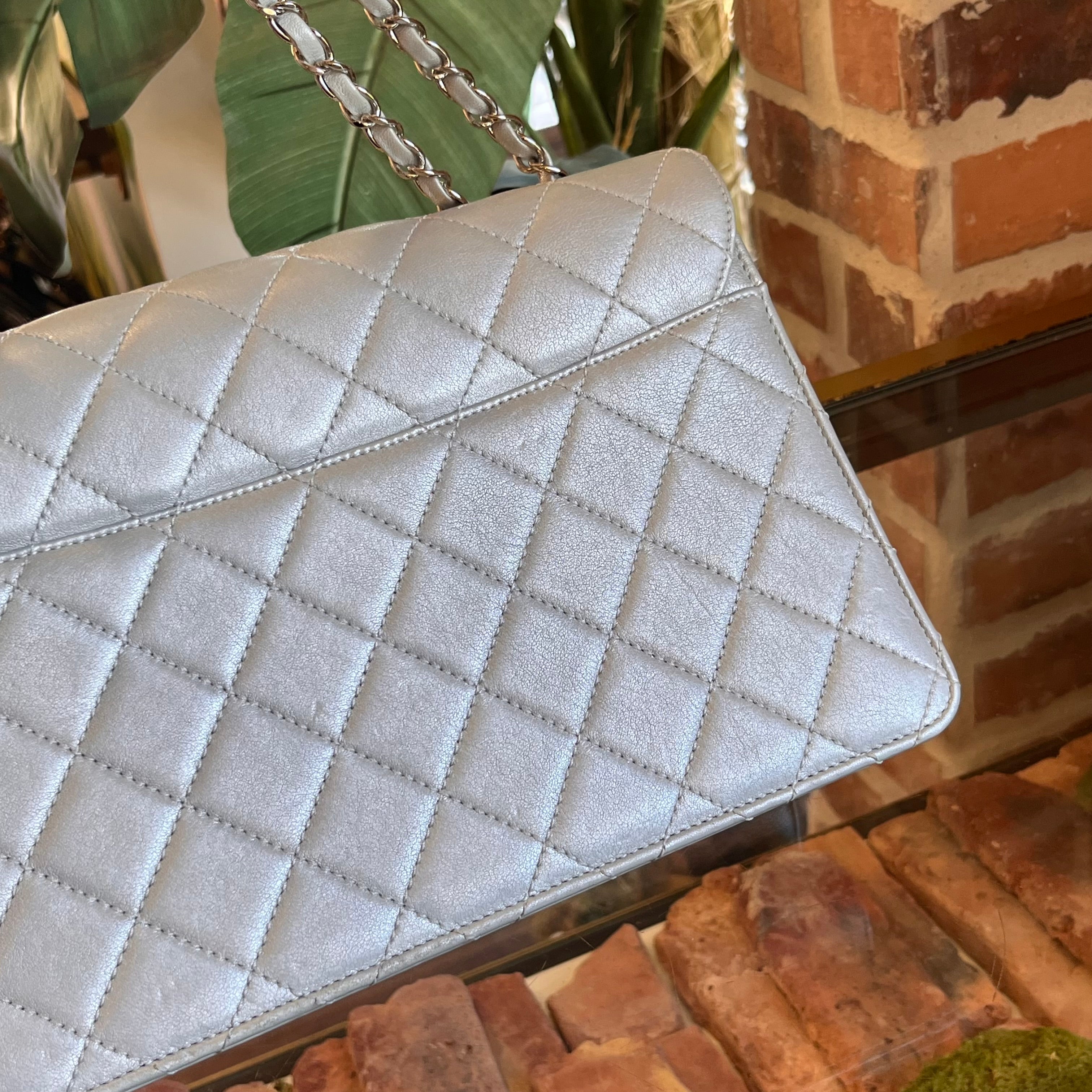 CHANEL Beauty Lock Flap Bag Silver Quilted Sheepskin Shoulder Bag