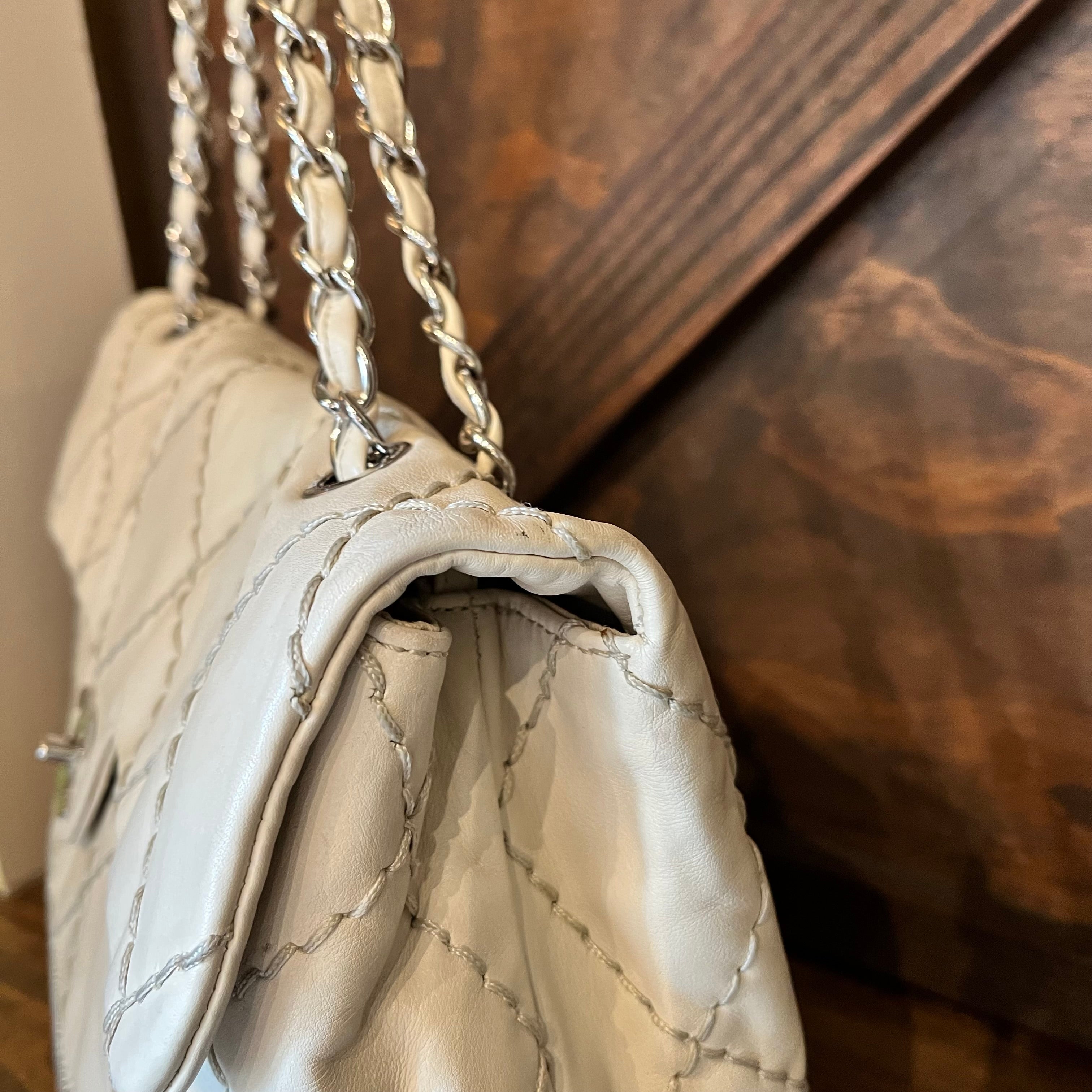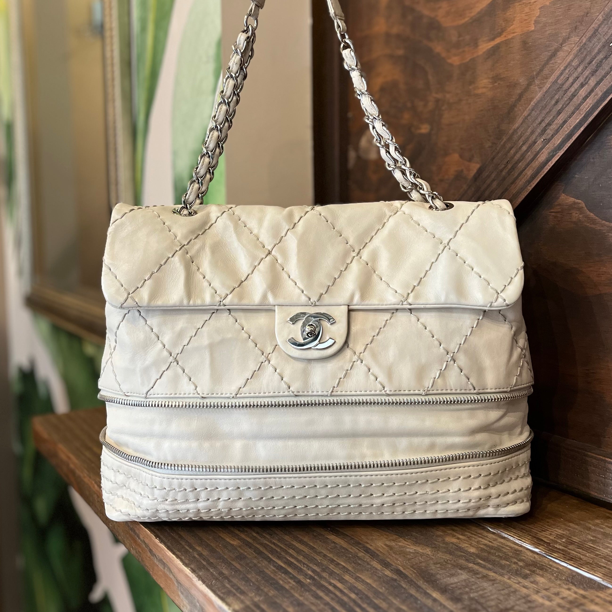 CHANEL Cream Expandable Calfskin Ligne Flap Shoulder Bag ADI11205