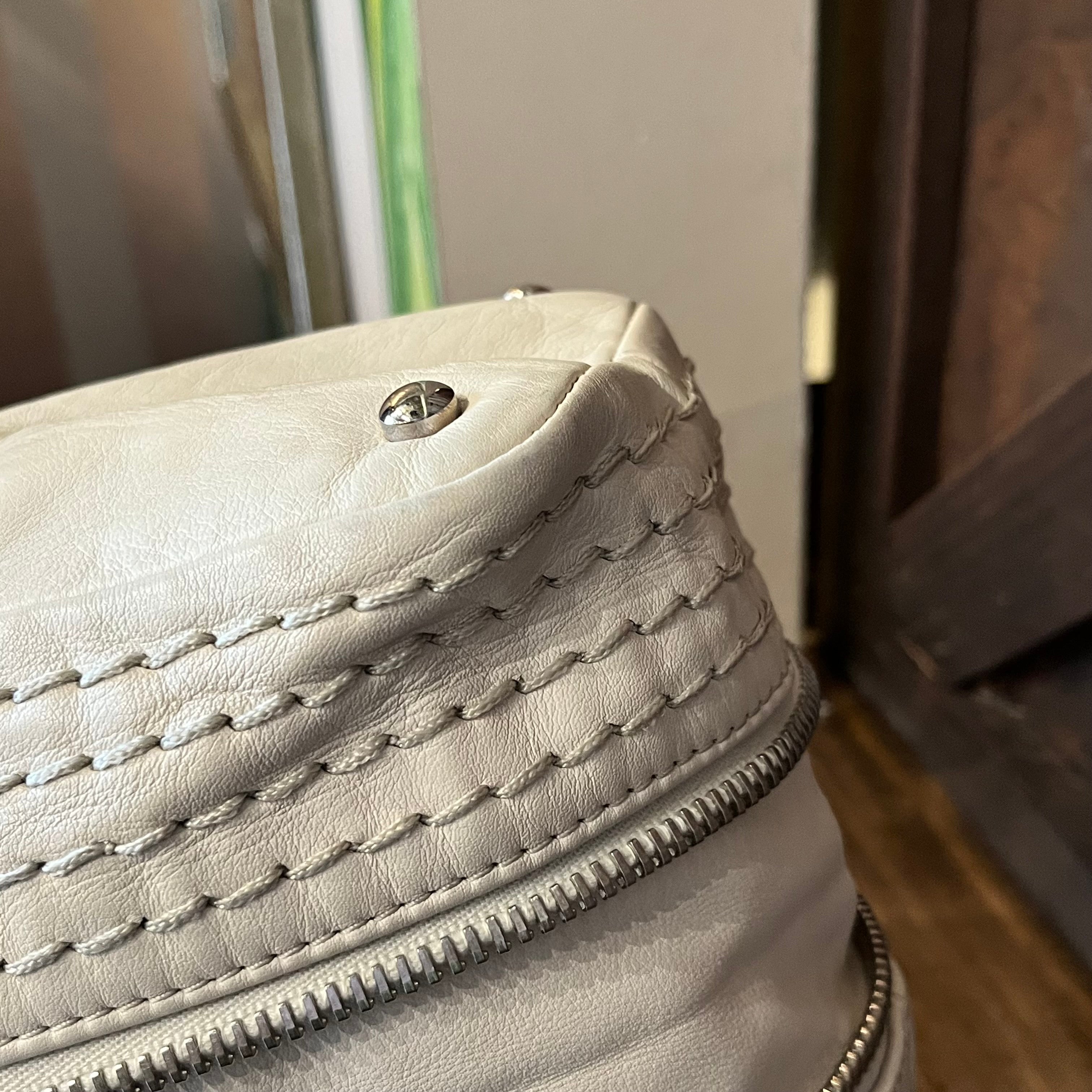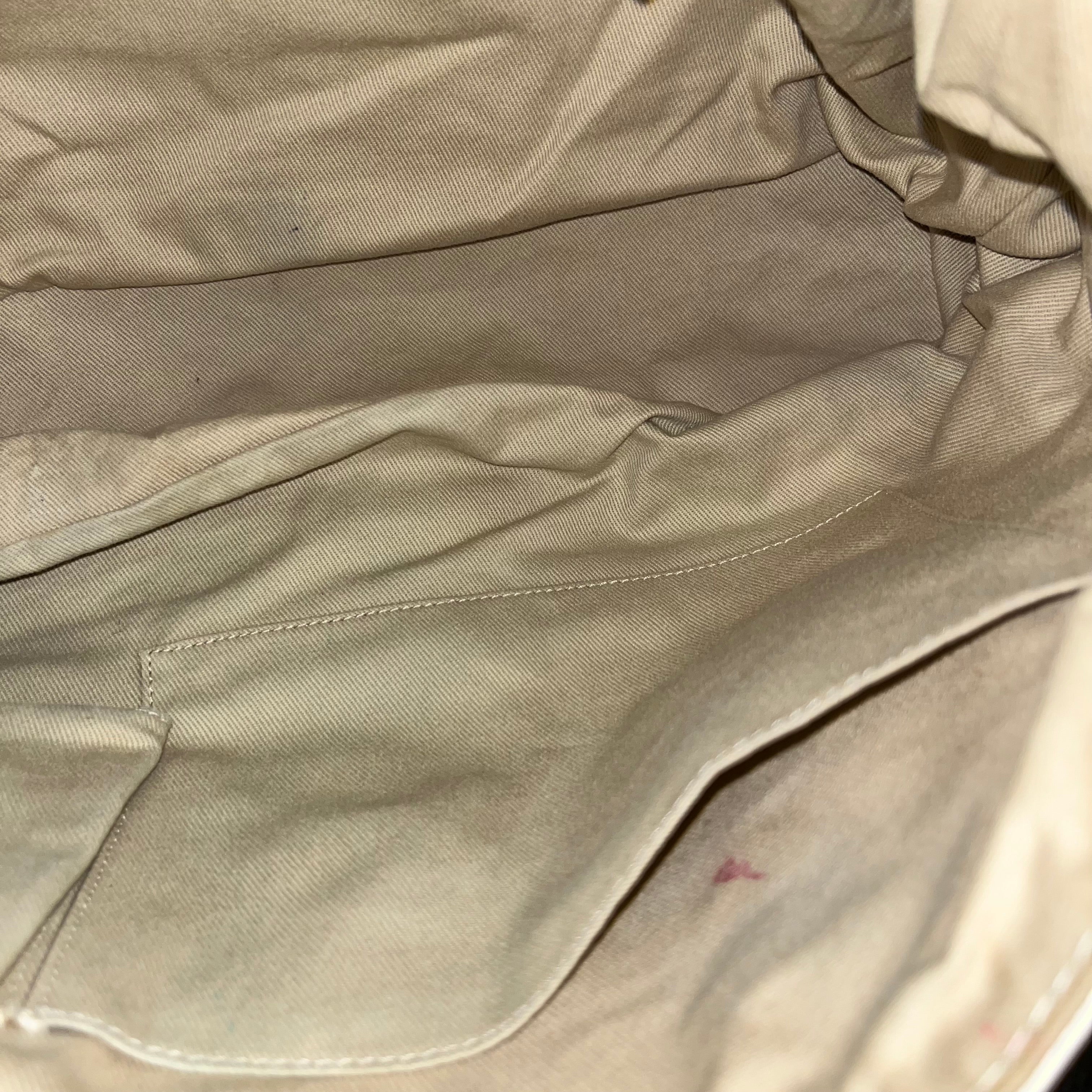 - Handle: The leather shoulder pad has developed a rich patina from use, adding character while remaining fully sturdy and structurally intact.