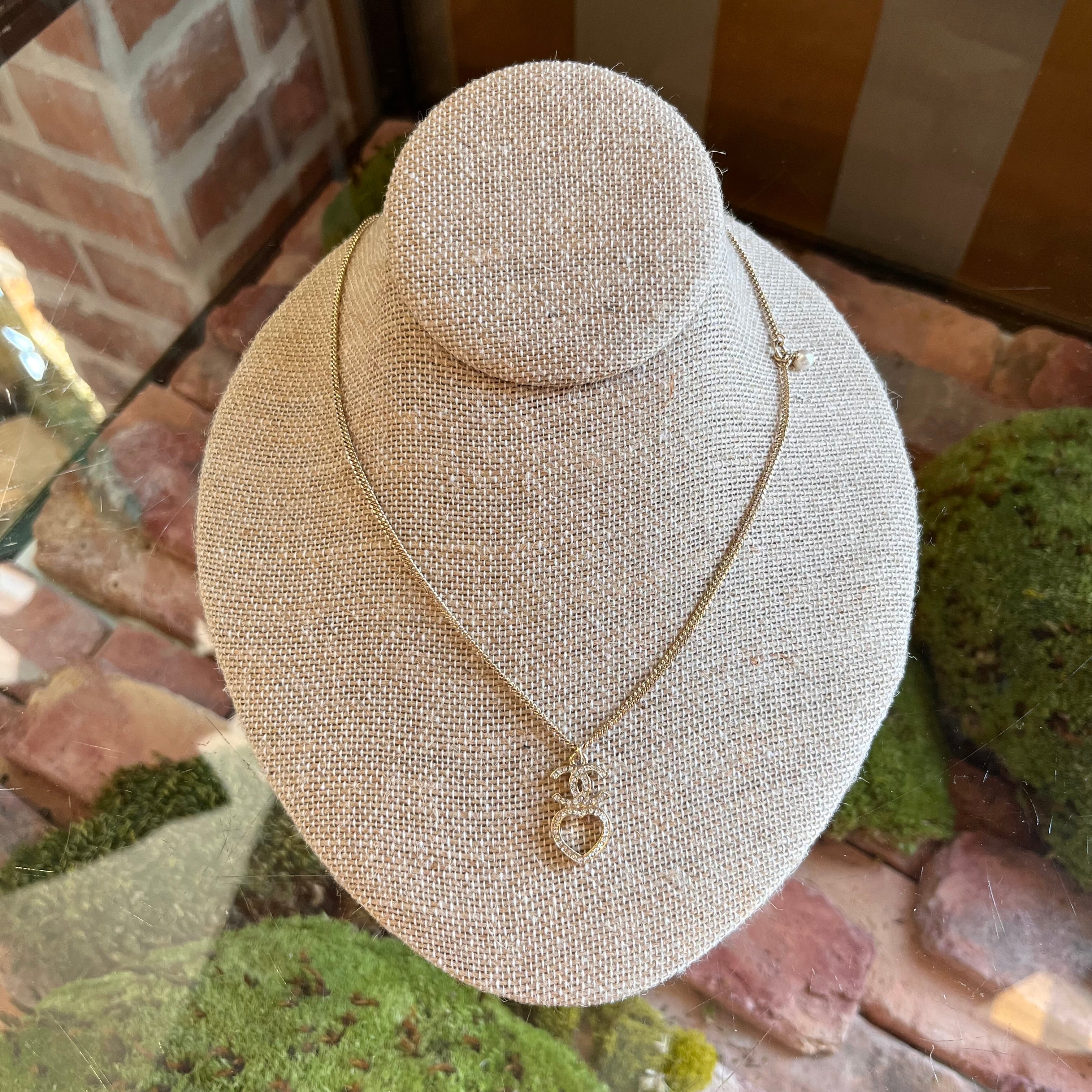 CHANEL Faux Pearl & Strass CC Heart Pendant