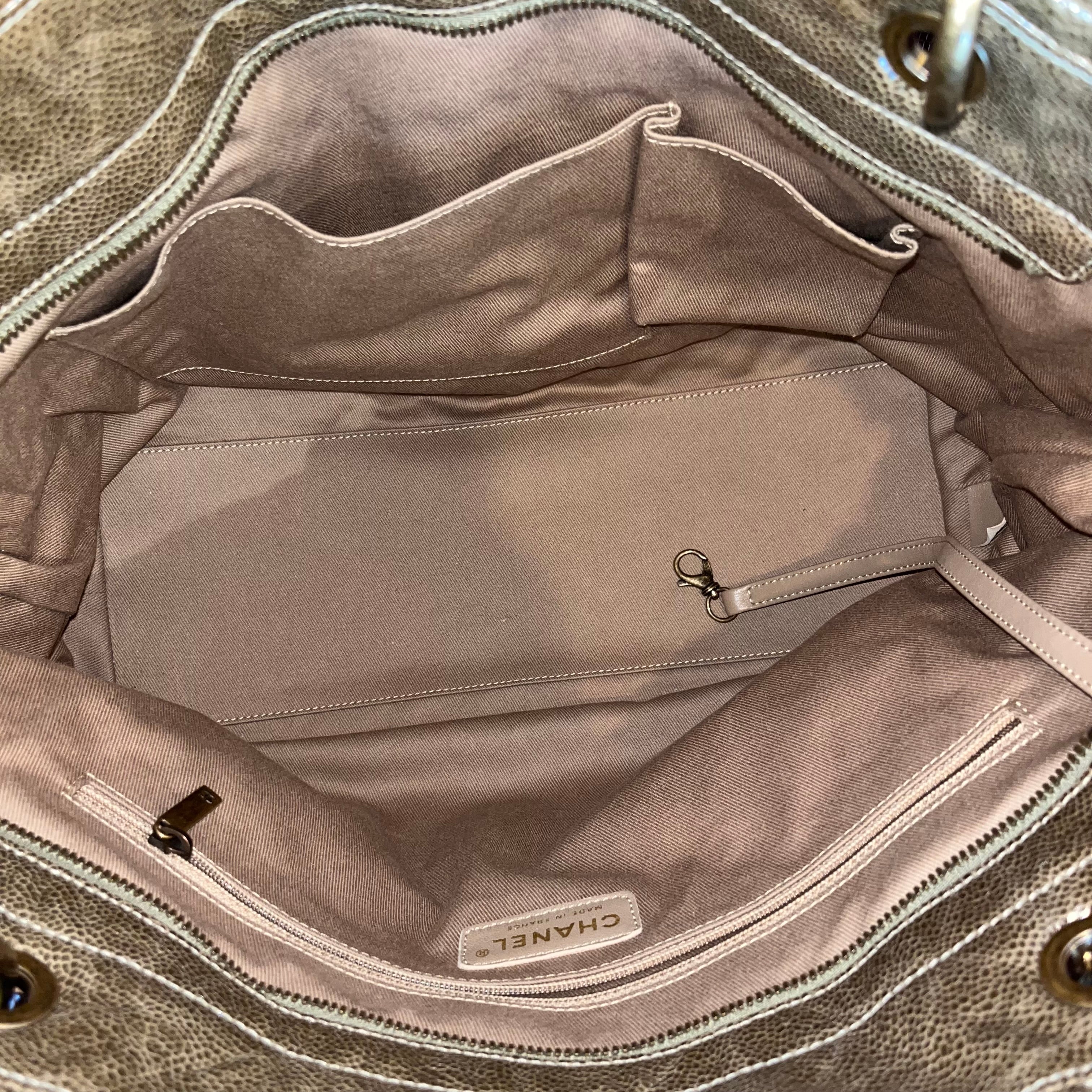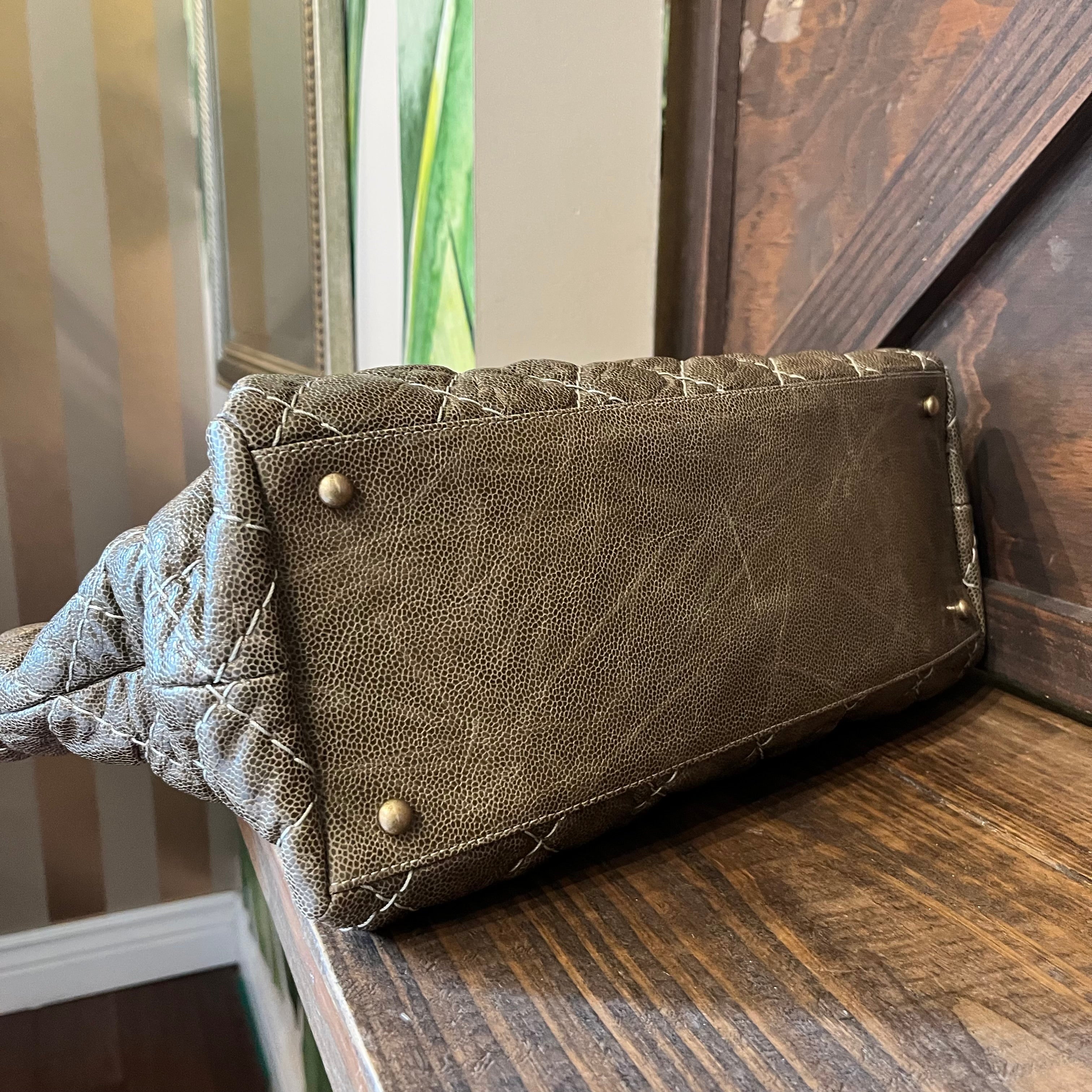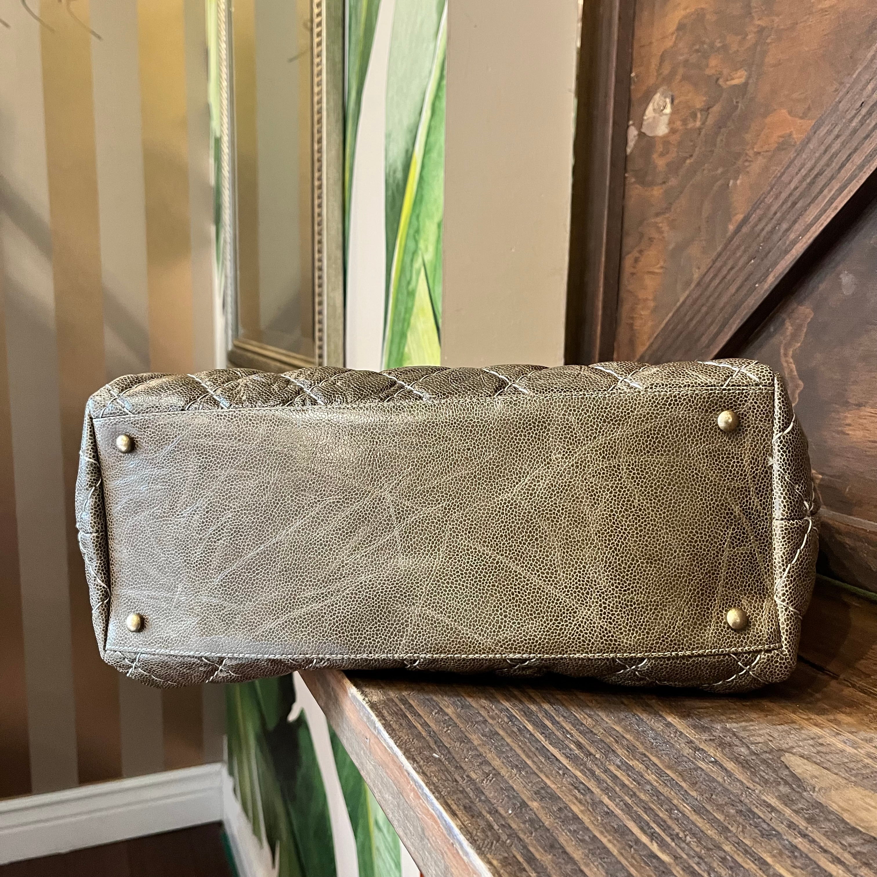 CHANEL Khaki Quilted Glazed Caviar Leather Coco Pleats Tote Bag ADI11206