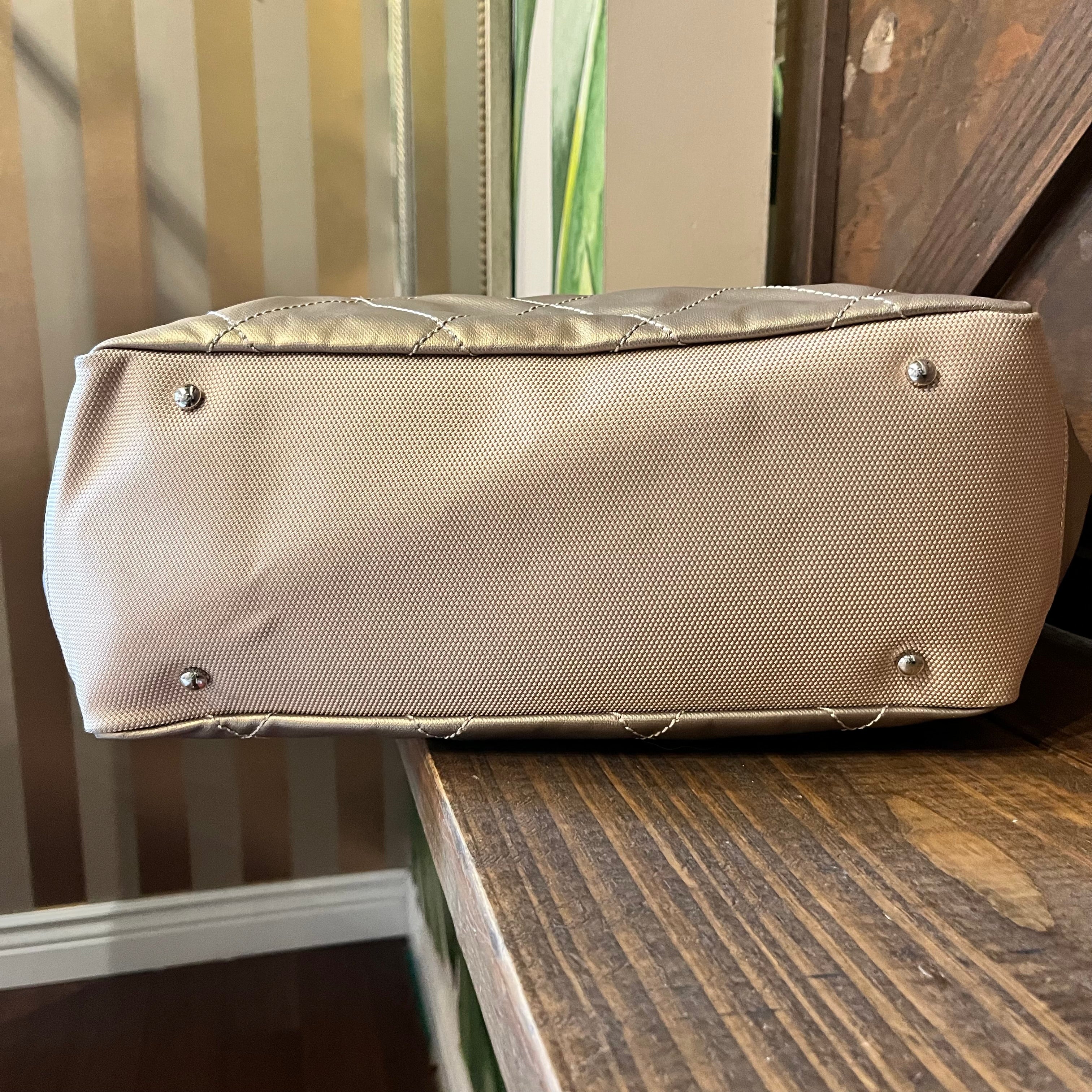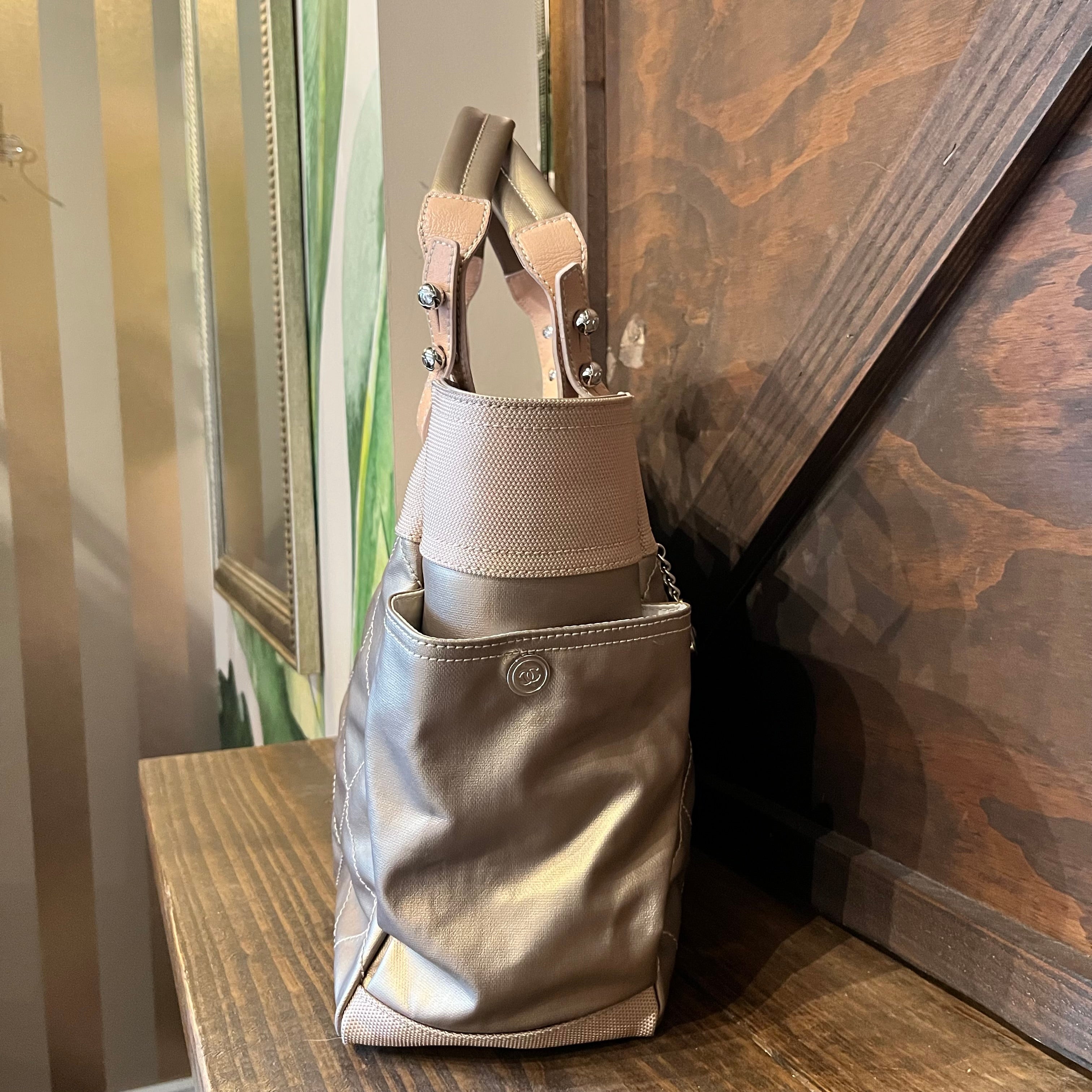 CHANEL Paris Biarritz Large Metallic Gold Coated Canvas Tote Bag ADI11203