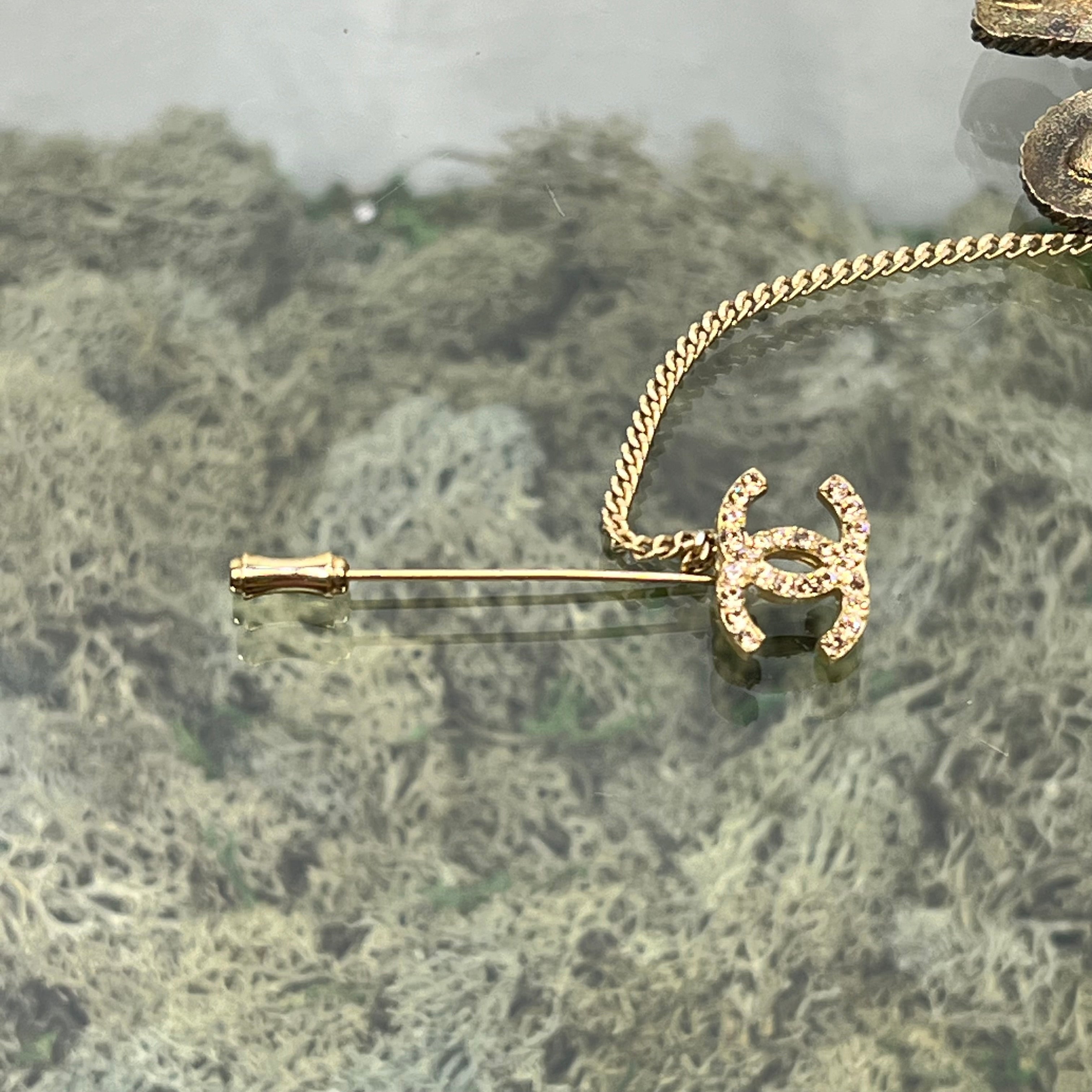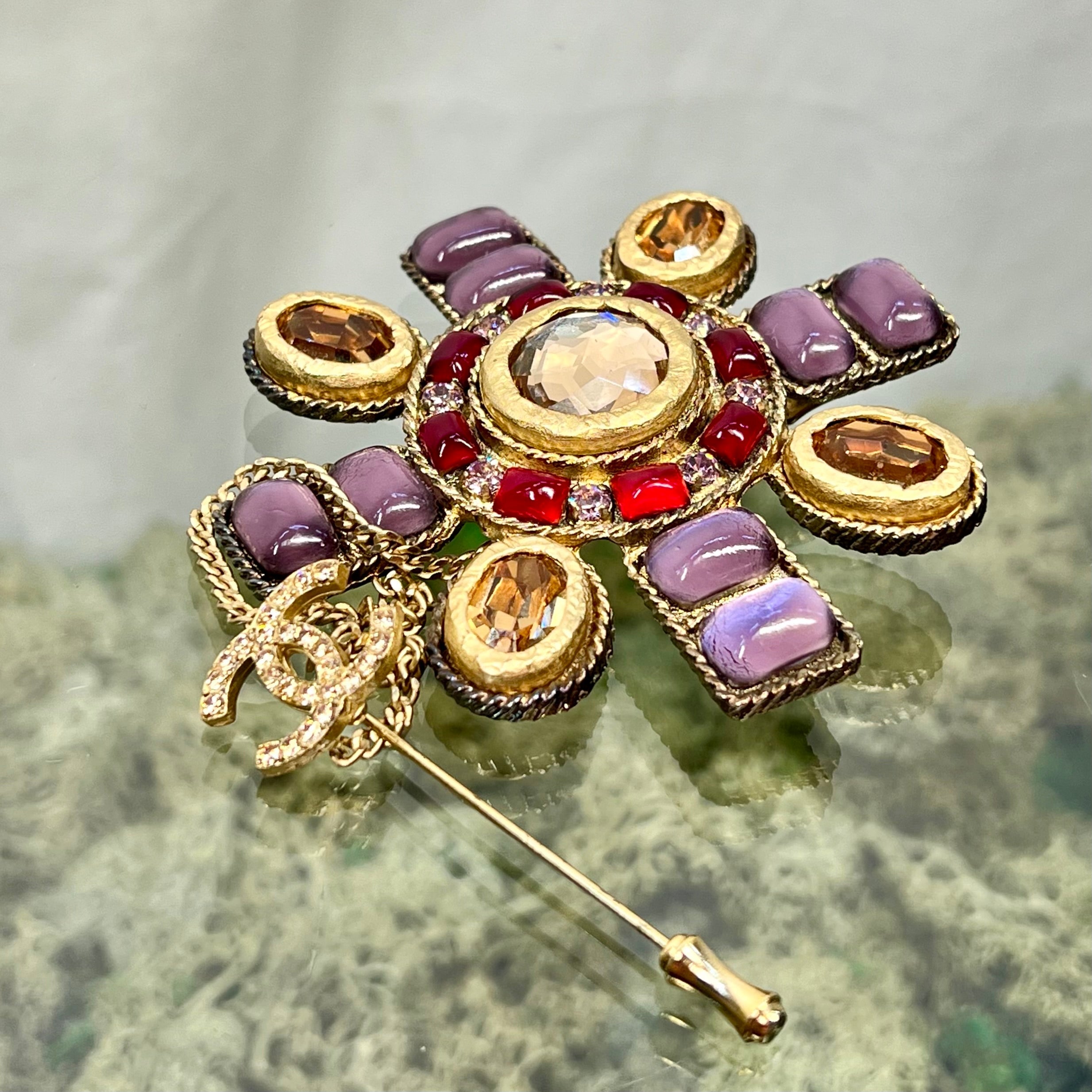 CHANEL Vintage Gripoix Brooch with CC Pin